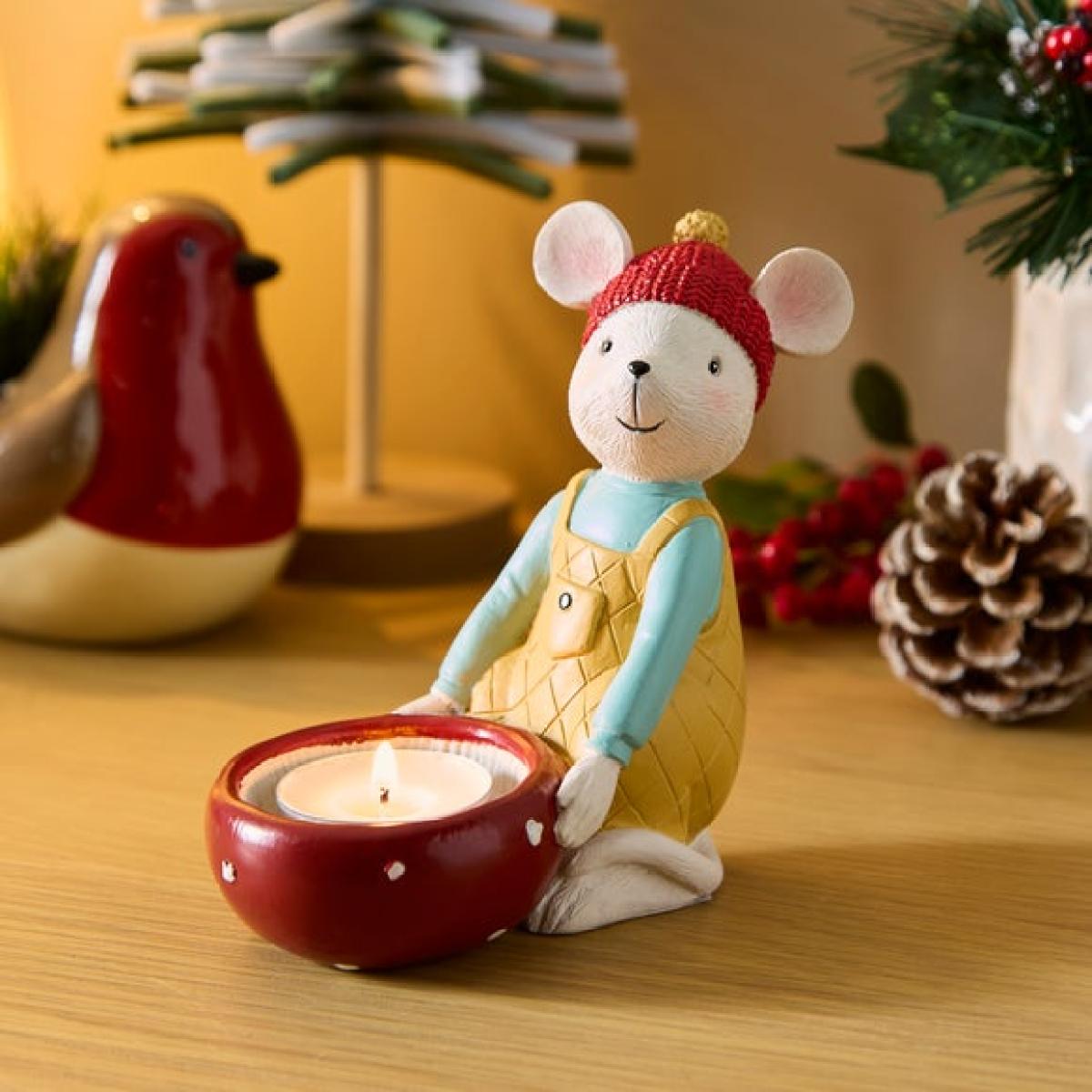* Adorable mouse character * Polyresin tealight holder * Perfect for a country Christmas * Tealight not included Bring cosy charm to your home with the Marlon the Mouse Tealight Holder. This adorable polyresin mouse adds a touch of country character to any Christmas setting. Designed to hold a single tealight (not included), it’s perfect for creating a warm, festive glow. A lovely addition to mantels, tables, or snug corners during the winter months.
