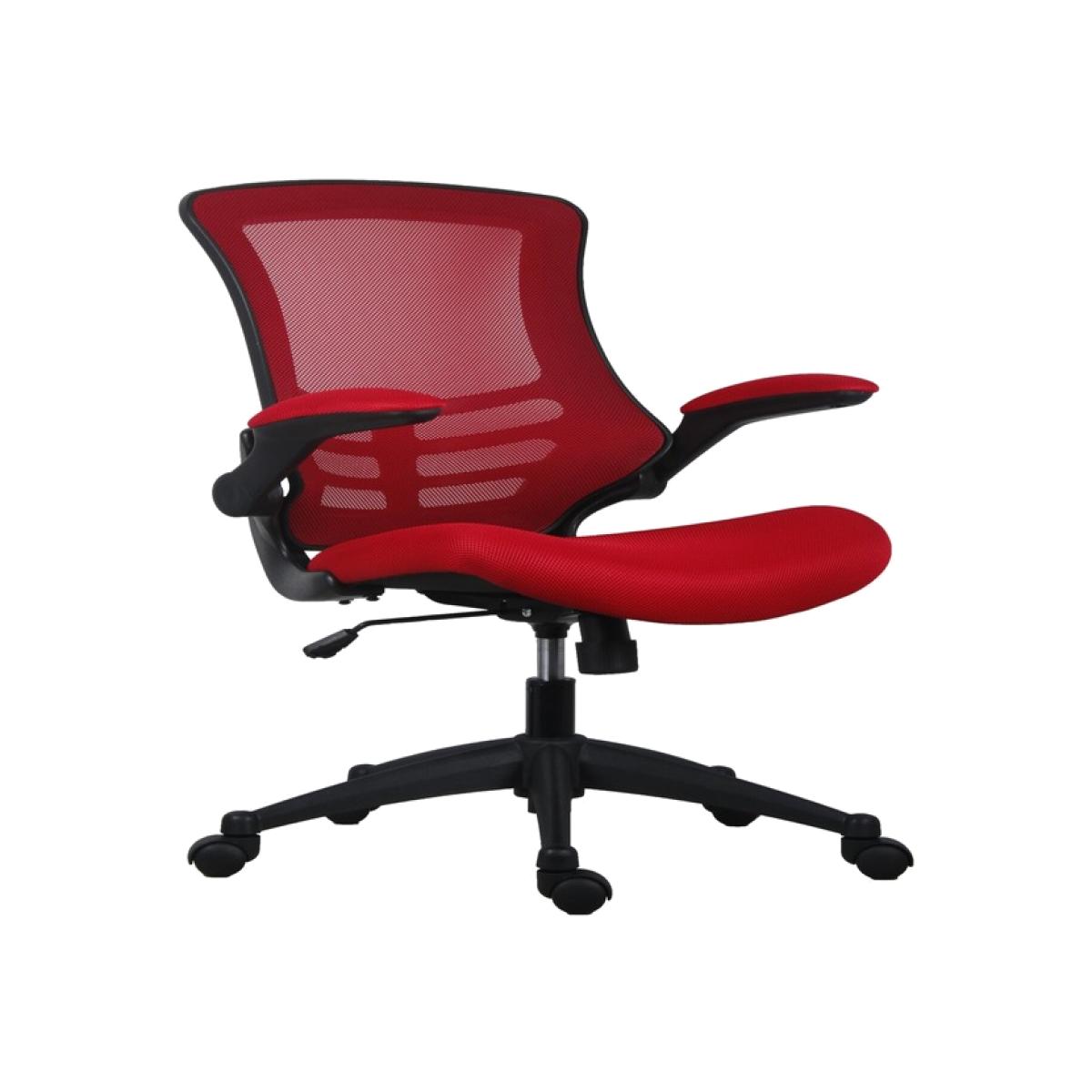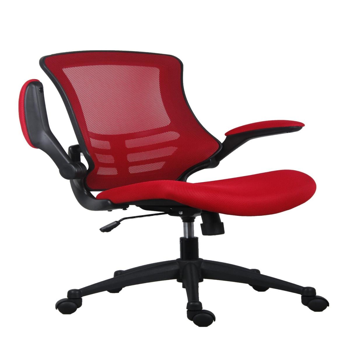 I love this red mesh chair for adding a pop of colour to a contemporary or even industrial-inspired office space. Its vibrant hue makes it a great statement piece without overwhelming the room. The mesh back offers breathability, ideal for long working sessions, and the adjustable height and swivel function provide practicality for everyday use. Stylistically, it pairs well with sleek desks and minimalist decor, but it can also inject personality into a more eclectic or casual home office. For styling tips, consider pairing it with neutral tones to let the chair stand out, or coordinate with other red accents for a cohesive look. It’s a versatile choice for creating a functional yet bold workspace.