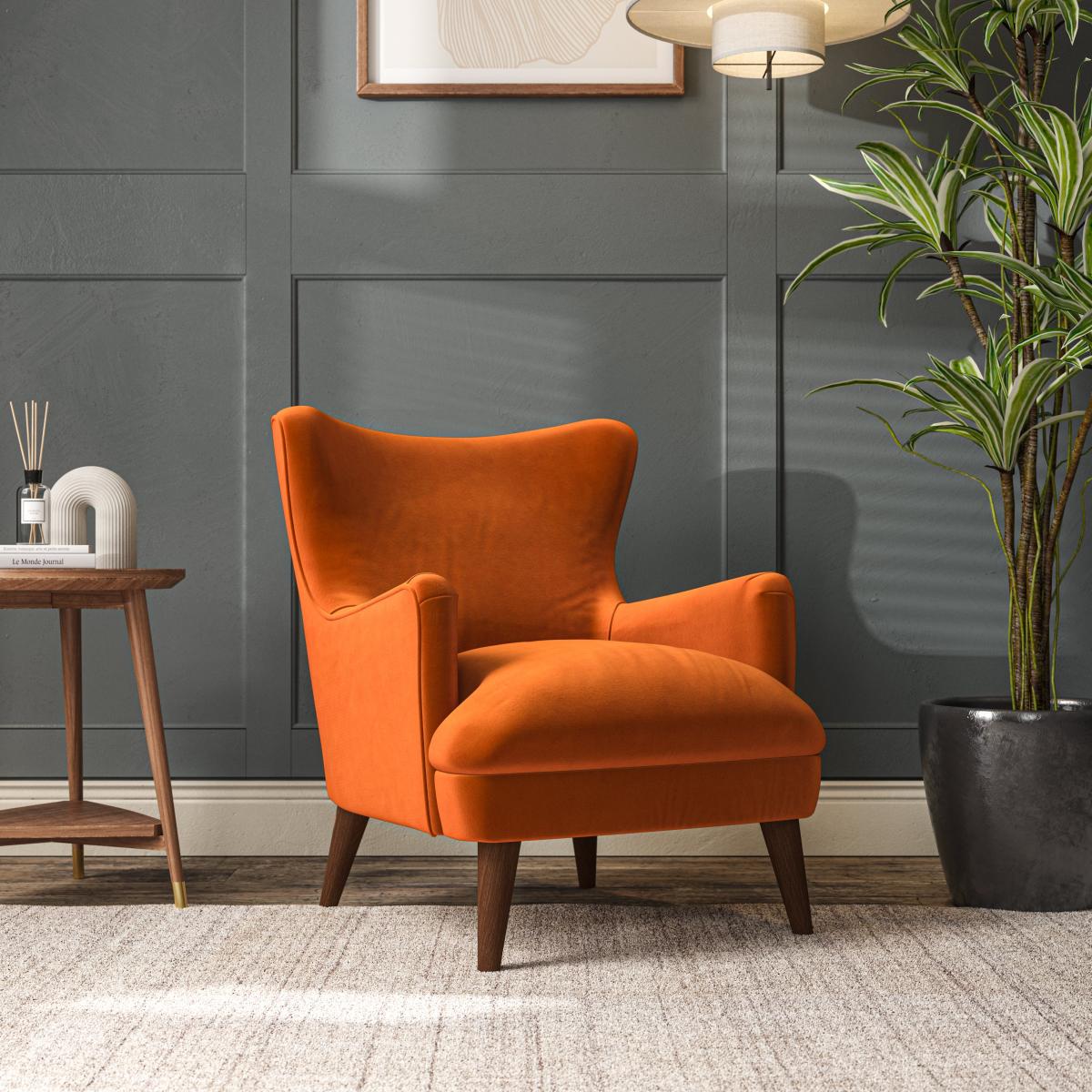 I’m a big fan of the Marlow chair thanks to its clean lines, softly rounded arms and warm, terracotta-style upholstery. It sits equally well in a pared-back Scandi scheme or a mid-century living room, where its low profile and turned wooden legs add a touch of period character without feeling over-fussy. To style it, anchor the chair with a neutral rug and a slim-lined side table, then introduce a contrasting cushion - perhaps in a cool dove-grey or muted teal - to break up the colour block. A simple woven throw over one arm will keep the look relaxed and give you a cosy spot for reading.
