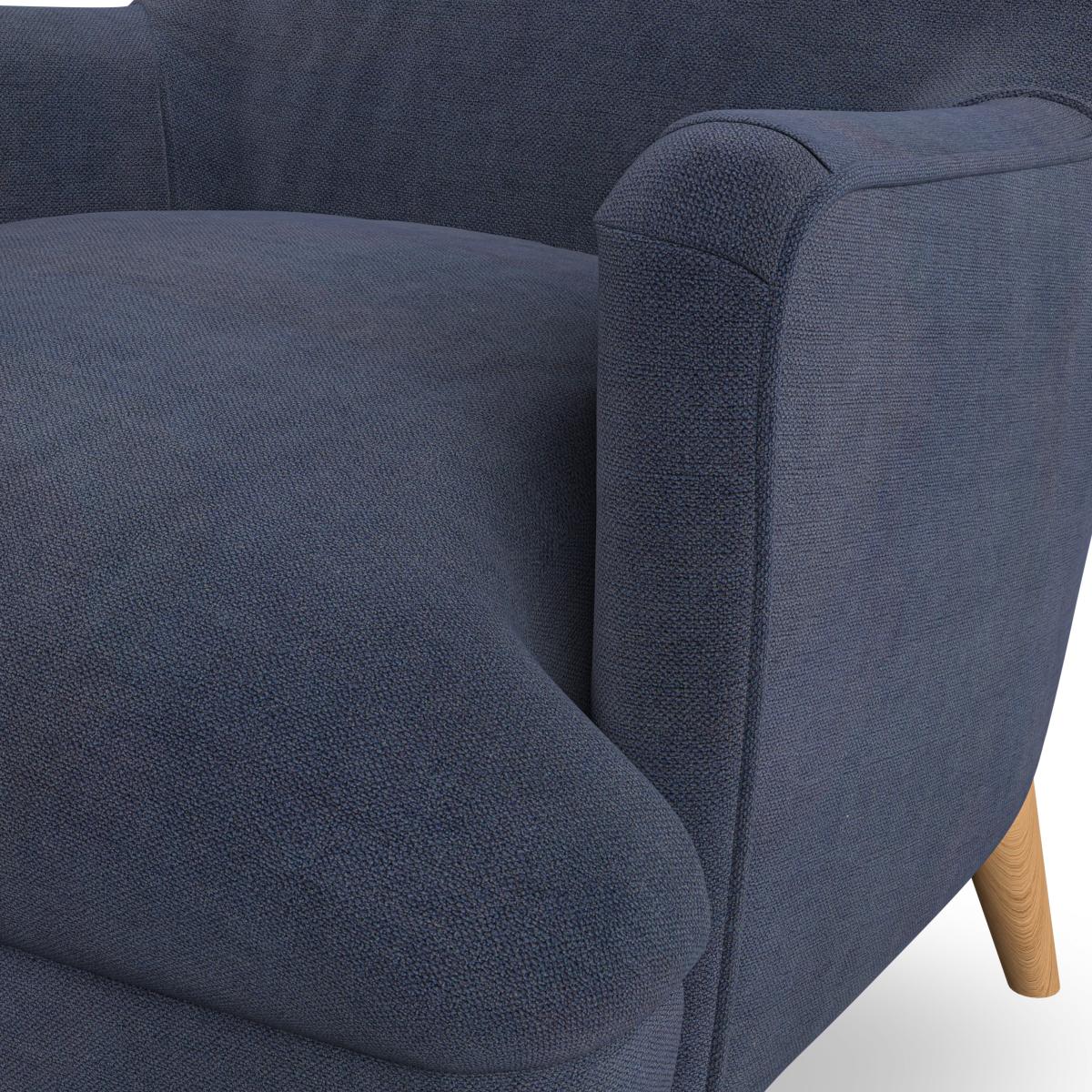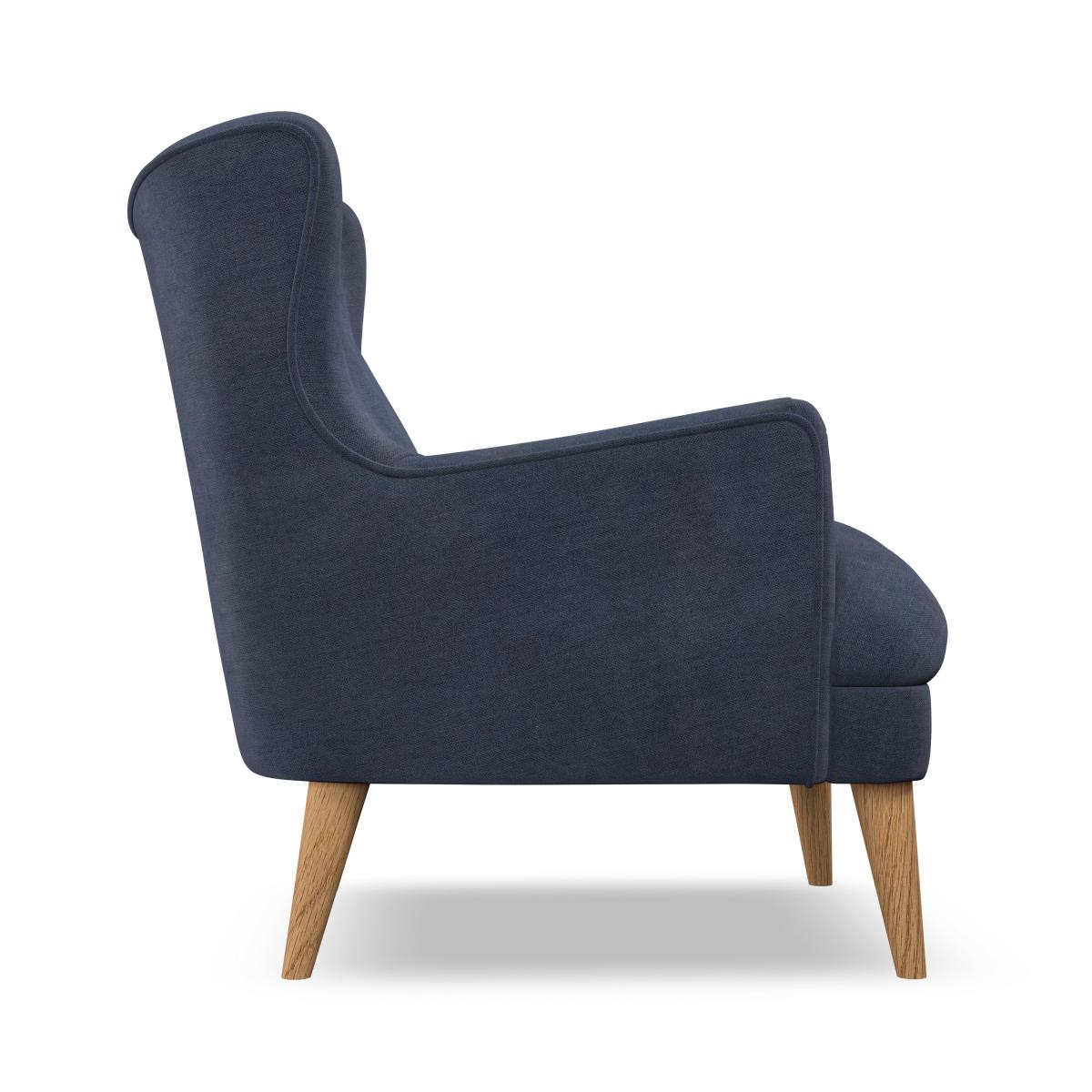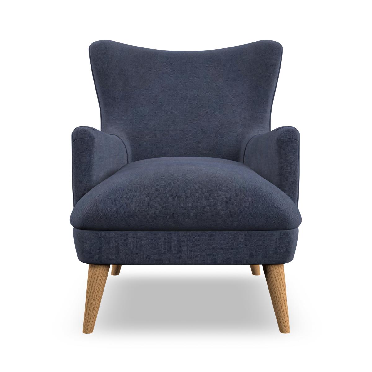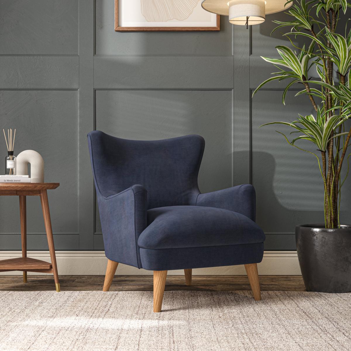 I’m drawn to the Marlow chair’s relaxed lines and tapered oak legs - it adds comfort without bulk. Its deep navy fabric works beautifully in Scandi, mid-century or contemporary schemes, pairing equally well with crisp whites or warmer accents. For styling, add a textured cushion in a contrasting colour and casually drape a light throw over one arm; finish with a slim-legged side table and floor lamp to create a cosy, well-considered reading corner.