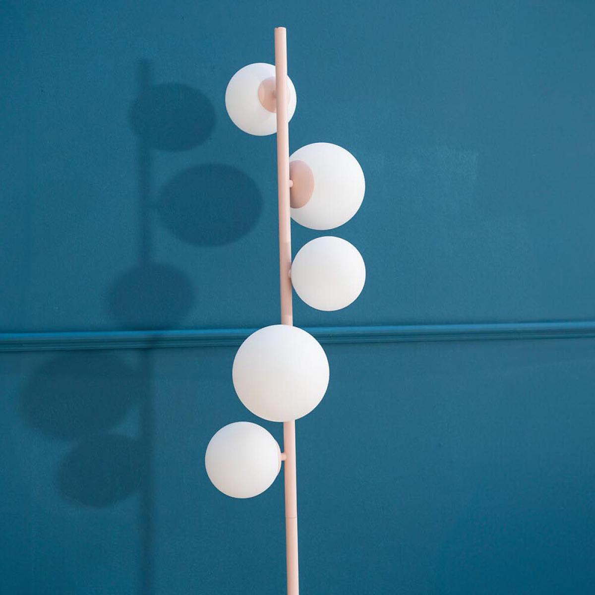 This floor lamp is designed to help brighten your space whilst creating a chic and cozy atmosphere in your home. Featuring a metal stem in a blush finish with five glass globe lampshades. The opal glass shades offer a warm glow of light, the perfect complement to the metal base. This light is sure to be a showstopper that’ll brighten up your home. Product Dimensions: 32cm x 32cm x 165cmWeight. This product will be dispatched by one of our trusted suppliers. You’ll be contacted by their selected courier about your delivery.