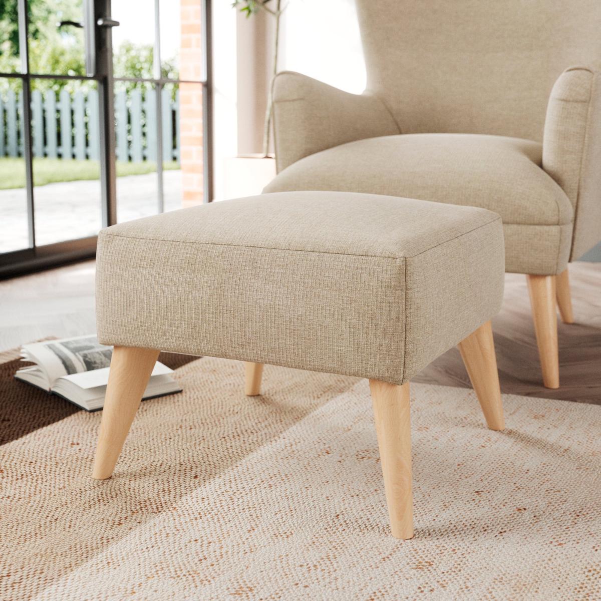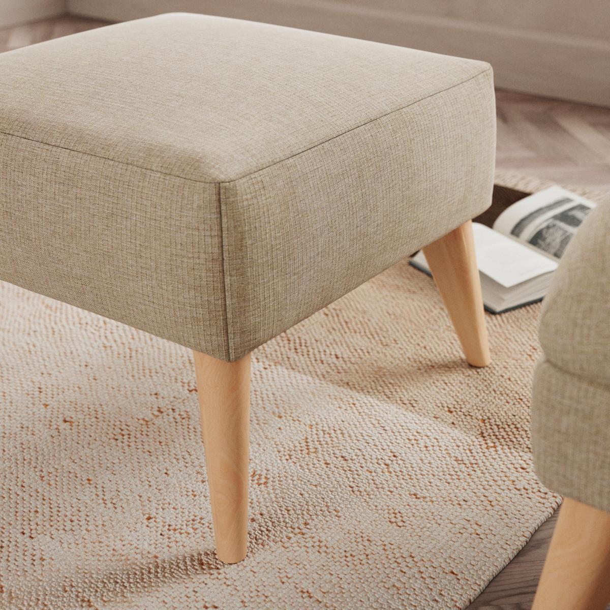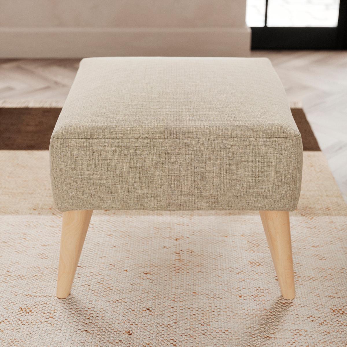 I love this footstool for its relaxed, versatile look. The tonal weave in natural tones gives it a subtle texture that complements both modern and Scandinavian-inspired interiors, but it can also work well in more eclectic spaces. It’s a practical piece for adding additional seating or a comfortable spot to rest your feet without overpowering a room. Style it with other neutral or earthy accessories to keep the aesthetic cohesive, or add a pop of colour through cushions or throws on nearby furniture. Its simple silhouette and light wood legs make it adaptable, so it can sit comfortably in living rooms, bedrooms, or even transitional schemes. Plus, its durable fabric means it’s well suited for everyday use in a family home.