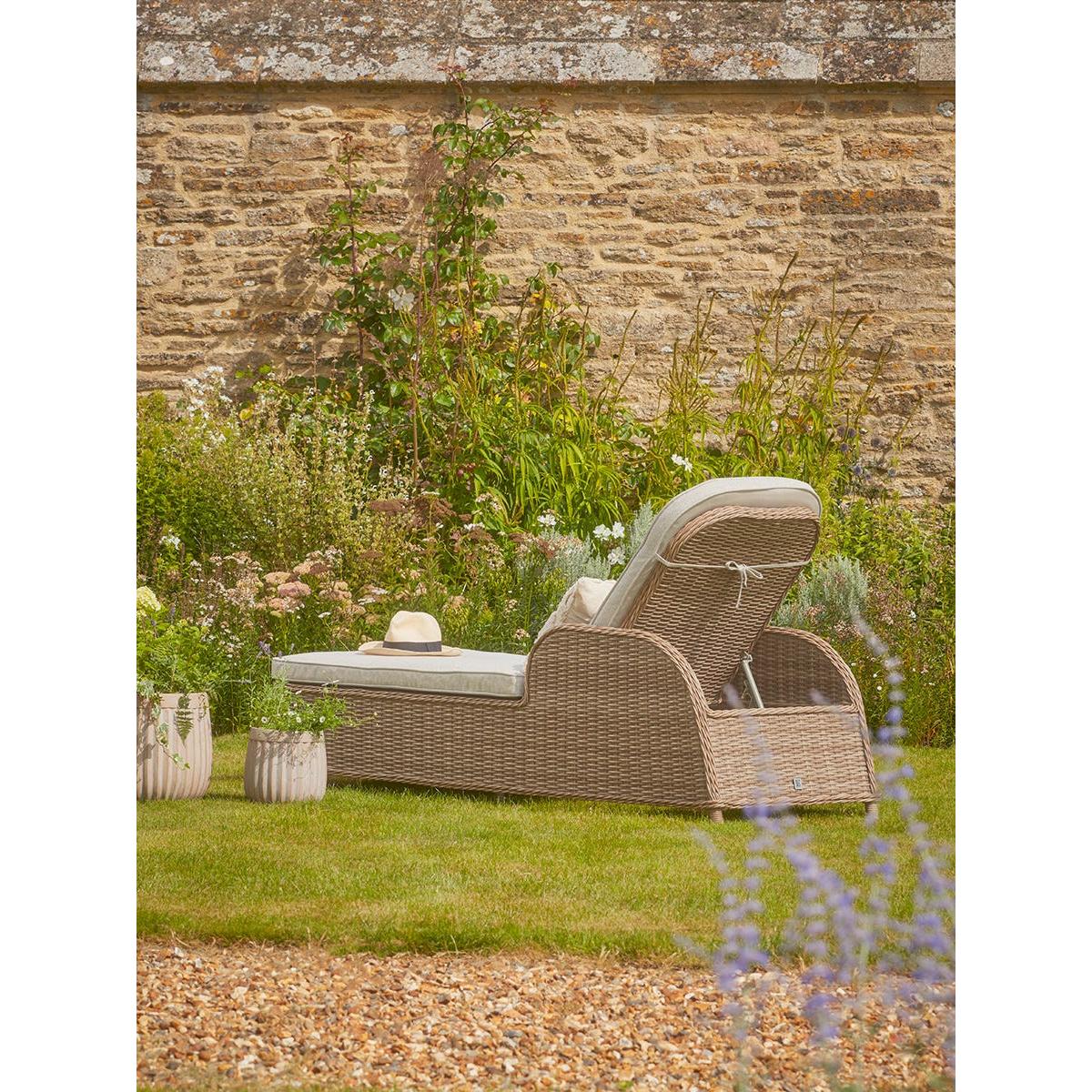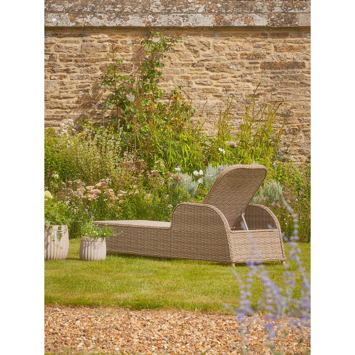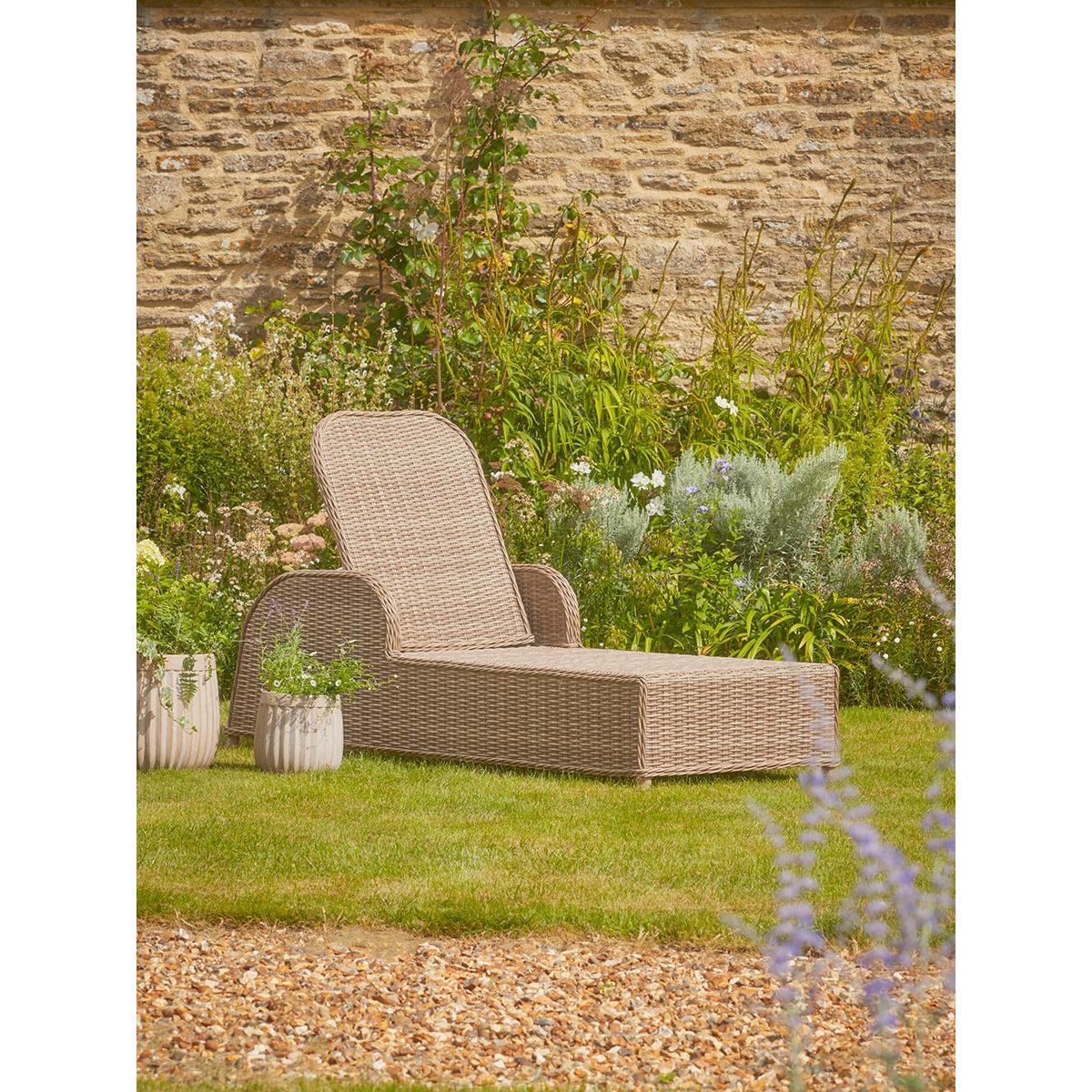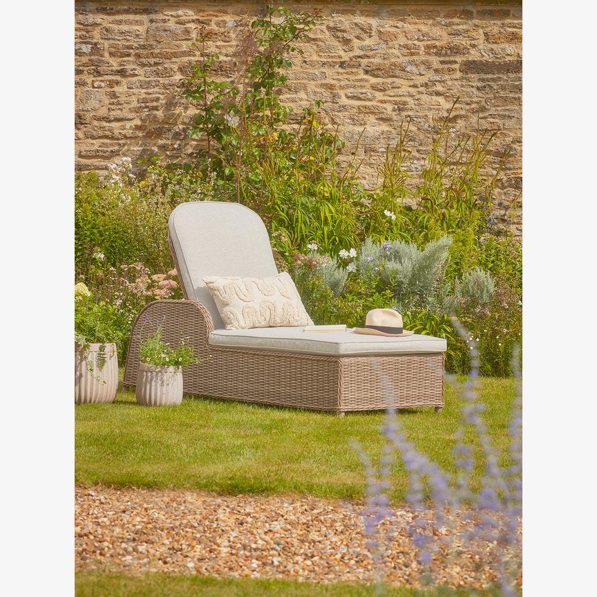 Transform your garden into a relaxing haven and enjoy the best of the weather with our stylish Marlow Lounger. Full of charm, the lounger is crafted from a multi-toned authentic looking faux rattan which creates the look of traditional basketweave garden furniture. Ideal for sunbathing, the bed has a deep cushion made from weatherproof and UV resistant fabric which will dry quickly after showers and retain its colour for years to come. The back can be fully adjusted from upright to flat to ensure you enjoy optimum comfort. Browse our useful Outdoor Furniture Buying Guide.