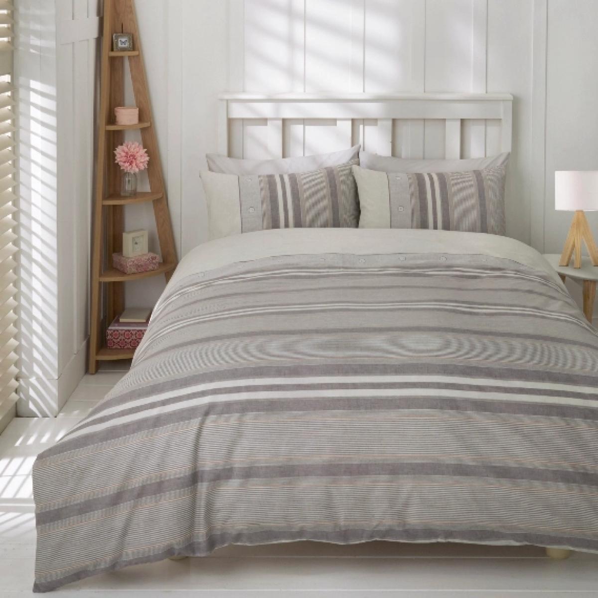 I love the Marlow stripe in this set for its versatile, muted silver tone, which lends itself well to both contemporary and traditional interiors. It's perfect for creating a calm, understated bedding look that can be easily layered with textured throws or coloured cushions for added interest. This duvet cover works particularly well in minimalist or Scandi-inspired bedrooms due to its neutral palette and simple stripe pattern. Practical styling tips include pairing it with crisp white sheets or adding darker accents like charcoal or navy for contrast. Its understated elegance makes it a reliable choice for creating a timeless and restful bedroom environment.