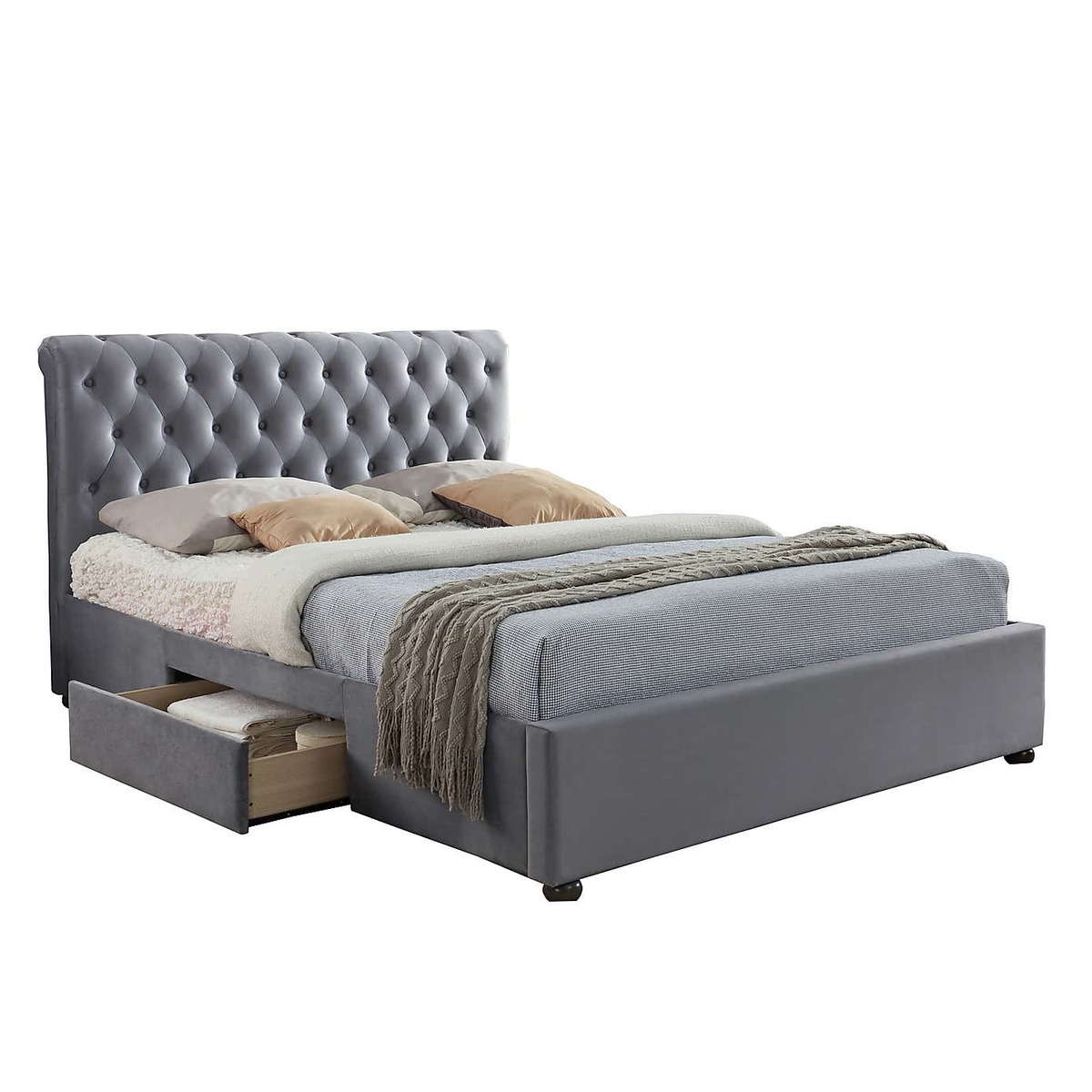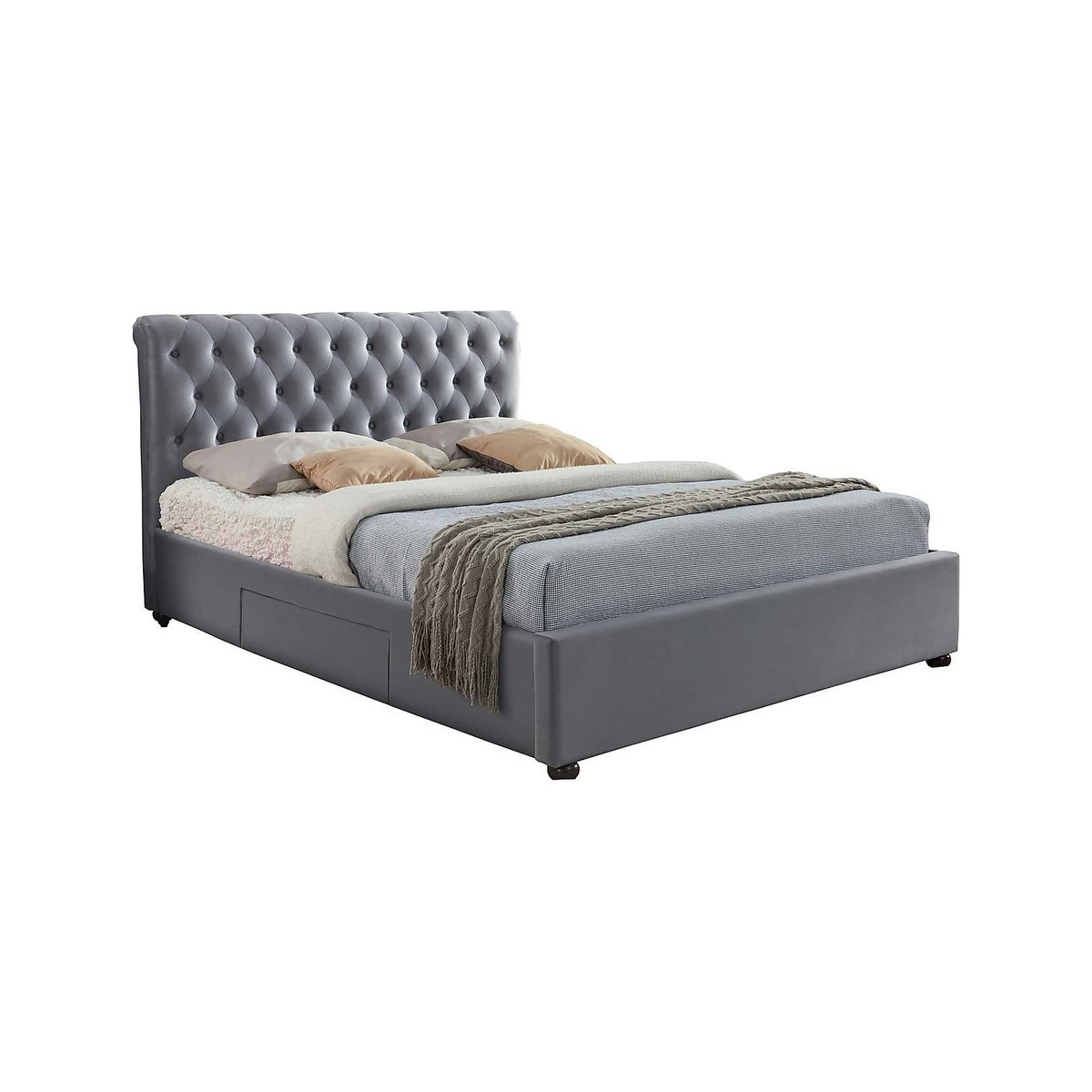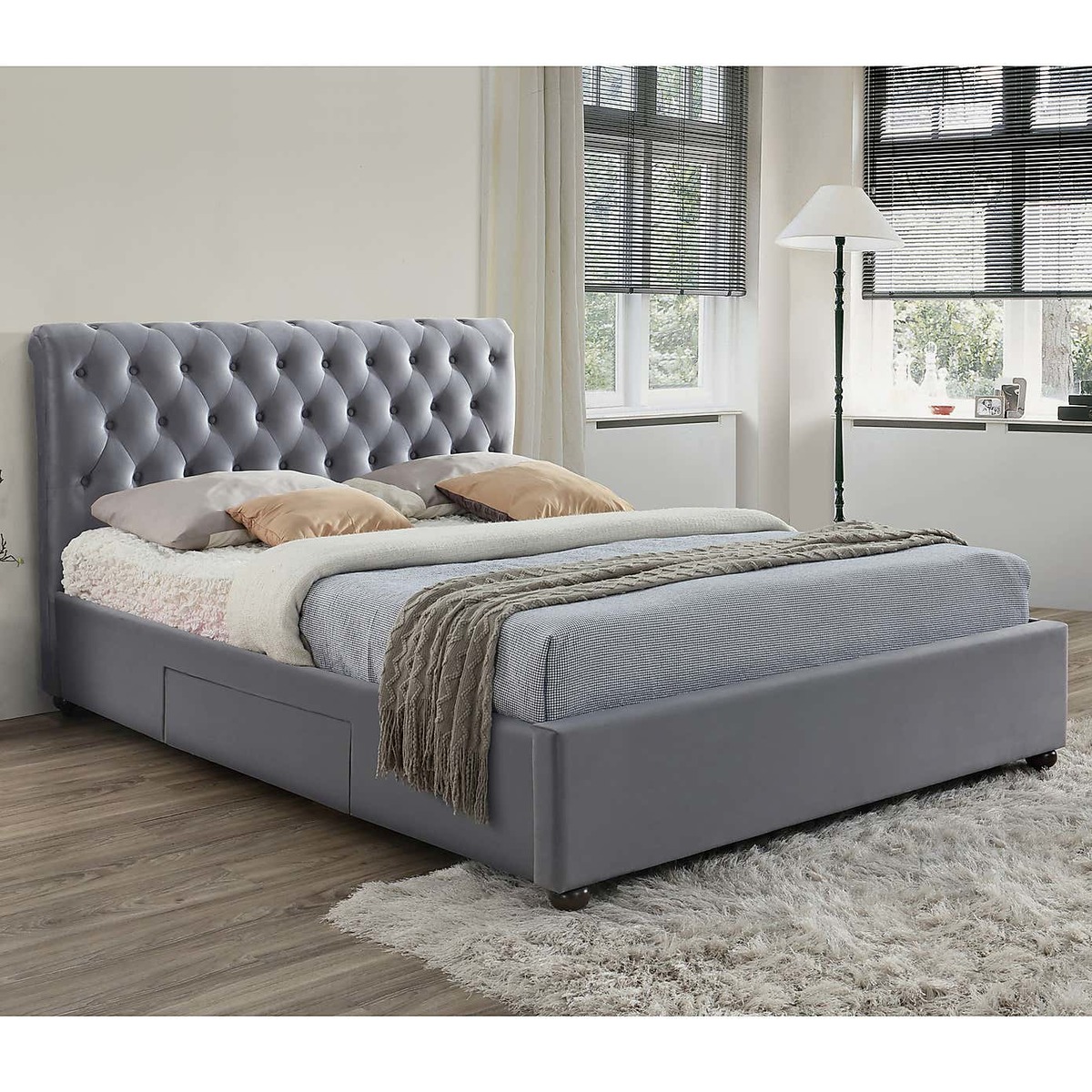 The elegant Marlow Storage Velvet Bed Frame is upholstered in luxurious grey velvet and features a stylish deep tufted headboard. It offers two spacious drawers built into the base, making it as versatile as it is beautiful. A solid slatted base provides firmer support and allows air to circulate beneath the mattress. Please note, unfortunately we cannot deliver this item to the Channel Islands.