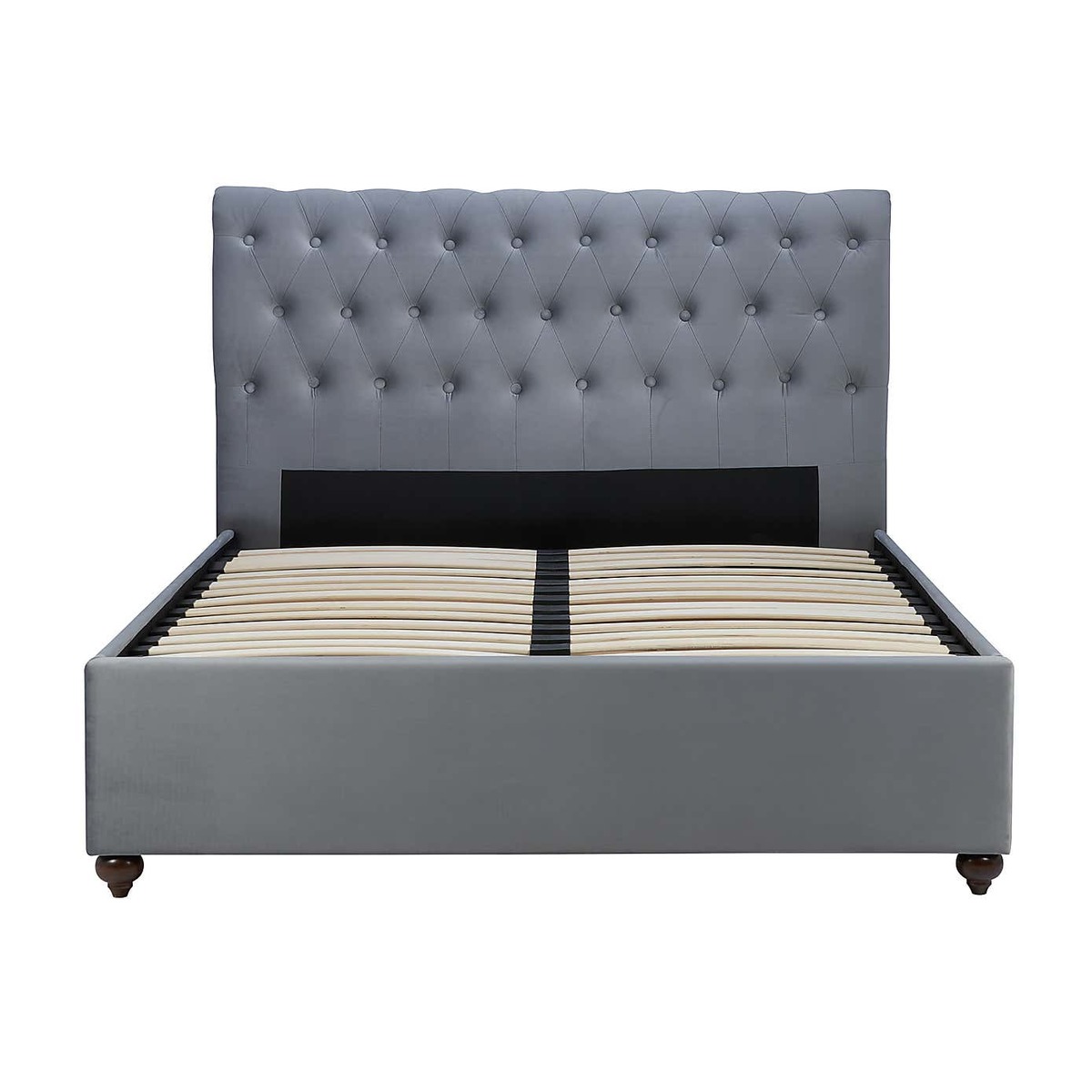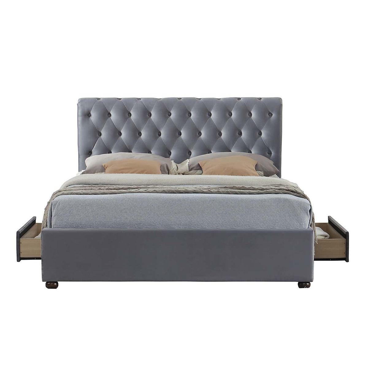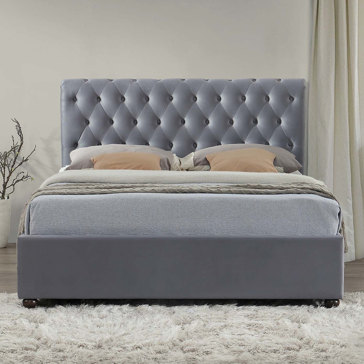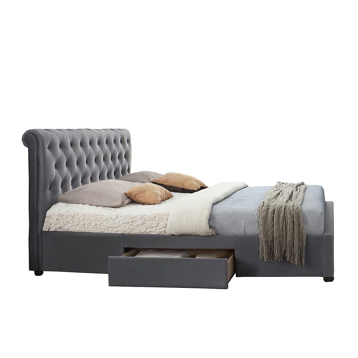 The elegant Marlow Storage Velvet Bed Frame is upholstered in luxurious grey velvet and features a stylish deep tufted headboard. It offers two spacious drawers built into the base, making it as versatile as it is beautiful. A solid slatted base provides firmer support and allows air to circulate beneath the mattress. Please note, unfortunately we cannot deliver this item to the Channel Islands.