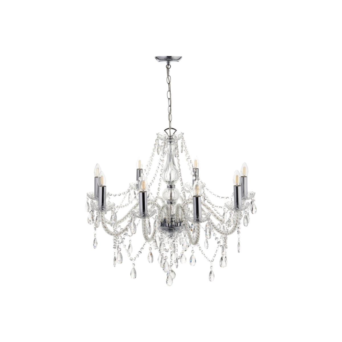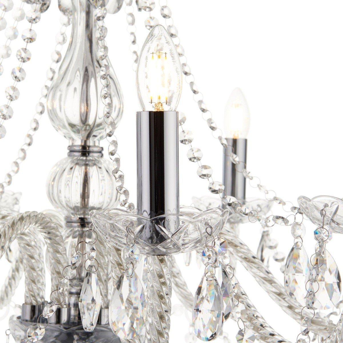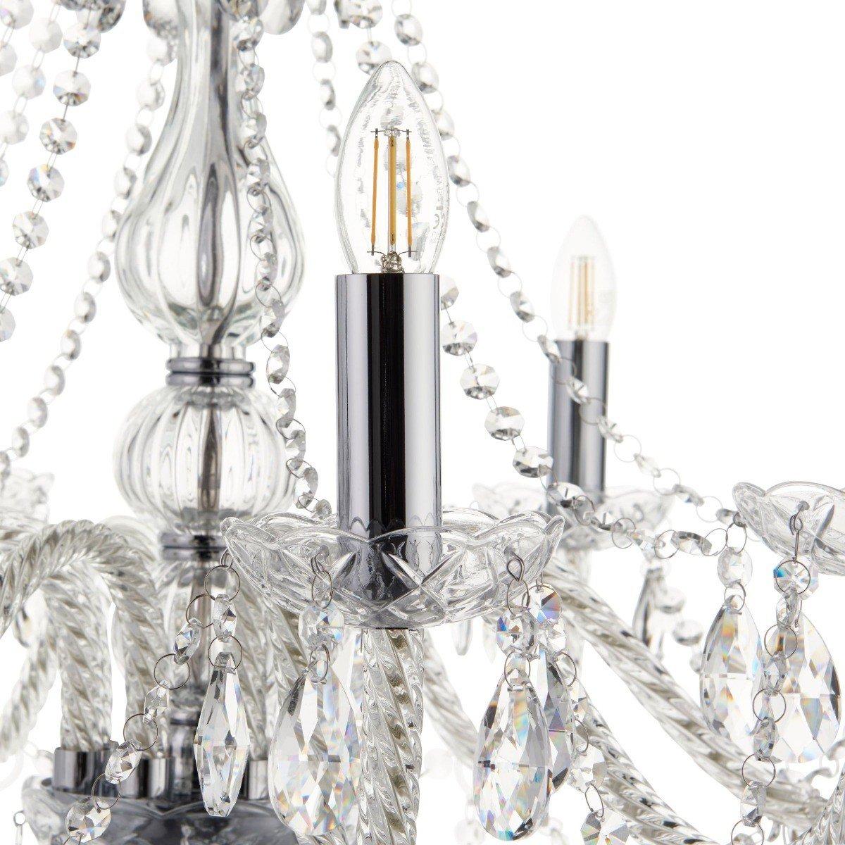 Dazzle your guests with the ultimate statement 8 light chandelier.. A striking addition to your home, the Marlowe Chandelier is a gorgeous contemporary piece. Boasting polished chrome detailing, the chandelier comes with glass decorative pieces throughout. Add a grand statement to wow your guests in any room of your home.. Style this light with our E14 4w LED Light Bulbs for a crisp light