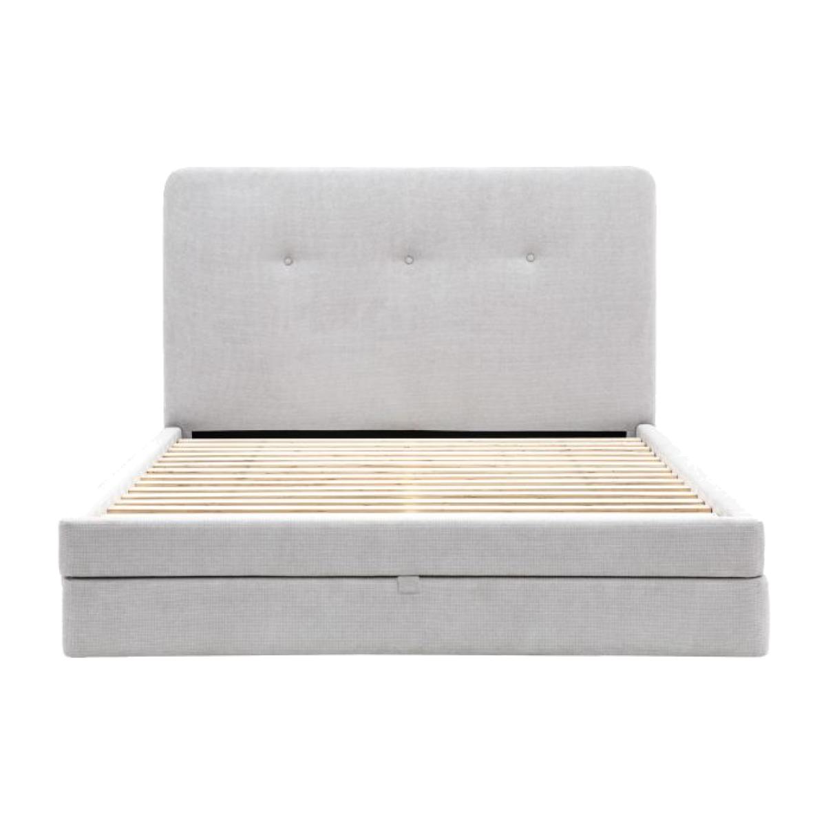With its simple classy design and lovely taupe fabric, this beautiful double bedstead would suit a wide range of interiors. The headboard has softly rounded corners and button detailing to give elegant style, and the base features two drawers to give storage space for added practicality. Also available in green fabric and as a kingsize bedstead.