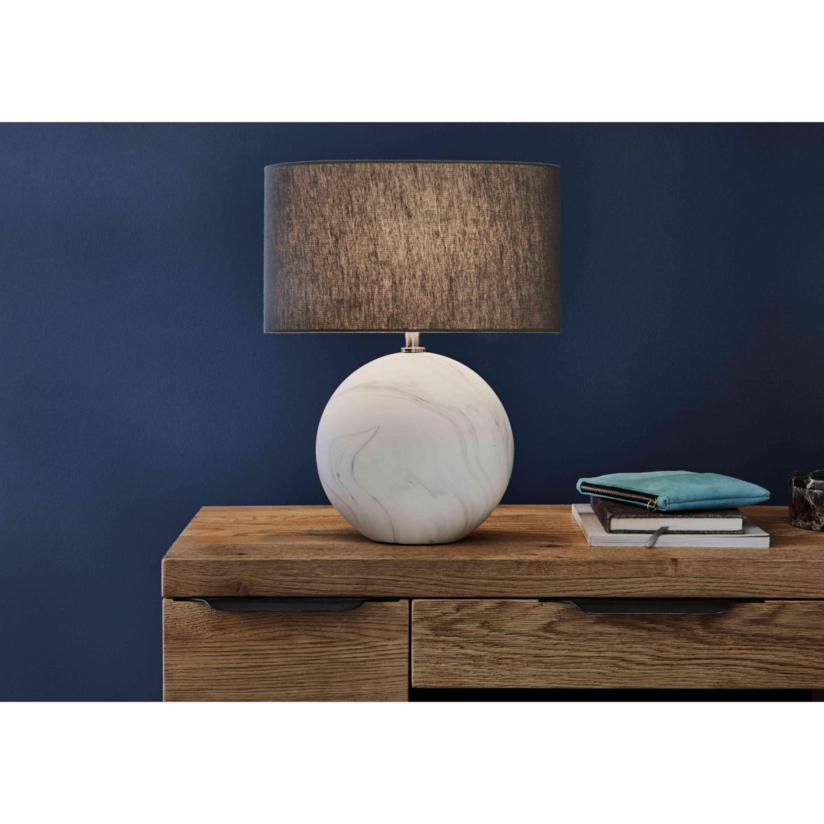 Marble is so on trend right now, and the Marmo small table lamp makes it easy to bring this gorgeous and opulent finish home. Made of durable ceramic with a smooth grey and white swirling marble-effect surface, the base of this table lamp is disc-shaped so it fits neatly on a smaller side table or a narrower shelf. Finished with an oval linen-effect lamp shade in grey, the Marmo small table lamp combines modern style with a classic finish – perfect for any interior décor. Dimensions. Width: 18 cm (7 inches). Depth: 31 cm (13 inches). Height: 41 cm (16 inches).