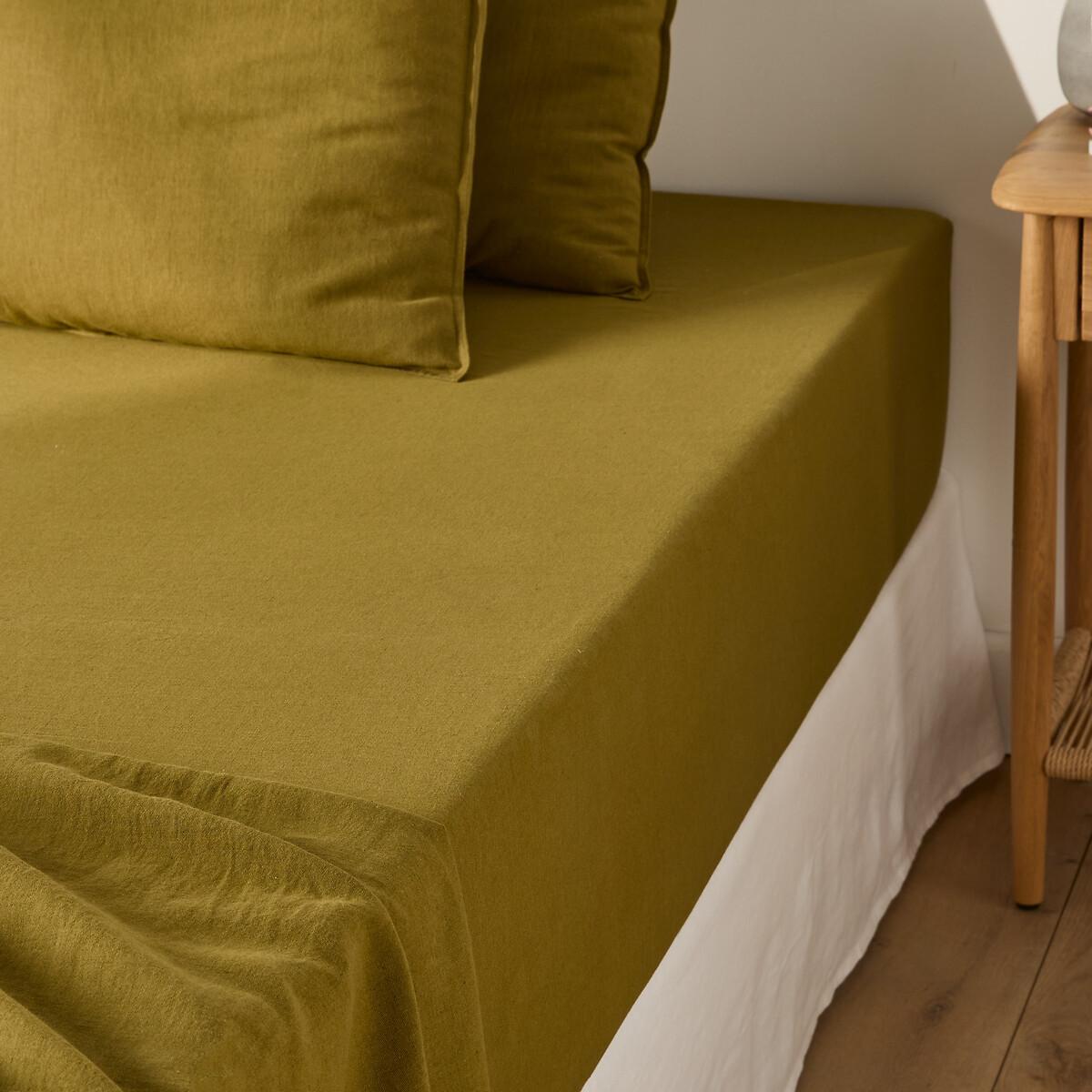 Marnie bed linen in washed cotton/linen is a La Redoute Intérieurs creation. Washed cotton/linen combines the softness and suppleness of cotton with the raw appearance of linen. Its slightly wrinkled appearance is incredibly on-trend, and it does not require ironing. Product Details • 55% linen, 45% cotton, 160g/m2 • Pre-washed fabric • Flap height 30cm for thick mattresses • Slightly wrinkled, ironing is unnecessary • 4 elasticated corners Care Advice • Machine washable at 40°CDimensions • 90 x 190cm : Single • 140 x 190cm: King • 160 x 200cm : King • 180 x 200cm : King • OEKO-TEX® Standard 100. Standard 100 certification by OEKO-TEX® tests textile products for harmful substances via an independent, international label.