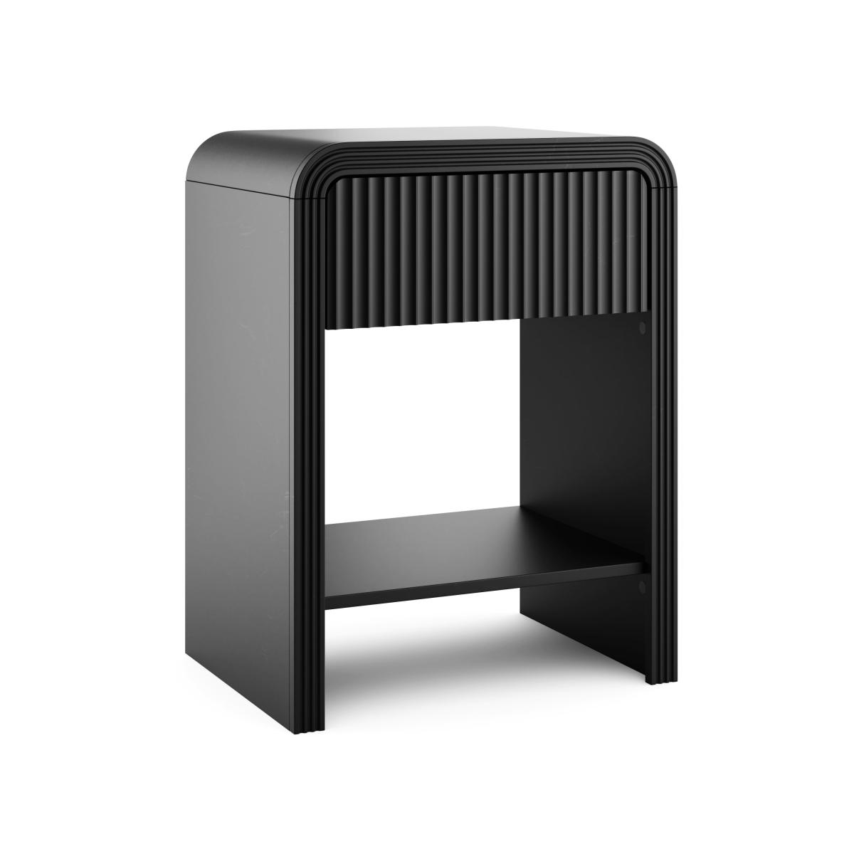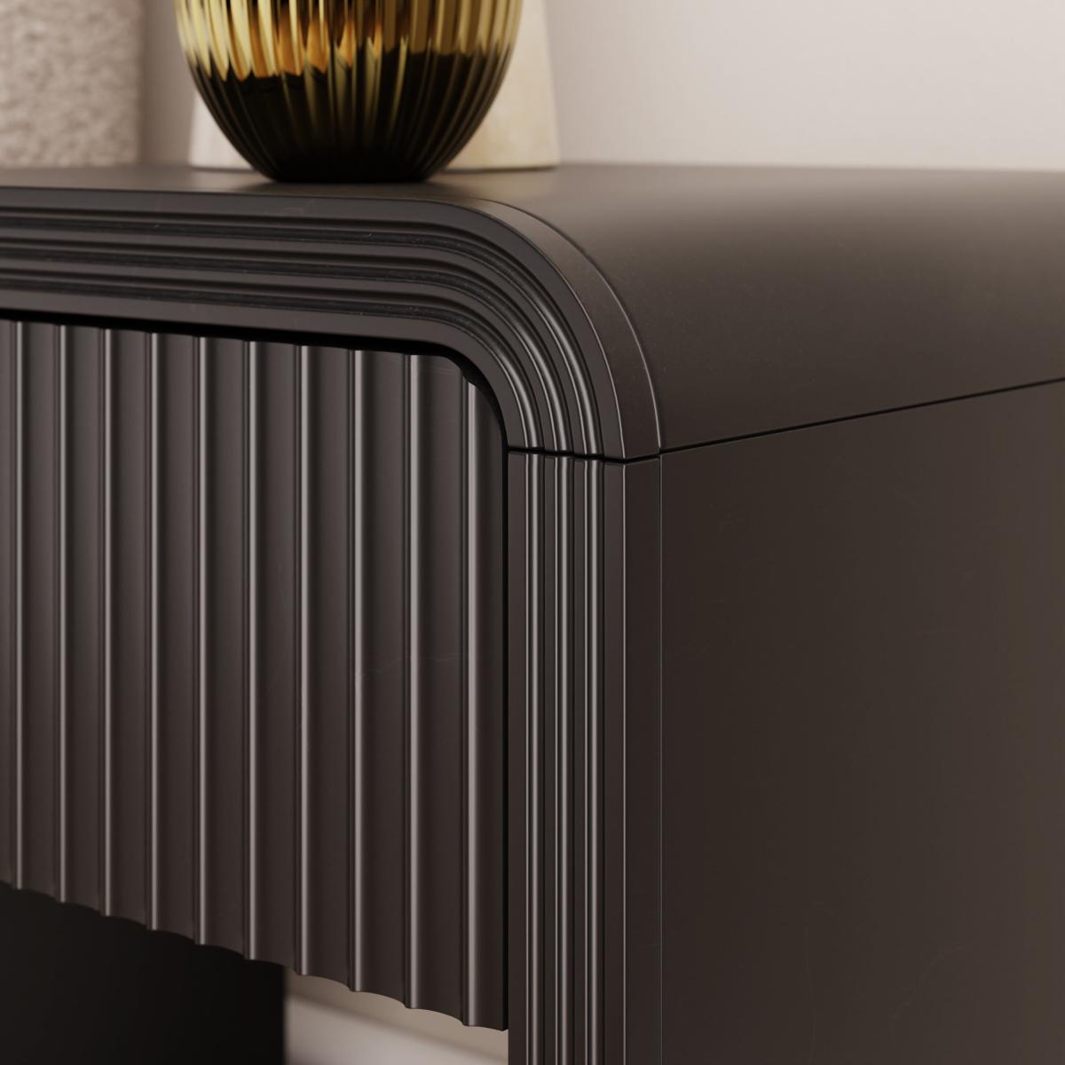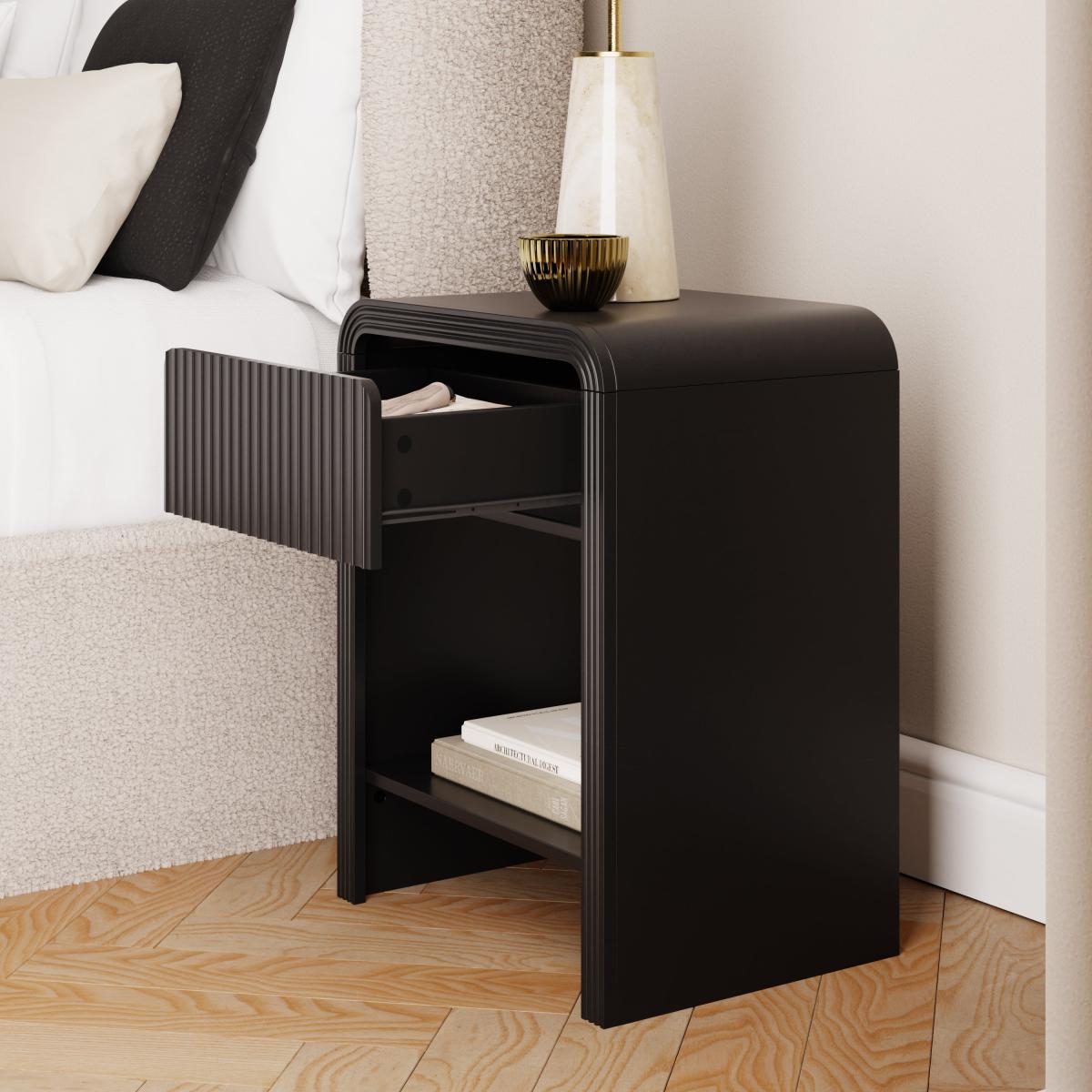 I love this little black bedside table for its sleek, minimalist design that works well in modern and contemporary interiors. Its clean lines and dark finish create a stylish focal point that can add depth to a neutral colour scheme, while also blending seamlessly with other monochrome or metallic accents. Practical styling tips include keeping the surface clutter-free with a simple lamp and a decorative object, like a small vase or clock. The shelf below is perfect for books or magazines, making it both functional and attractive. It’s versatile enough to sit beside a bed, but also works well in lounge areas or as a side table in a hallway, adding a touch of sophistication wherever it’s placed.