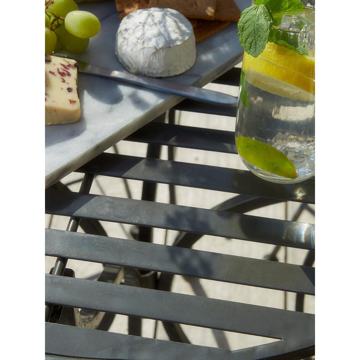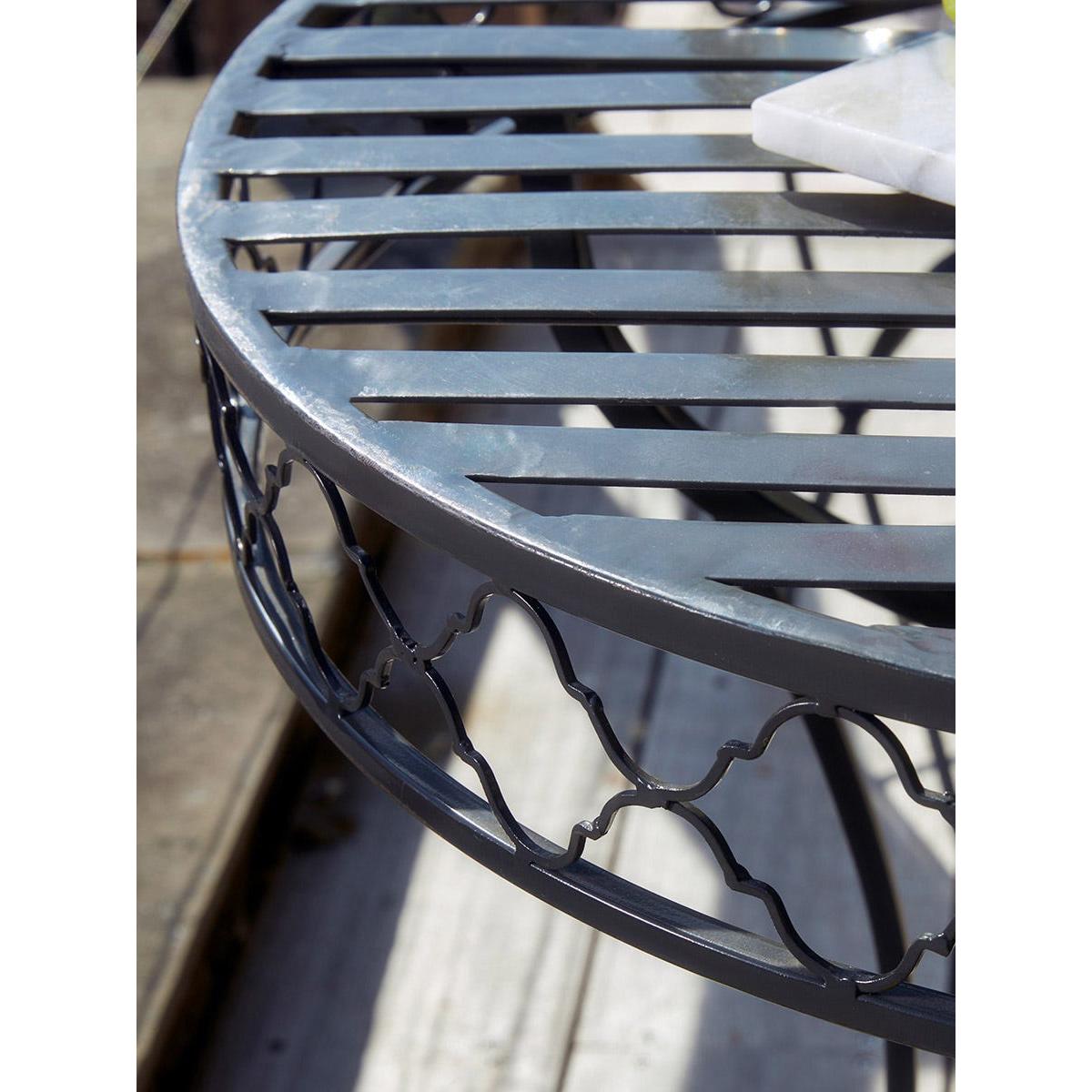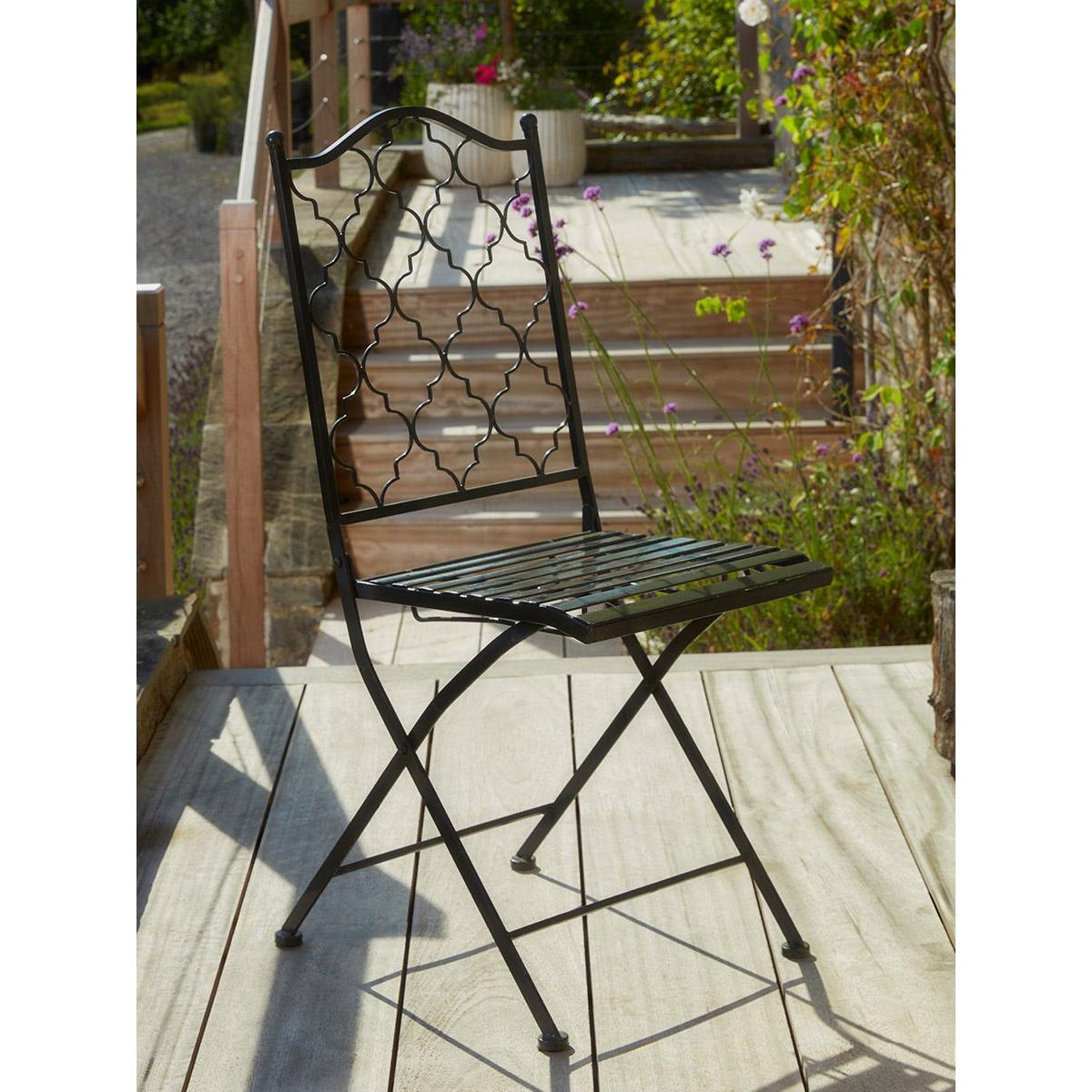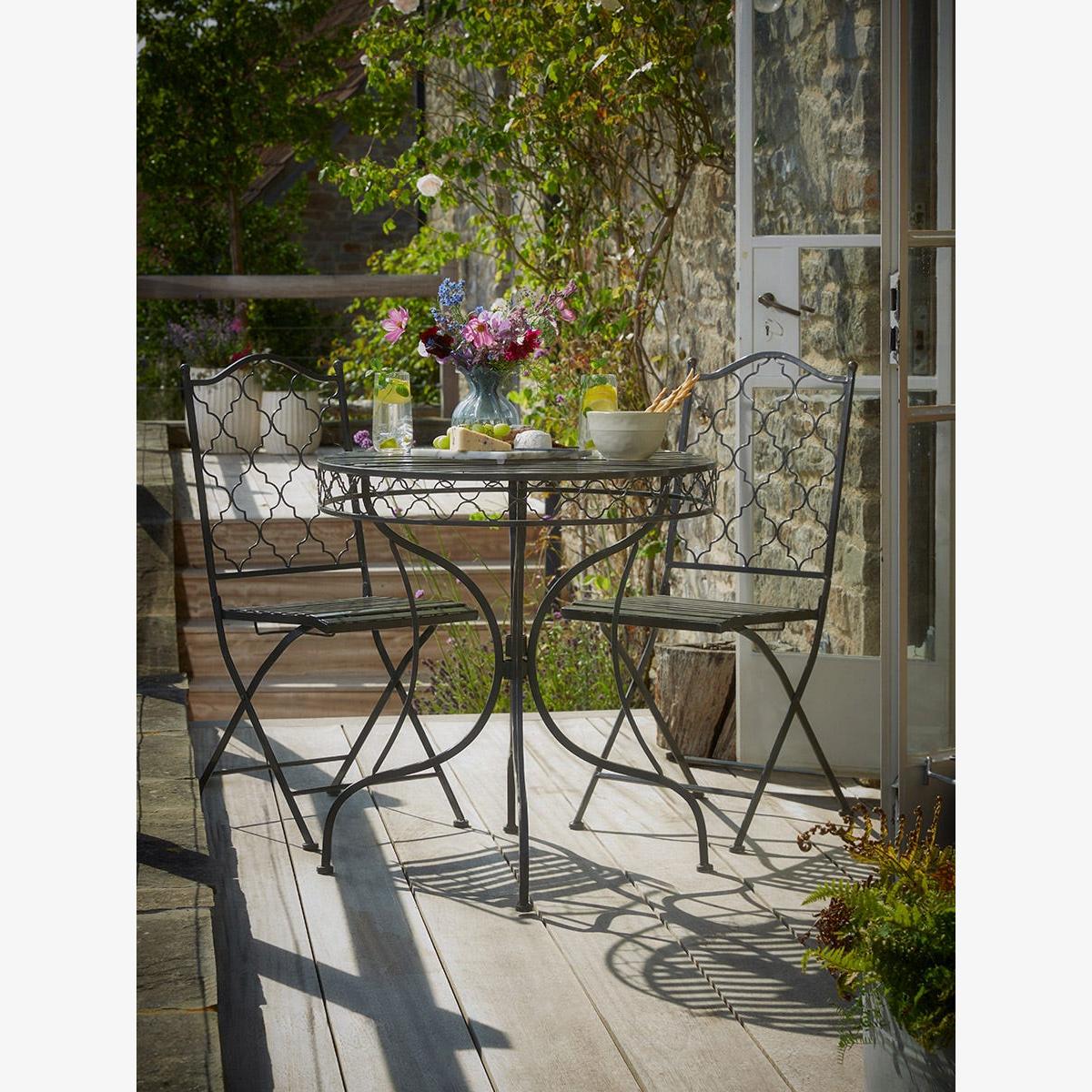 For a modern take on a classic bistro set, our Maroq Bistro Set in black metal adds a striking feature to your outdoor space. Whether placed on a balcony or courtyard for an intimate dining set up, or a patio for the perfect spot to drink with friends, this set has a maroq cut-out pattern on the chair backs and border of the table, for an added level of detail to feature in your garden.