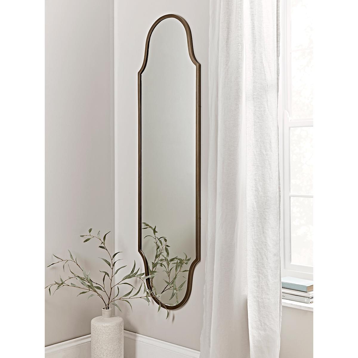 Crafted from brass with an antiqued finish, our tall, slim mirror features a subtle maroq arched design to its frame. The feminine silhouette. And authentic look will add a fabulous decorative touch to your wall space.