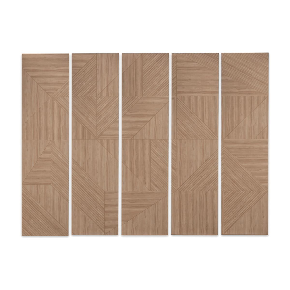To be arranged as wall panels on a dedicated surface or as a headboard, Marquetterie wallpaper is reminiscent of a trompe-l'oeil mosaic.
