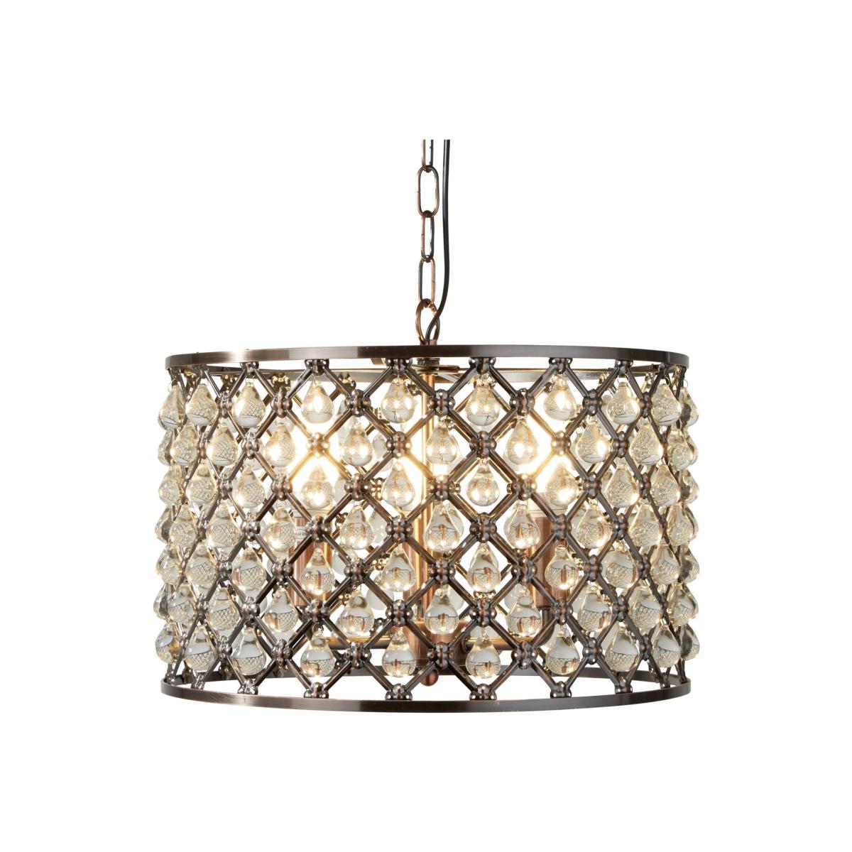 Marquise 3 Light Ceiling Pendant Copper with Glass Crystals, E14 - Copper