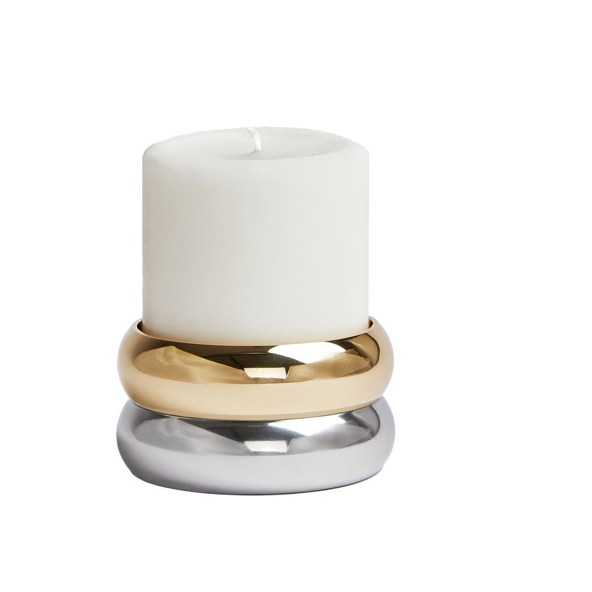 I love this trio of rings for its modern yet understated appeal; the mix of brass and silver provides a versatile metallic palette that can complement a wide range of interior styles. It works particularly well in contemporary and minimalist settings, adding a touch of sophistication without overpowering the space. For styling, try grouping it with other brass or silver accessories or placing it on a simple tray with candles and greenery for a curated vignette. It’s also quite practical-use it to hold taller pillar candles for a striking centrepiece or cluster a few for a layered look on a console or side table. Its clean design makes it adaptable, so it can elevate both sleek modern interiors and eclectic arrangements with ease.
