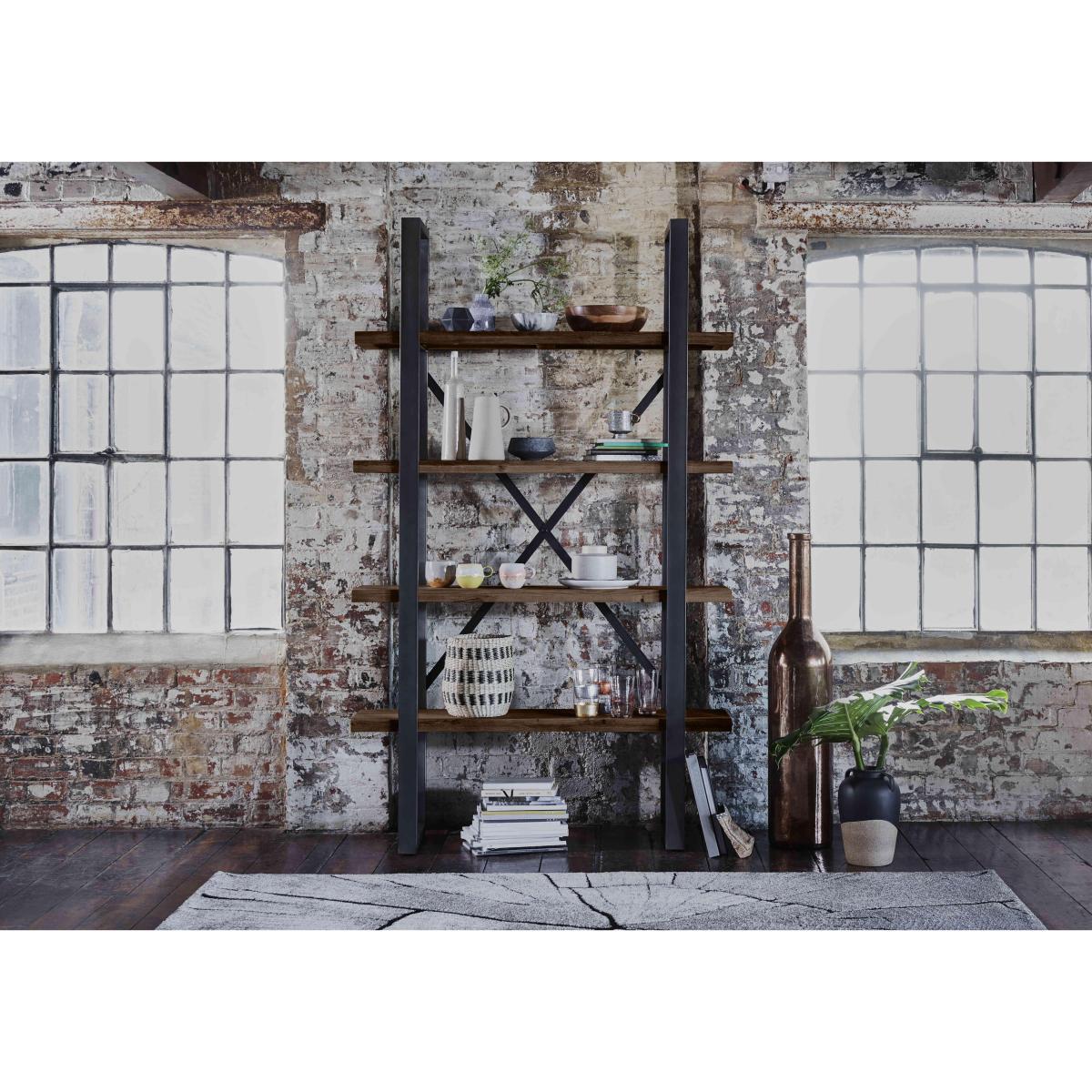 If you’re a fan of our popular Earth collection, you’ll love our Mars range. Like Earth, Mars delivers cool industrial design with plenty of beautiful solid oak and veneer surfaces and sturdy metal bases. It also offers a really extensive selection of dining room and living room furniture at fantastic-value pricing that makes it so easy to bring home on-trend urban style for less. The Mars difference? A distinctive dark oak finish that strikes the perfect balance between modern rustic design and sophisticated interior style. It’s a contemporary aesthetic that looks fabulous in all kinds of spaces. Only at Furniture Village. This is storage that makes a statement. With its solid oak shelves and bold black metal frame, this open shelving unit is stylish as well as practical. Why you'll love it. Storage takes centre stage in this on-trend open shelving unit. Contemporary industrial style at a truly exceptional price. With 4 real oak shelves, every unit is a one of a kind. Solid oak shelves have a characterful dark wire-brushed and oiled finish. Sturdy black metal frame. Only at Furniture Village. This open shelving unit is part of the Mars range. What you need to know. Shelves are fixed. As oak is a natural material, knots and markings are to be expected. Avoid placing in direct sunlight, and take care to use coasters and placemats. To preserve the finish, apply an invisible buffing wax every six months. WARNING!. Furniture can tip over unexpectedly and cause injury. This item must be fixed to a wall using the anti-tip kit provided. Be sure to use the correct wall fixings suitable for the walls in your home. Furniture Village is not able to fix anti-tip devices for you. Seek professional advice if you are unsure.