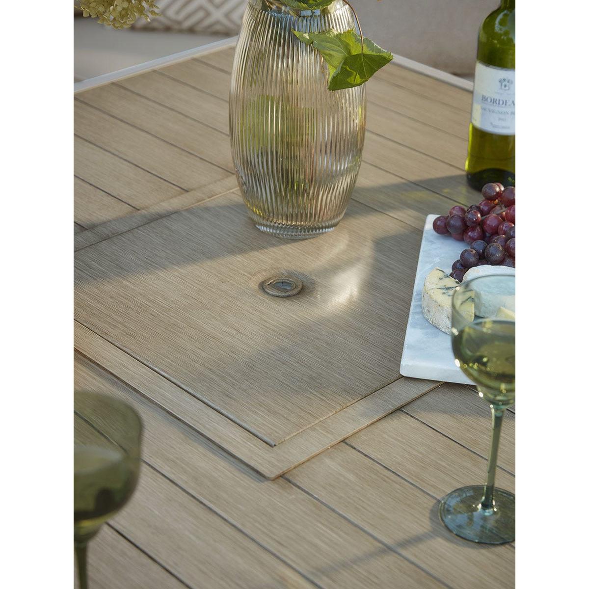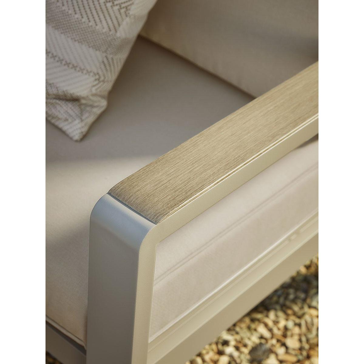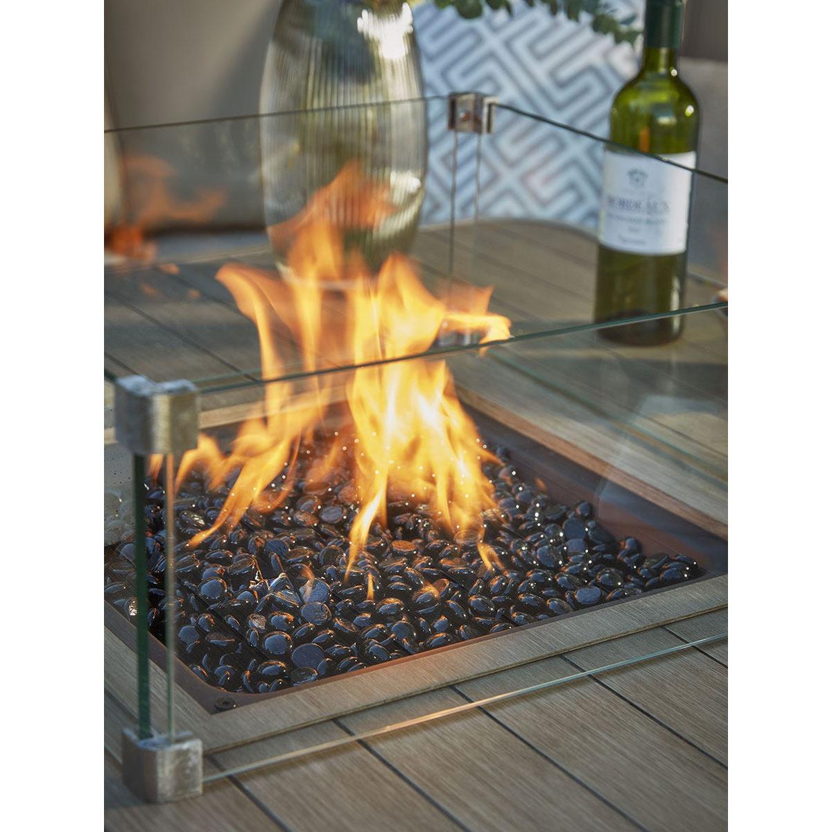 Enjoy entertaining family and friends on our spacious Marseille Corner Dining Set with Firepit. Made up of a corner sofa and two benches, the sleek and sturdy aluminium frame houses plump cushions in neutral tones that create the most comfortable place welcome guests and enjoy refreshing drinks in the sun for a restful place to while away the summer days. With a table made from the same aluminium frame, it houses a firepit that when the sun goes down and the light gets dim can gently lught the same for you and your guests as well as providing warmth as your enjoy the full day in your garden. With neutral tones, not only does this set provide a place of luxury to rest, but its simple design and colours make it perfect for a variety of garden styles.