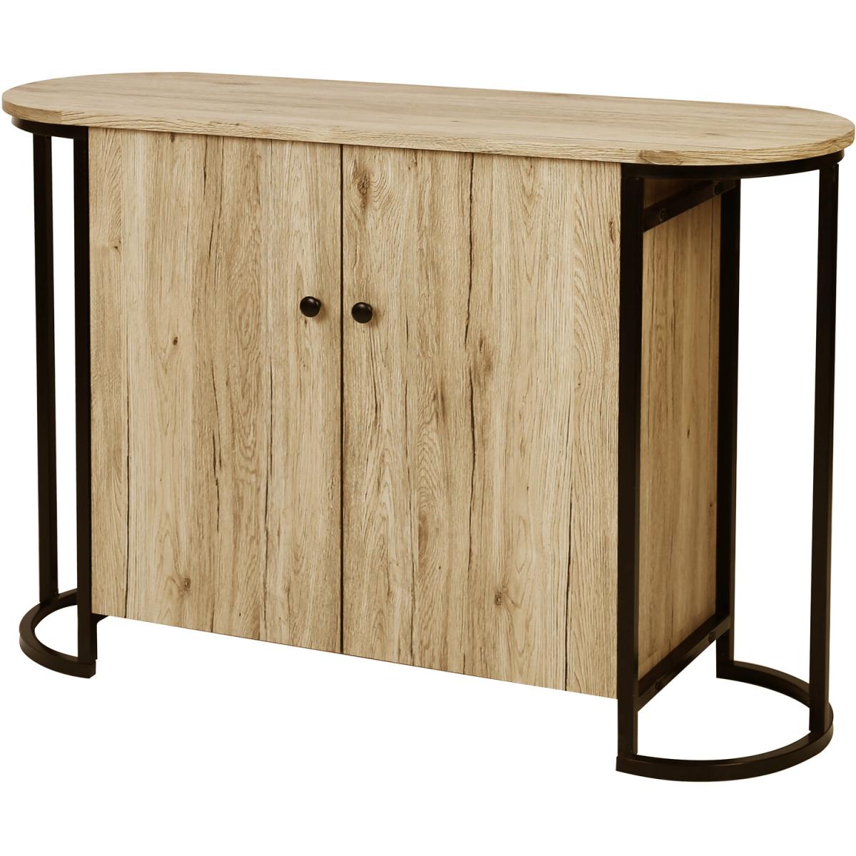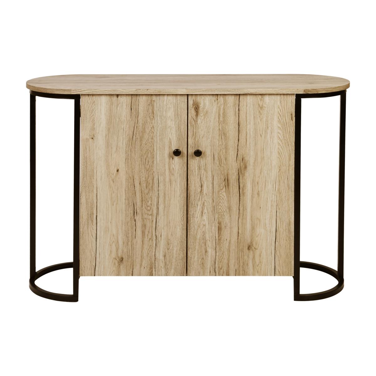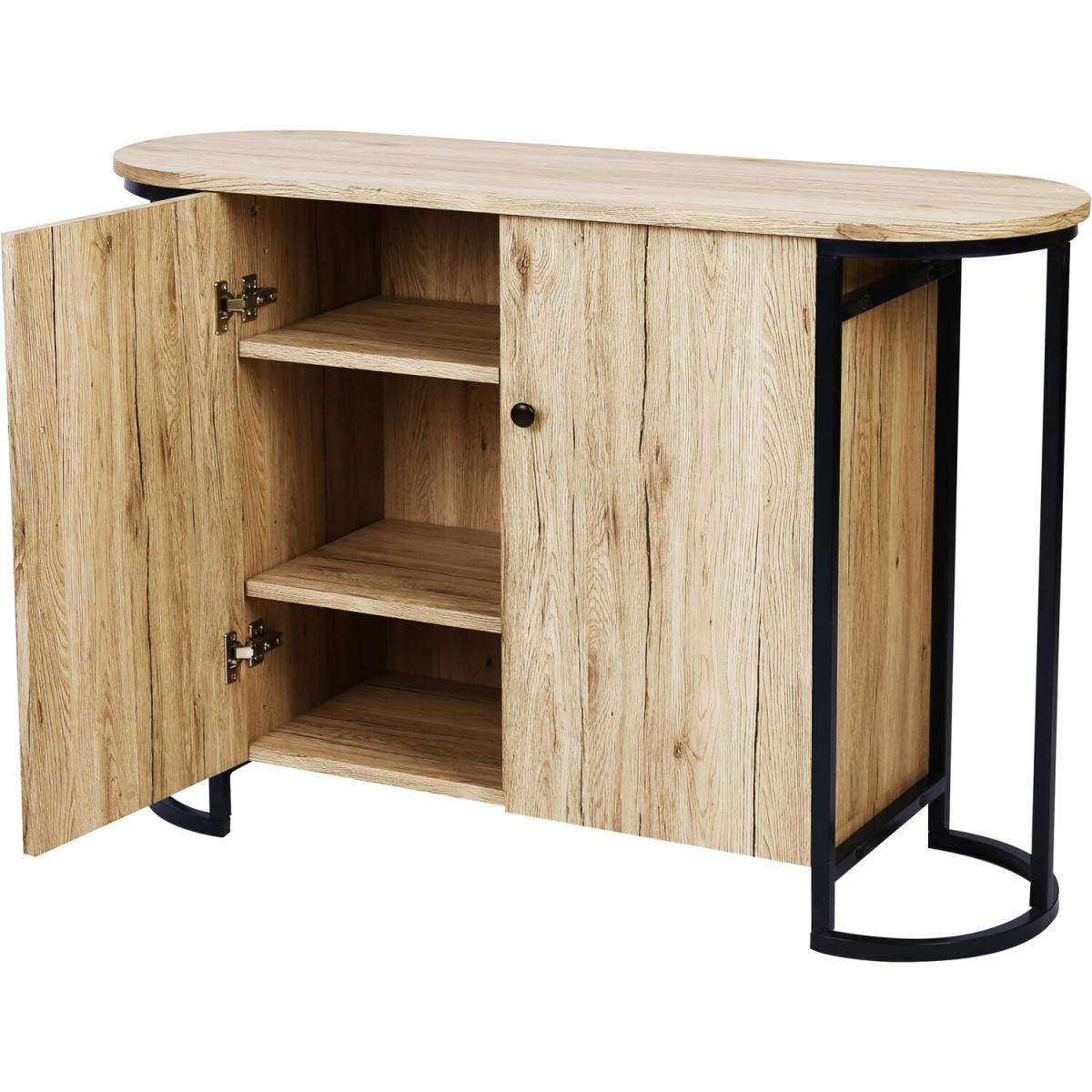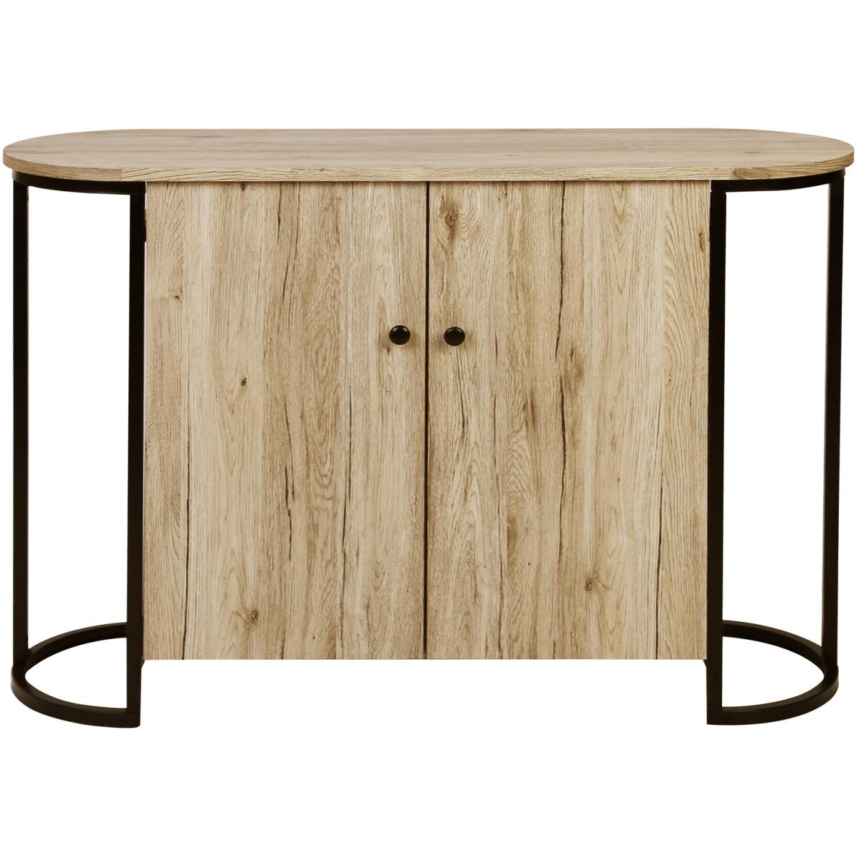 Inspired by industrial style the Marseille Sideboard is constructed with a black powder coated metal frame and modernised with curved edges. The wood effect cabinet opens to reveal two internal shelves and ample space for storing all your miscellaneous items. The ideal unit for your living room or hallway, this sideboard is also part of a matching furniture collection with coordinating shelving units and TV stand available.