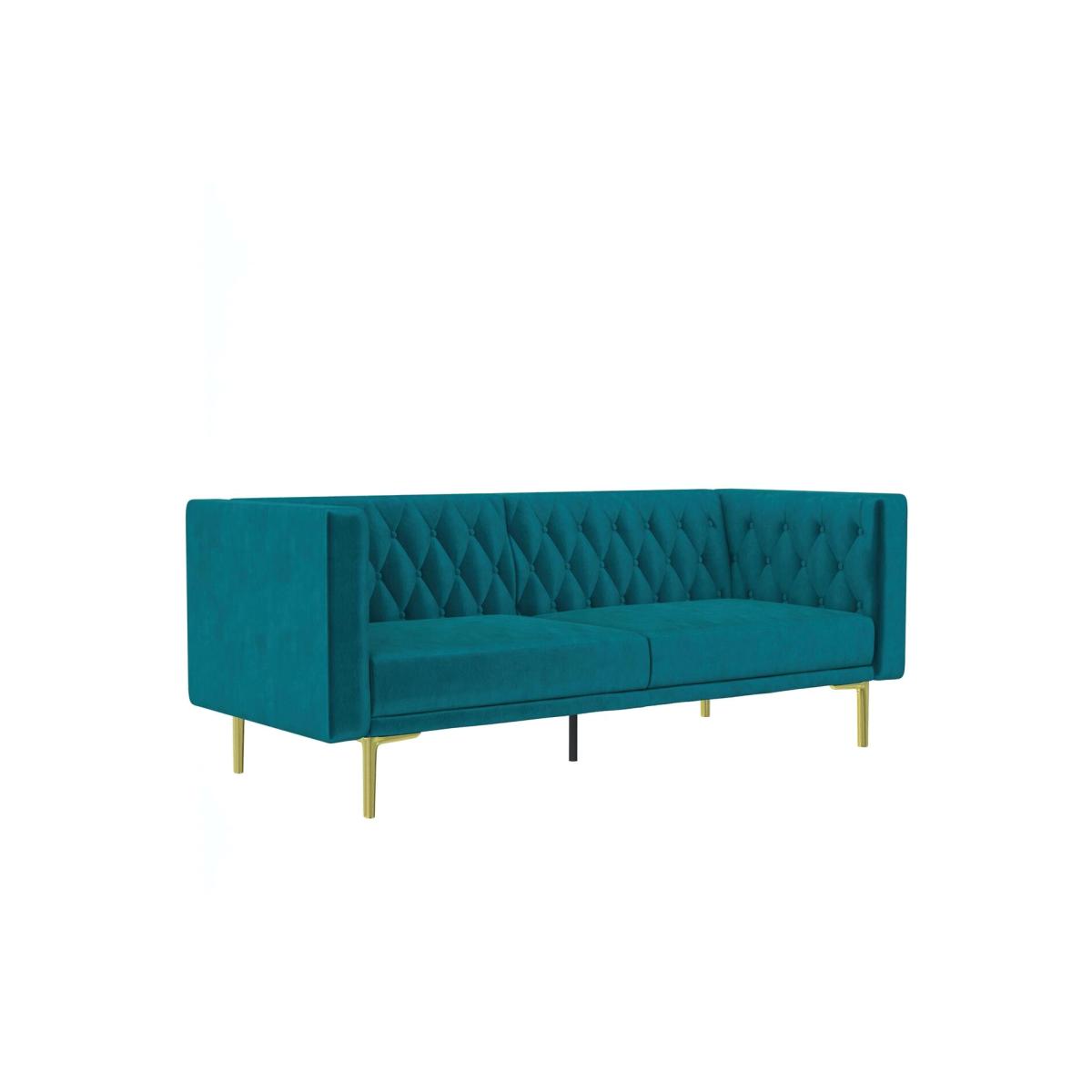 Taking a page out of the old Hollywood glam playbook, we've designed a contemporary 3-seater small space couch that projects a sumptuous living room style but won't necessitate a movie star decor budget. The DHP Marseille Tuxedo Sofa is one part vintage, one part art-deco, and 100% modern chic with Chesterfield-esque styling dripping in velvety fabric upholstery, even level padded shelter arms and back, exquisite deep diamond pattern button tufting along the inner backrest and armrests, and ultra-ritzy 7.5" high tapered gold metal legs. Developed with an ideal 78.5" wide stance, this tufted apartment sofa is perfectly sized to easily seat 3 people for intimate soirees and delivers a favoured medium firmness level feel thanks to generously high-density foam-filled attached seat cushions. Construction-wise, the Marseille was built with quality elements that include a durable plywood frame, solid steel legs, and a sinuous spring backing that prevents sagging in the long run.