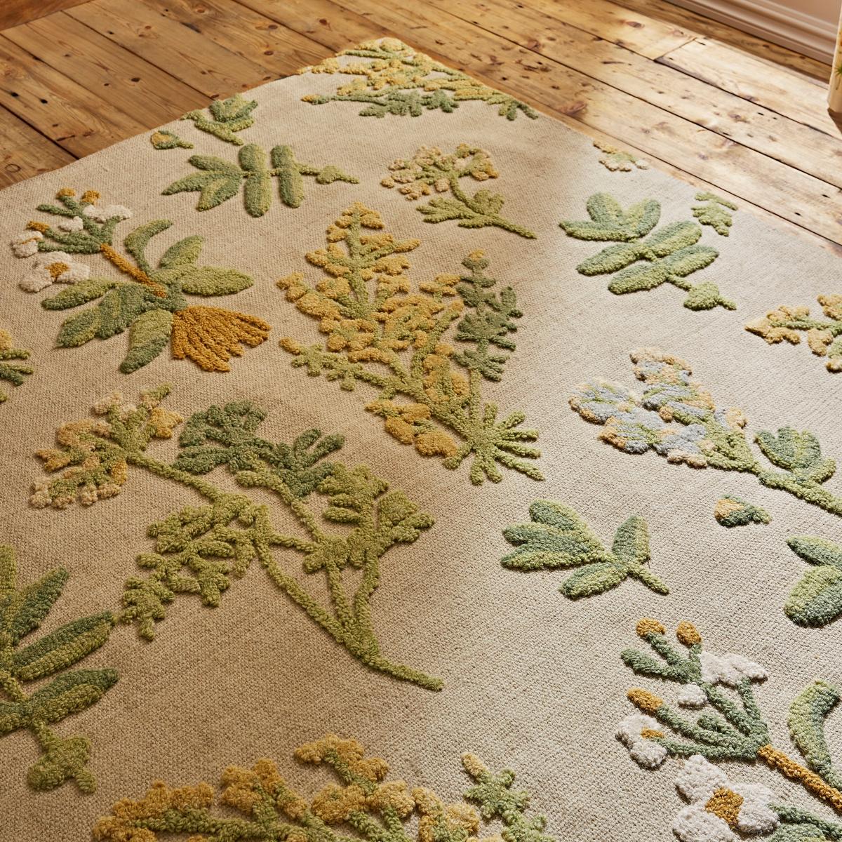 In collaboration with the Natural History Museum. Add a floral touch to your space with the Marsh Botanical Wool Rug. The detailed floral design adds a natural look to your space, while the high-low effect of the pile adds depth. Hand-crafted by skilled rug artisans in India, the 100% wool design boasts soft and warm-touch qualities. We love using the Marsh Botanical Wool Rug in bedroom and living spaces. The Marsh botanical collection celebrates the lesser known flora of UK marshland habitats and the specific insects (moths and butterflies in particular) that rely on these plants thriving. Wool is a natural fibre and may shed for 6-12 months as it settles in. Simply vac up any loose fluff. Safe for use on a heated floor. Use a suction type vacuum - rotating brushes may damage this rug. Re-roll your rug pile out for 24 hours to reduce curling. Regularly turn to ensure even wear. An anti-slip mat will help prevent slipping. Blot spills immediately with a clean, dry white cloth. Do not rub. Do not place this rug near an open fire. Please do not leave children or infants unattended. Natural History Museum x Dunelm. The Marsh Botanical Wool Rug is part of the Wetlands collection. Wetland habitats are vitally important in supporting an abundance of plants and animals that thrive in these unique and complex ecosystems. With this collection we’re shining a light on some of the wonderful species that you can find in the UK’s wetland areas and highlighting the need to protect these incredible yet vulnerable habitats. © The Trustees of the Natural History Museum, London 2022. All Rights Reserved.