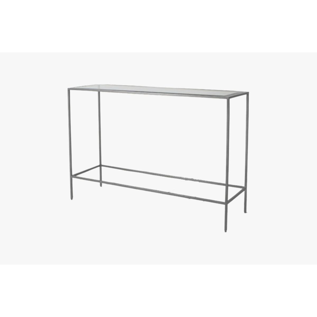 I love this console table for its sleek, minimalist design which makes it versatile for many interiors, from modern to industrial schemes. Its slim frame allows it to slot seamlessly into narrow hallways or behind sofas without overwhelming the space. For styling, consider balancing the clean lines with a mix of textured accessories such as a decorative tray, a small sculpture, or a few framed photographs on top. It works particularly well in entryways as a practical surface for keys and mail, but can also serve as an excellent backdrop in living rooms for plants or statement lighting to add warmth and personality. Its understated elegance offers a timeless look that can be updated easily with changing decor accessories.