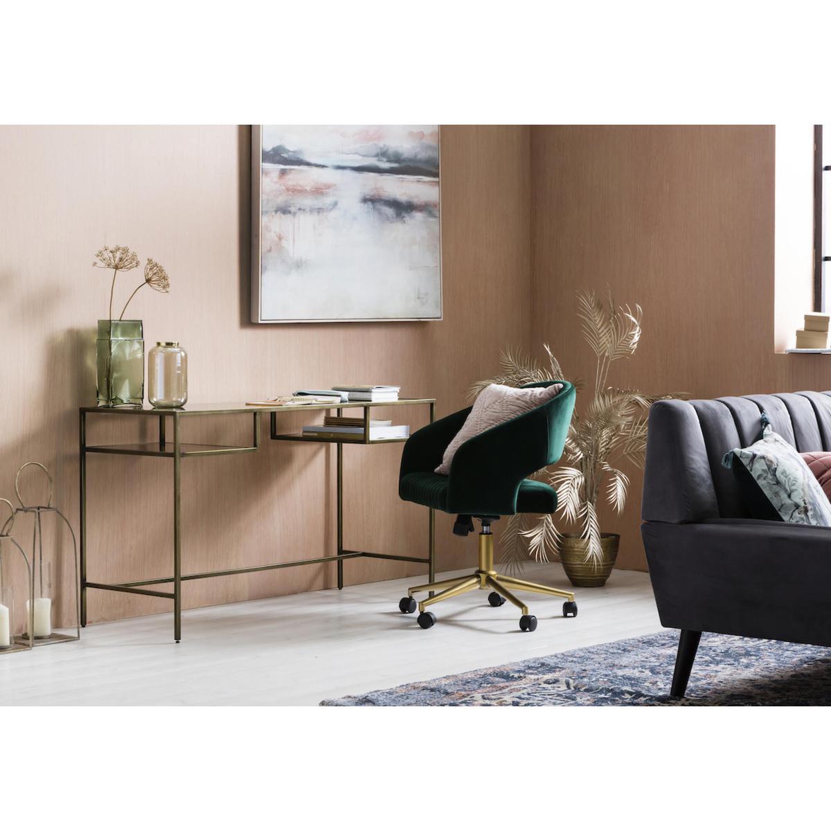 I’m drawn to this bronze-framed desk for its slim, open silhouette - it feels light in a room yet still makes a statement. Its metallic finish works as well in a pared-back Scandi study as it does against exposed brick in an industrial loft, and the simple under-top trays keep essentials close without cluttering the desktop. For styling, keep the palette soft - think off-white walls and stone accessories to let the bronze pop. A slim task lamp, a little potted plant and a leather-bound notebook add texture without competing. If you need extra storage, floating shelves above or a neat stack of magazine boxes underneath will keep everything organised.