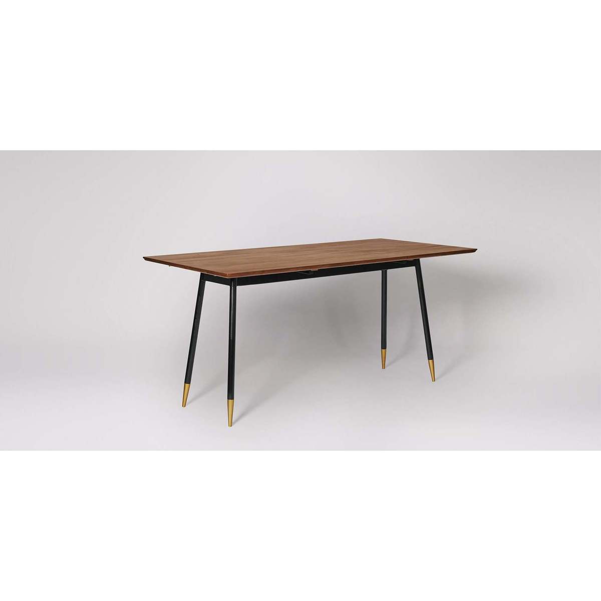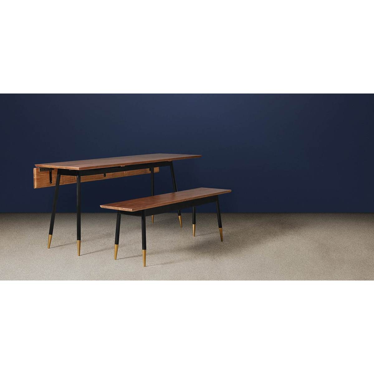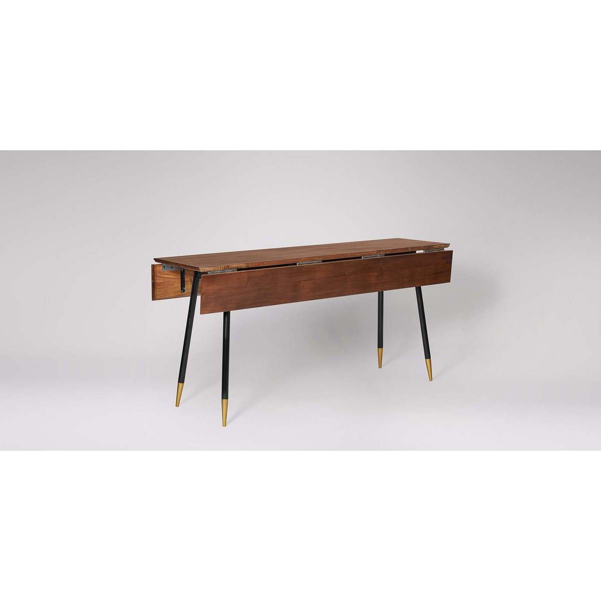?There's a first time for everything – and that includes ultra-refined, folding dining tables for us.?Yep. Because the sides of this rectangular table fold down, it becomes a bench-like table when in narrow spaces. Comfortably seating six when extended, the Marsilea is an adaptable introvert who moonlights as an extrovert when your pals are over for dinner.?Timber top, tapered splayed legs with brassy caps on the end – it's clean, slick Deco at its finest.