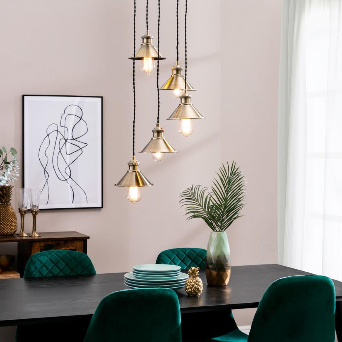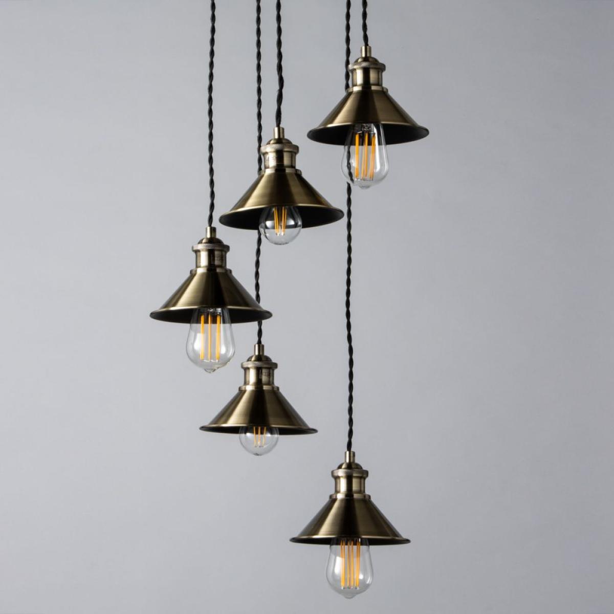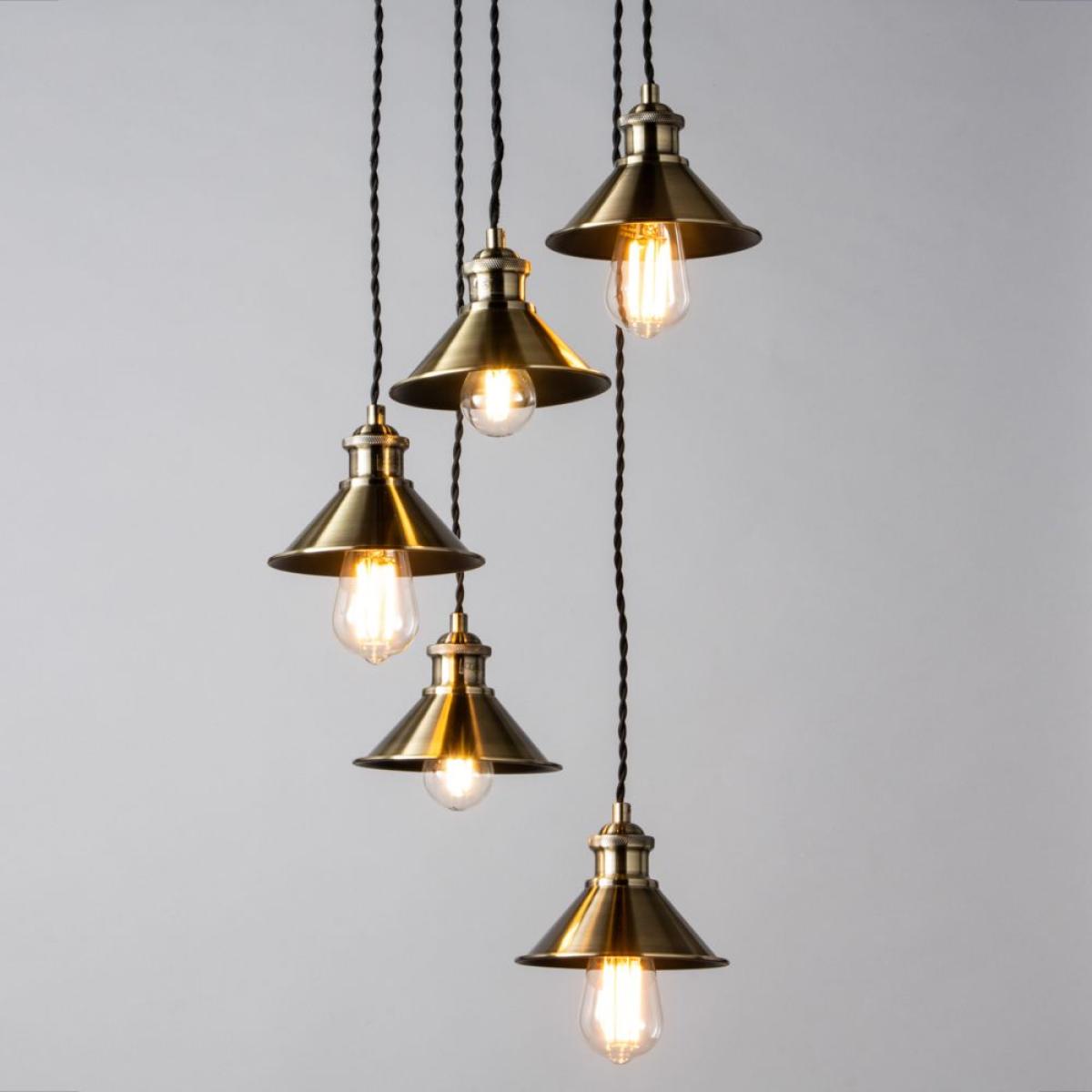 I really like this small metal coolie cluster pendant in antique brass - it has a versatile industrial charm that works well in both contemporary and vintage-inspired interiors. It’s perfect for adding visual interest over kitchen islands, dining tables, or in a cosy corner of a living room. When styling, consider pairing it with exposed brick or neutral tones to bring out its warm brass finish, or use it to add a touch of urban sophistication in more minimal schemes. Practical tips include hanging it at varying heights for an engaging focal point or grouping it with other pendant styles to create a layered lighting effect. Overall, its compact size and distinctive finish make it a reliable choice to add personality without overwhelming the space.