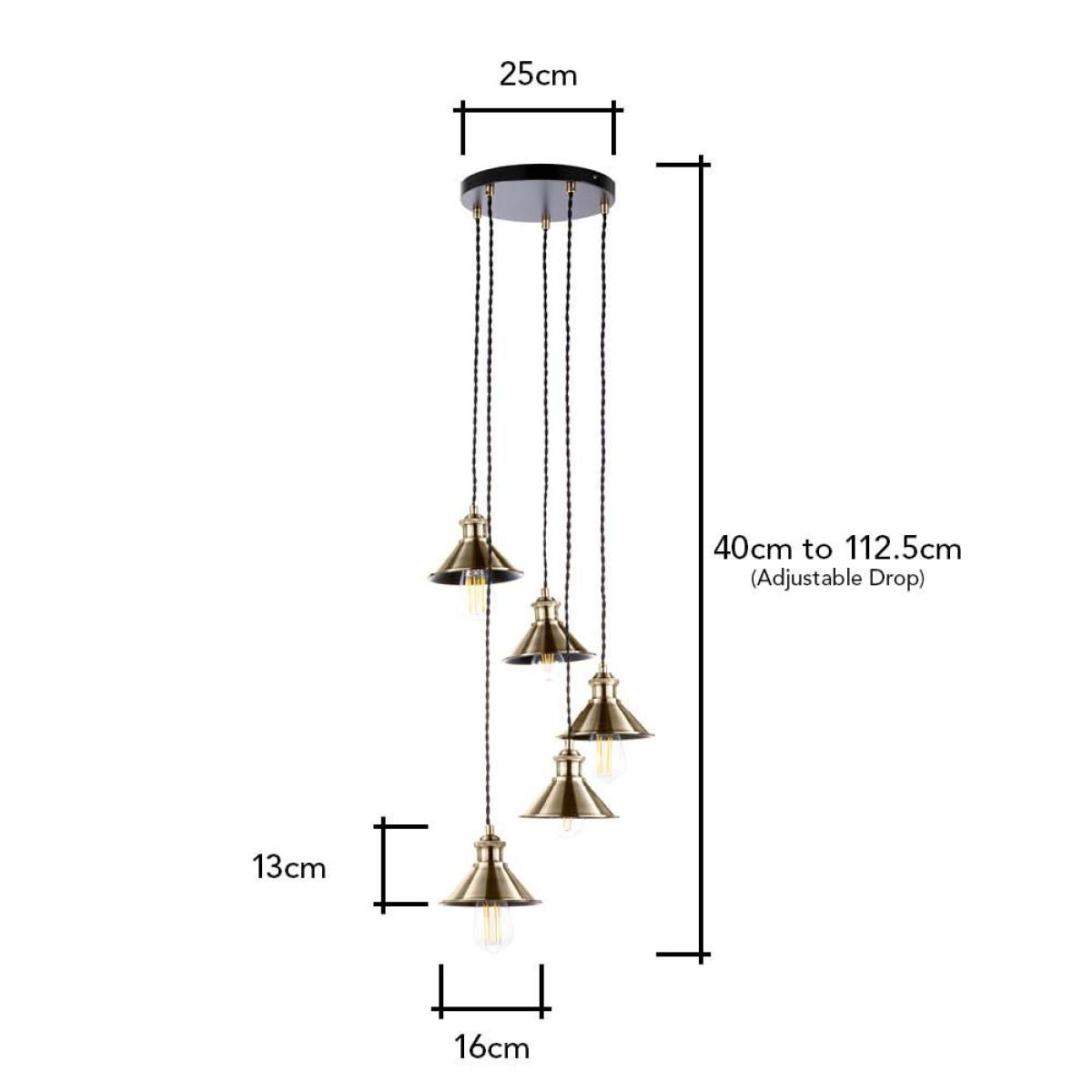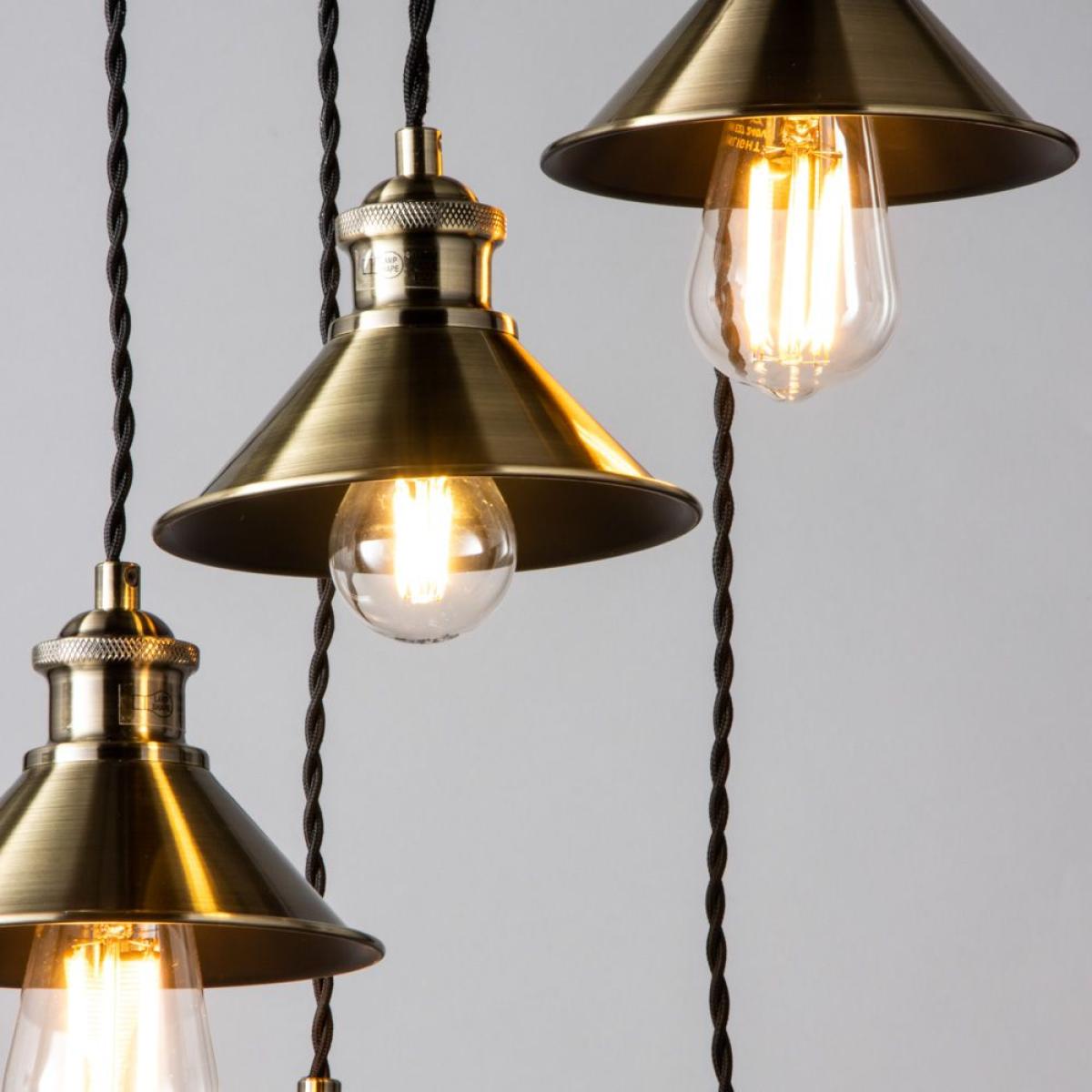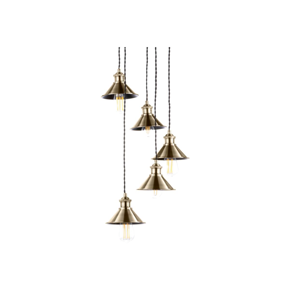 I really like this small metal coolie cluster pendant in antique brass - it has a versatile industrial charm that works well in both contemporary and vintage-inspired interiors. It’s perfect for adding visual interest over kitchen islands, dining tables, or in a cosy corner of a living room. When styling, consider pairing it with exposed brick or neutral tones to bring out its warm brass finish, or use it to add a touch of urban sophistication in more minimal schemes. Practical tips include hanging it at varying heights for an engaging focal point or grouping it with other pendant styles to create a layered lighting effect. Overall, its compact size and distinctive finish make it a reliable choice to add personality without overwhelming the space.