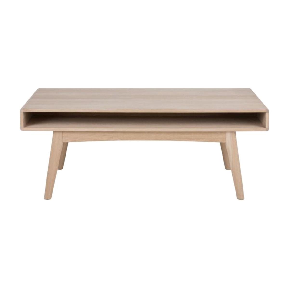 Meet the Marte Rectangular Coffee Table. A contemporary centrepiece for any room. Boasting a white pigmented oiled oak veneer top and shelf, paired with a matching base, it exudes timeless elegance. Complete with a convenient open compartment, this table seamlessly combines style and functionality.