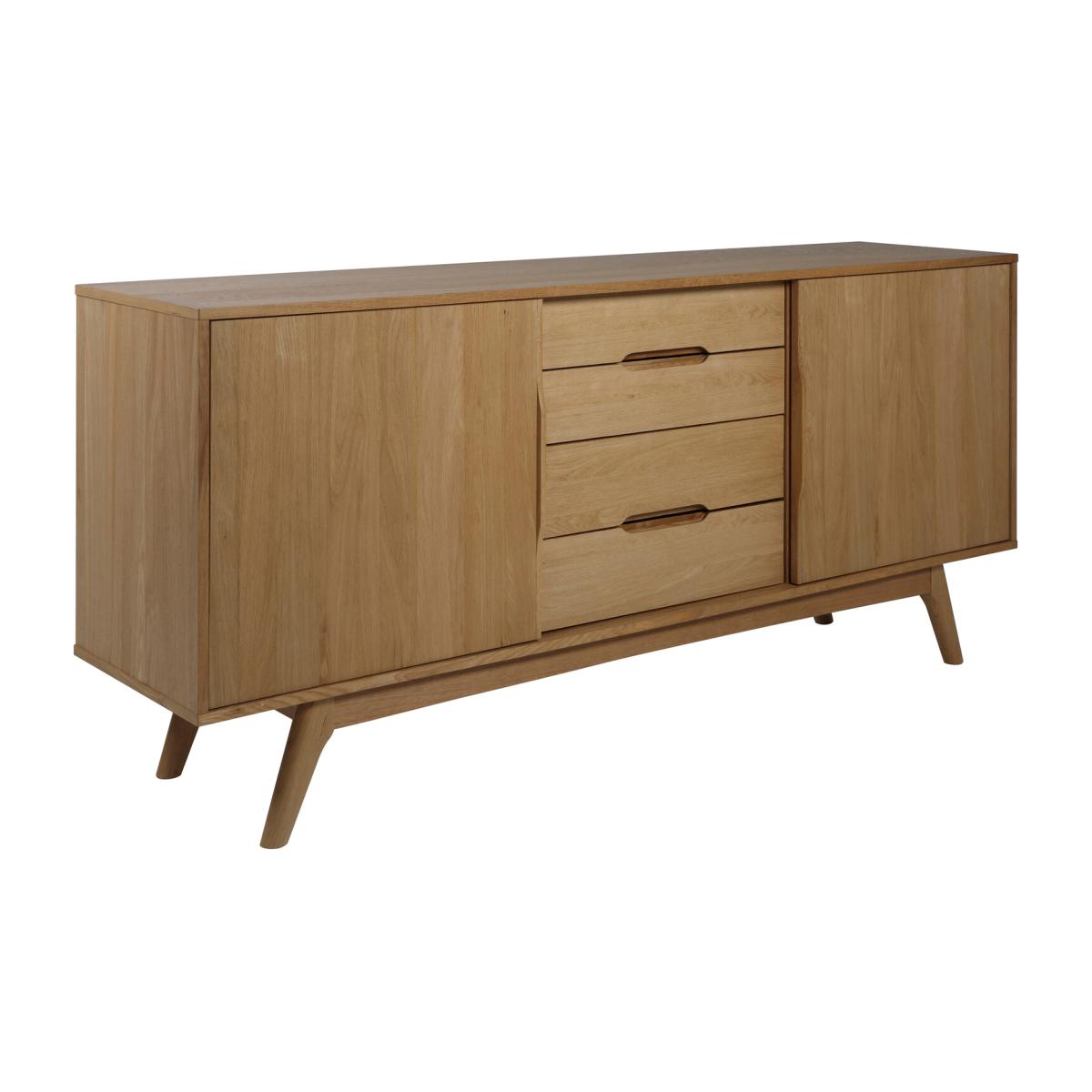 Add a contemporary twist to retro-inspired design with the Marte Sideboard. This sideboard is crafted from oiled oak wood, and it features angled legs, integrated handles, and a stylish, durable finish that complements modern interiors beautifully. With two sliding doors, four spacious drawers, and four compartments, it provides versatile storage for dining essentials, decorative items, books, or everyday clutter, keeping your space organised and elegant. Perfect for living rooms, dining areas, or hallways, it combines functional storage with timeless retro design, effortlessly blending classic charm with contemporary style to create a striking, practical, and stylish furniture piece.