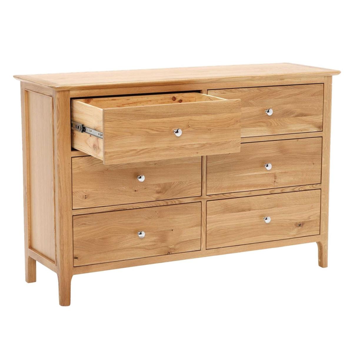 Design. Handcrafted predominantly from solid oak with beautiful oak veneering, the sturdy Martello 6 Drawer Chest is a timeless storage solution that complements a range of home décors. Suitable for bedrooms and living areas, the Martello features 6 handy sliding drawers, embellished with a choice of rustic wood or modern chrome handles to match your home’s interior style.