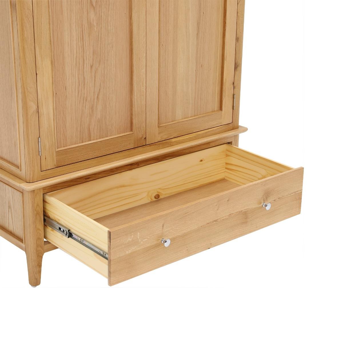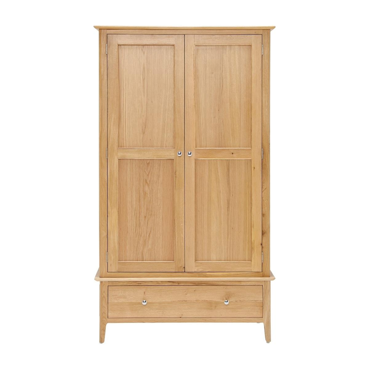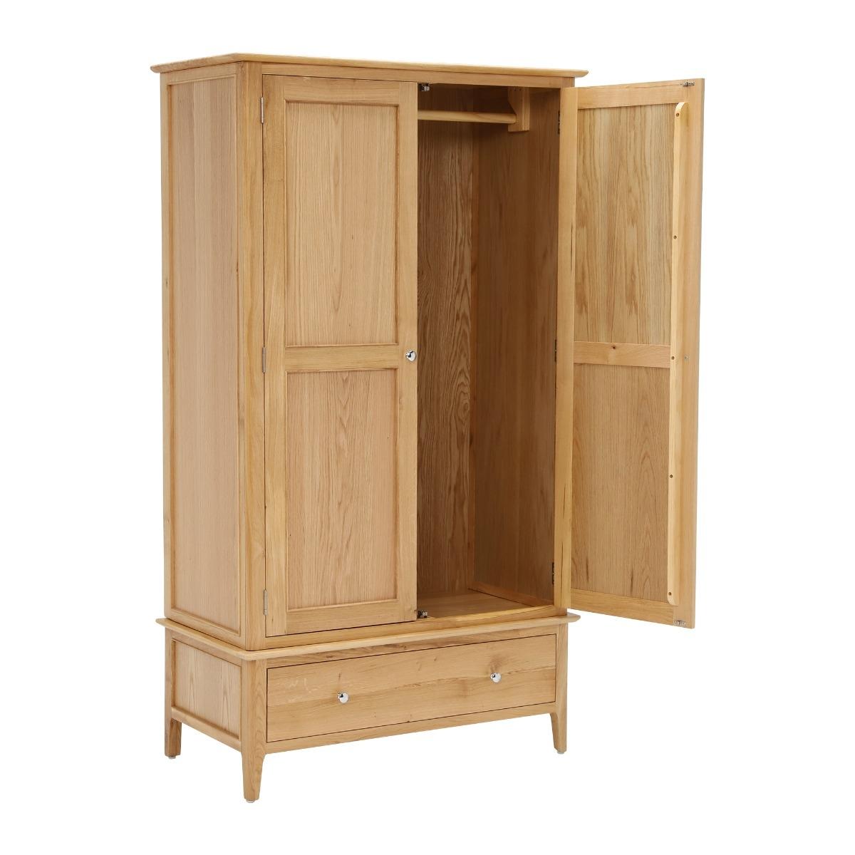 Design. Add style to your storage with the timeless Martello Large 2 Door Wardrobe. Handcrafted from solid oak with oak veneering, the Martello is naturally finished with a beautiful scandinavian oak and comes with a choice of modern chrome or classic wooden handles. Ideal for bedroom areas, the Martello complements a range of interior looks and features a fixed hanging rail and a large sliding drawer, offering a practical and stylish means of storage.