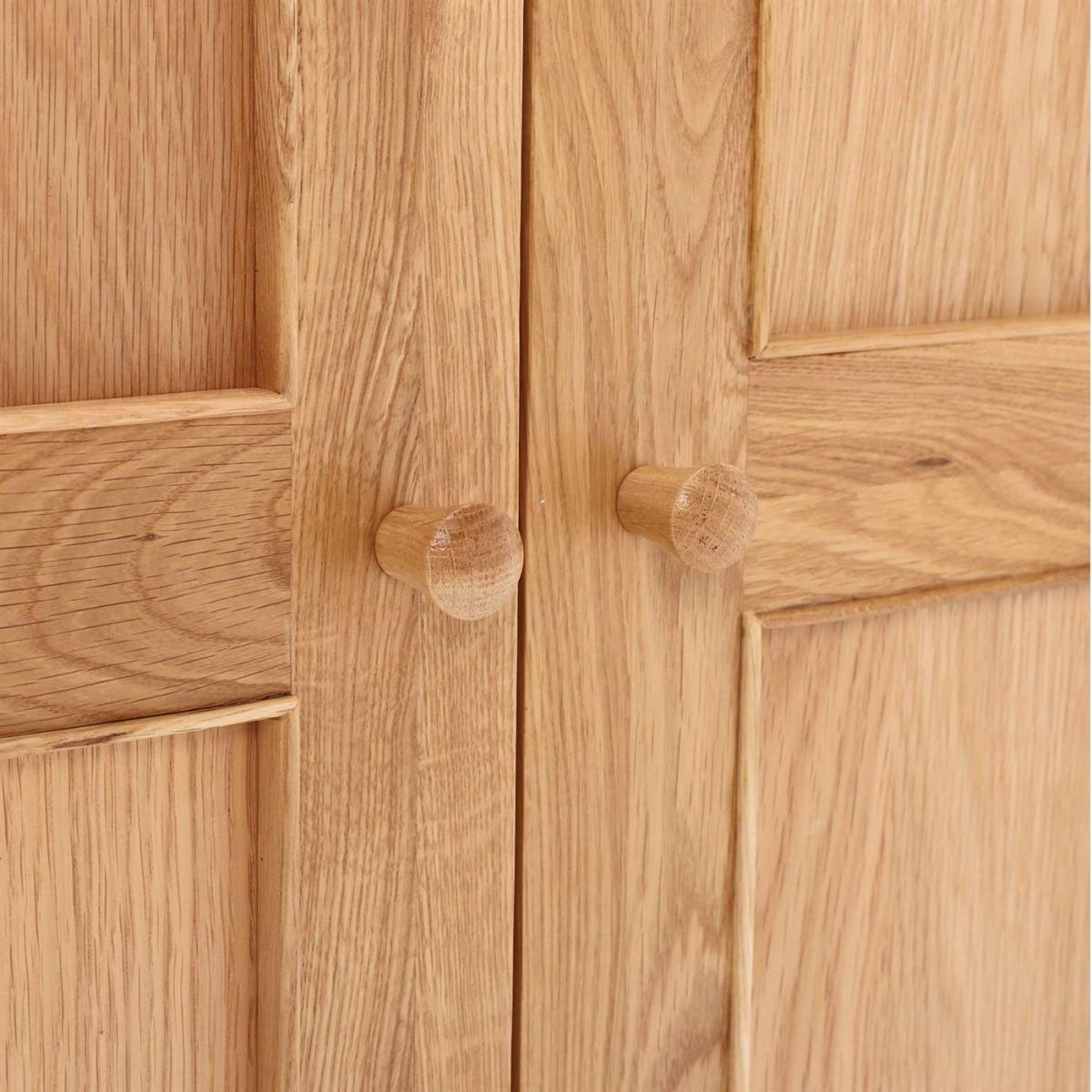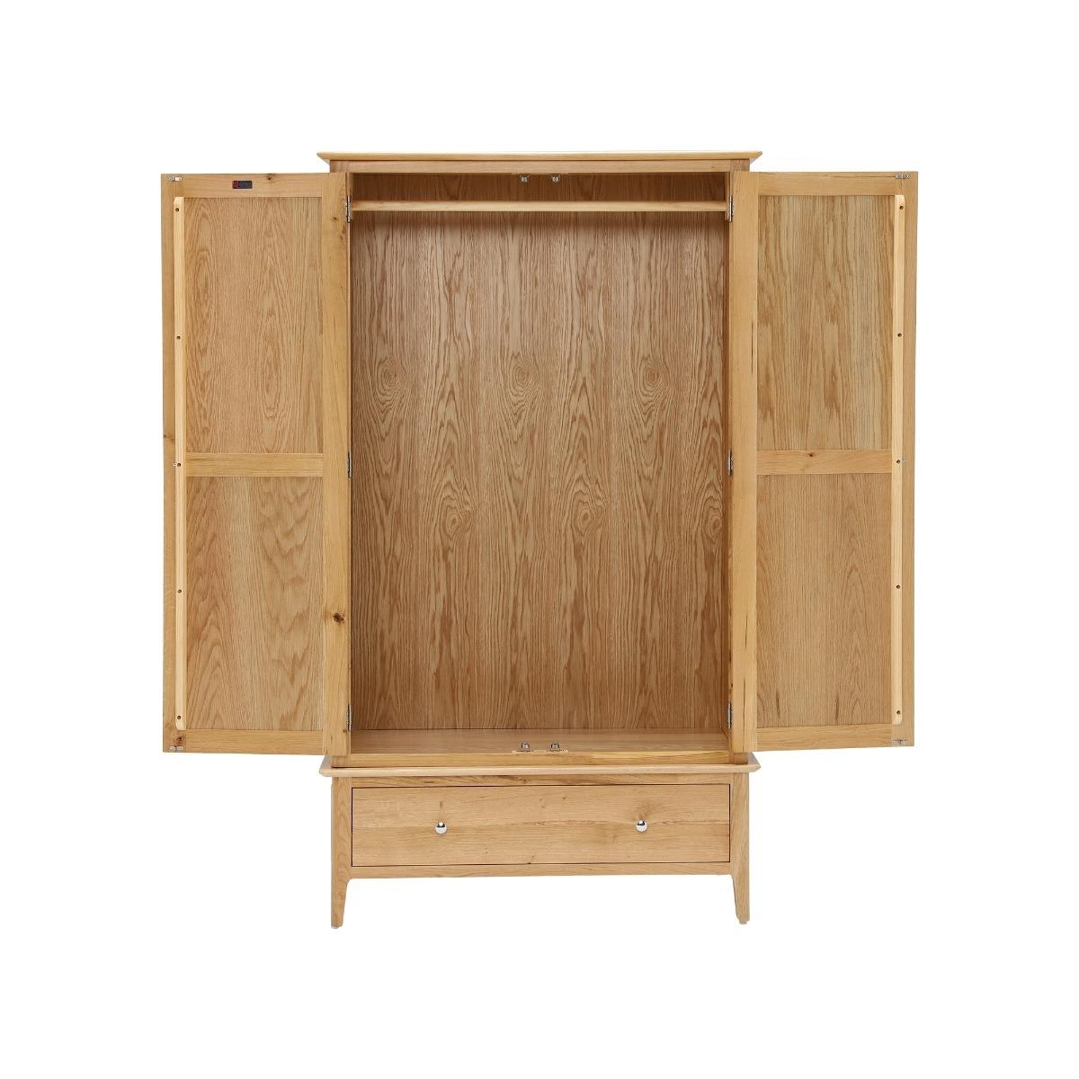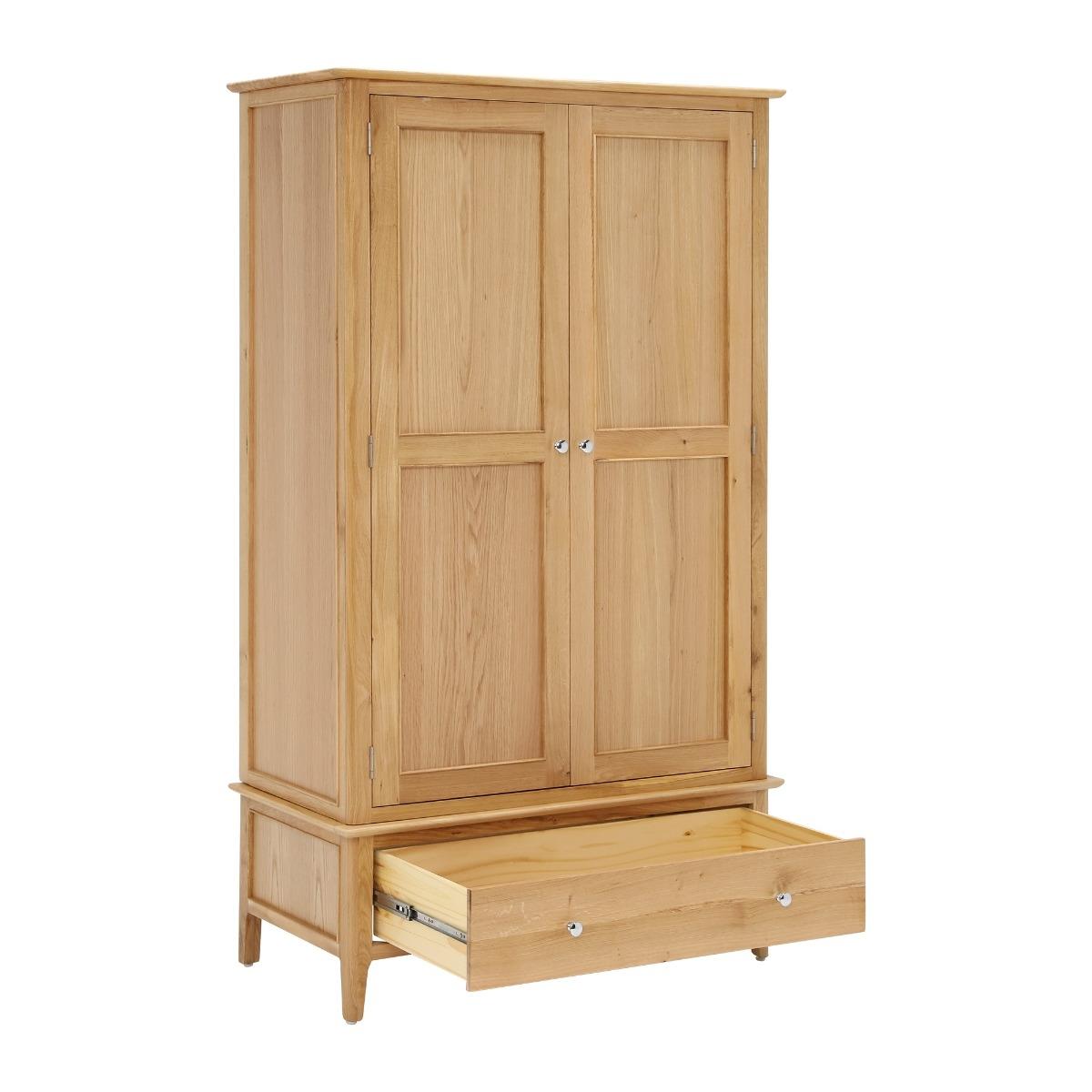 Design. Add style to your storage with the timeless Martello Large 2 Door Wardrobe. Handcrafted from solid oak with oak veneering, the Martello is naturally finished with a beautiful scandinavian oak and comes with a choice of modern chrome or classic wooden handles. Ideal for bedroom areas, the Martello complements a range of interior looks and features a fixed hanging rail and a large sliding drawer, offering a practical and stylish means of storage.