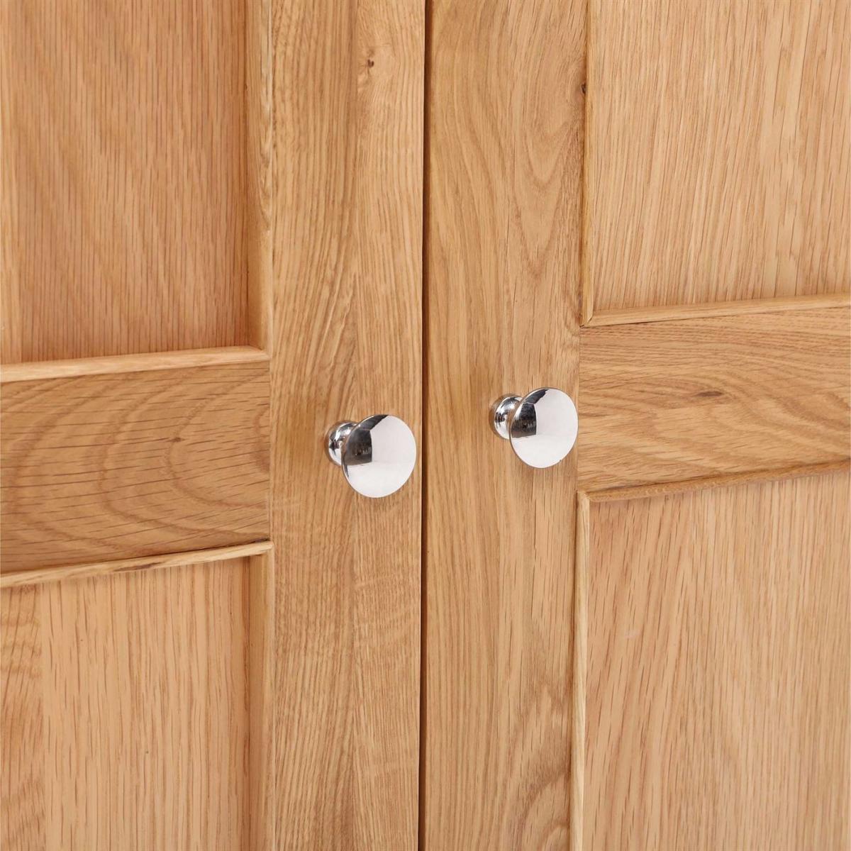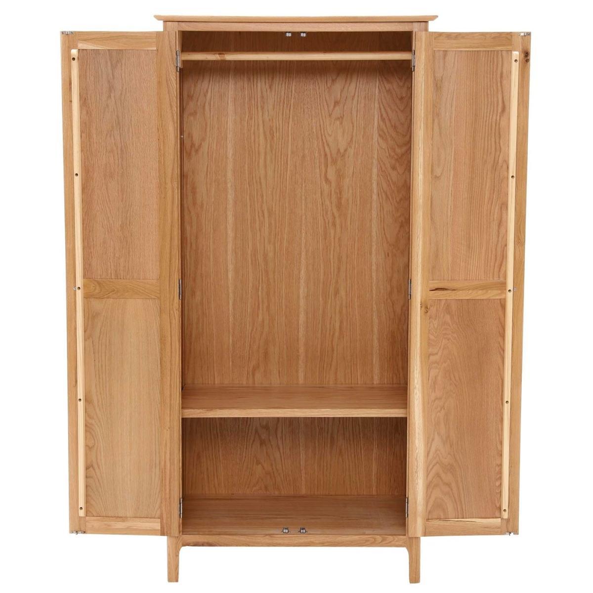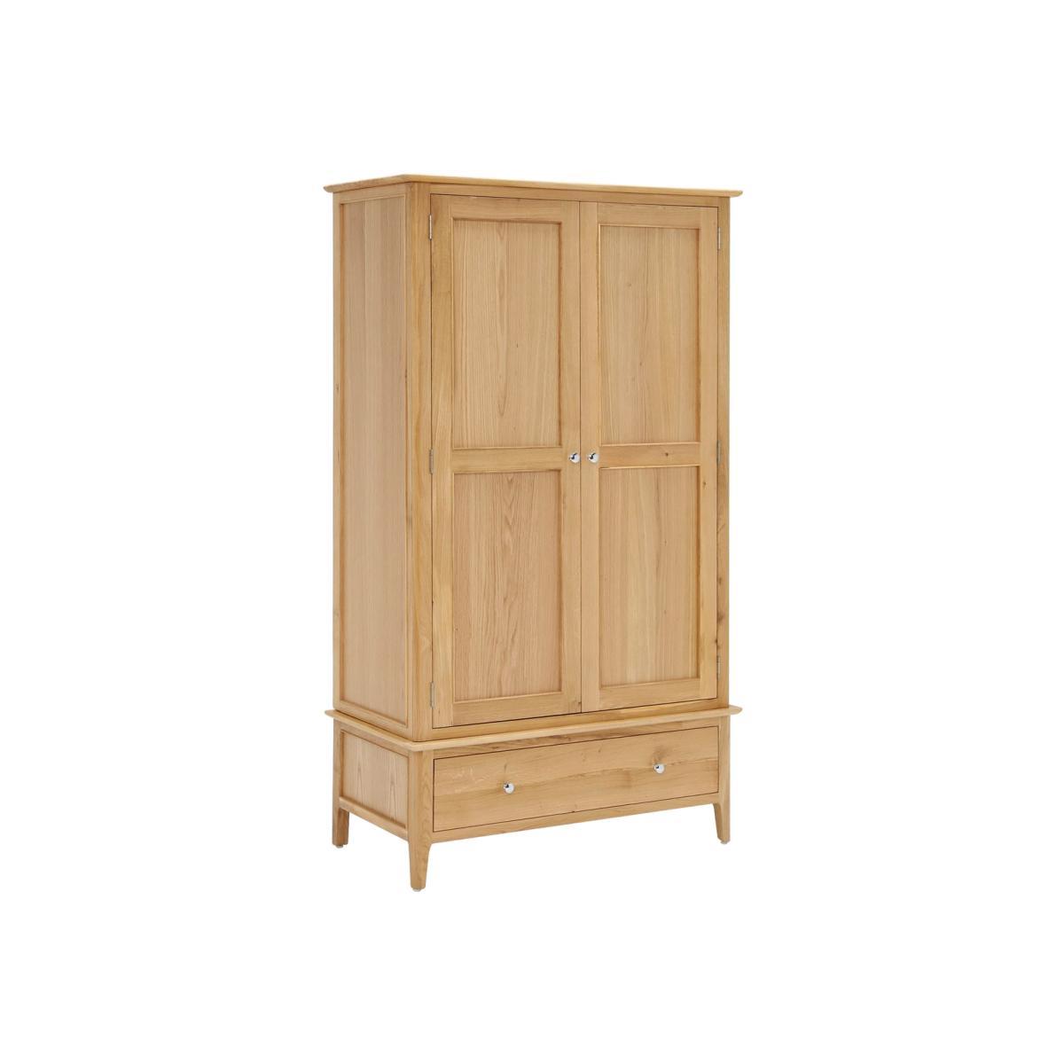 Design. Add style to your storage with the timeless Martello Large 2 Door Wardrobe. Handcrafted from solid oak with oak veneering, the Martello is naturally finished with a beautiful scandinavian oak and comes with a choice of modern chrome or classic wooden handles. Ideal for bedroom areas, the Martello complements a range of interior looks and features a fixed hanging rail and a large sliding drawer, offering a practical and stylish means of storage.