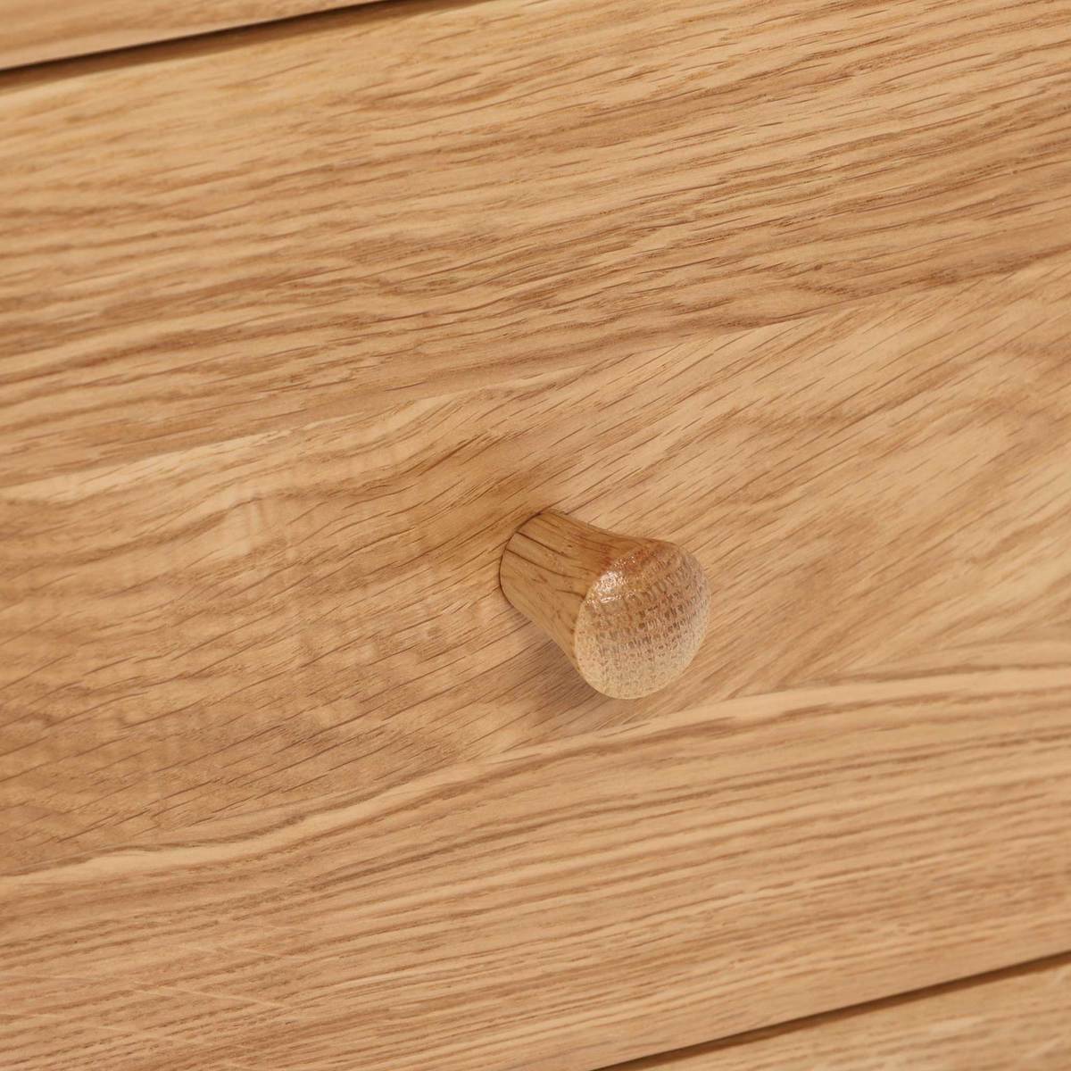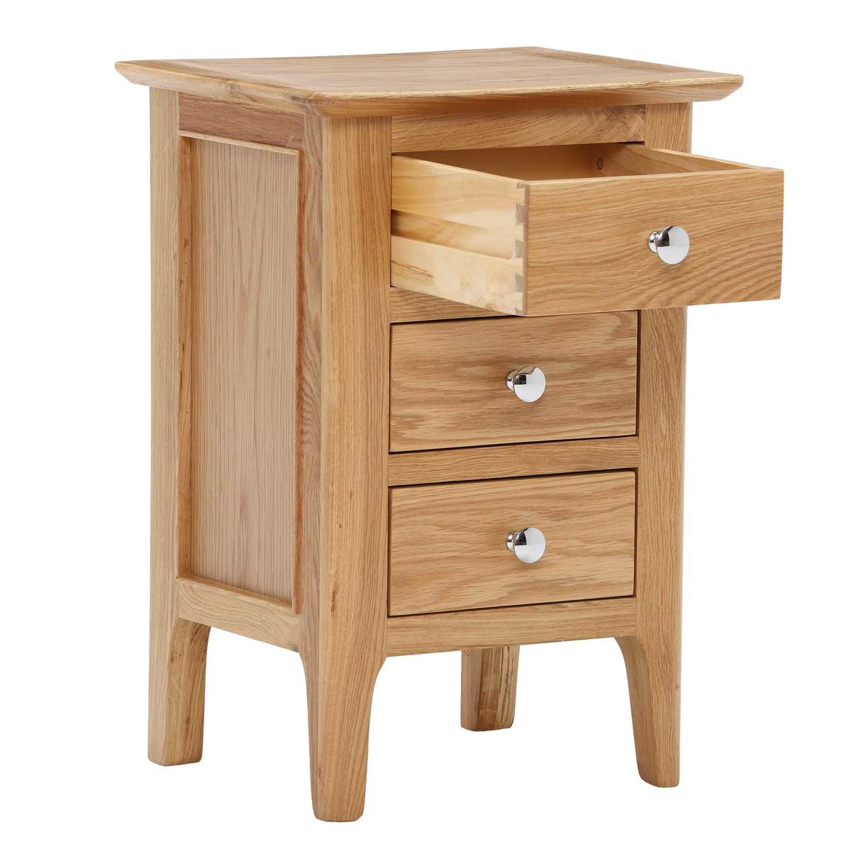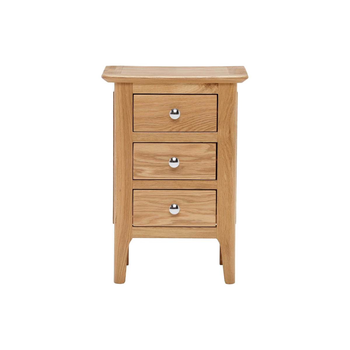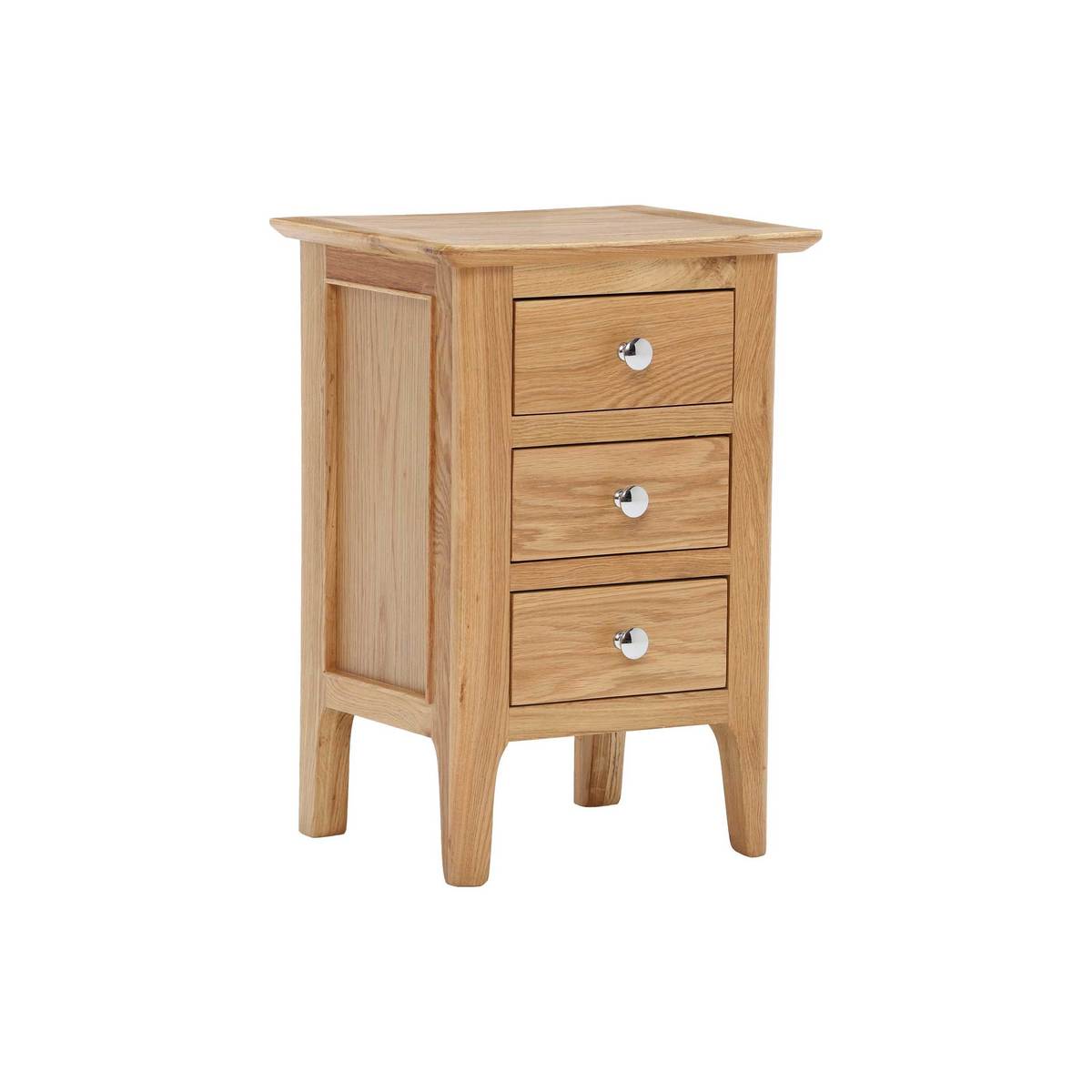 The beautiful Martello Small Bedside masters classic elegance with a modern twist. Handcrafted from sturdy oak and durable oak veneering, the minimalist Martello is finished in a natural scandinavian oak to accentuate its own knots and grains. Featuring 3 handy sliding drawers for storing your bedroom essentials, the Martello is perfectly suited to a contemporary-rustic home décor.