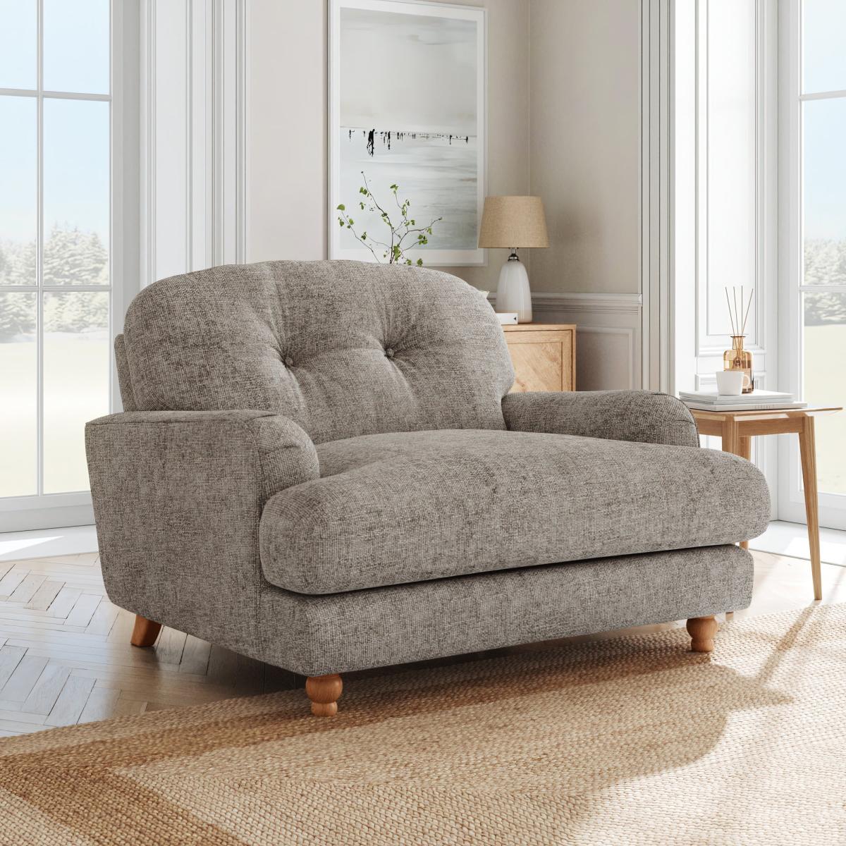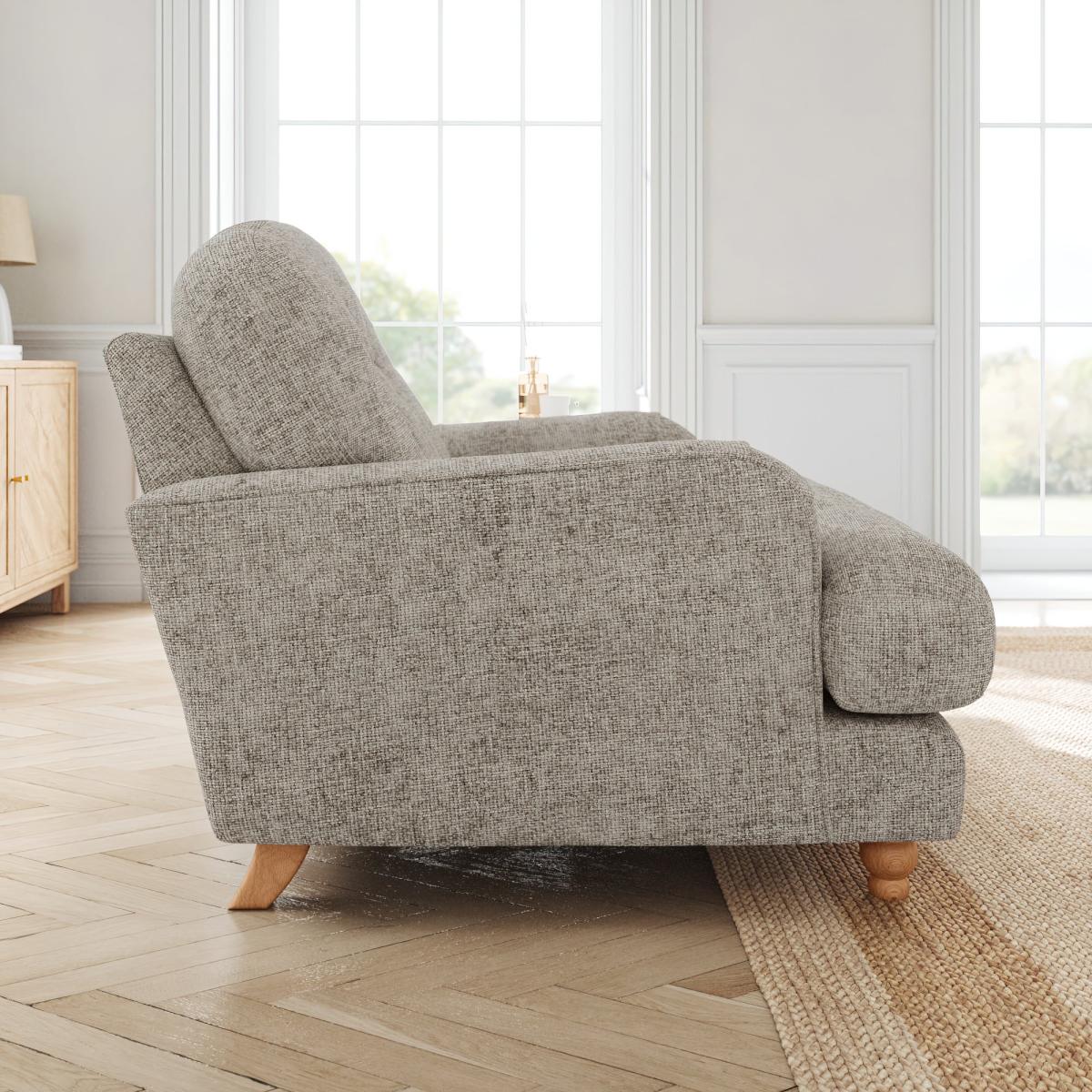 * Plush chenille Upholstery* Cosy snuggle sofa* Timeless, turned, wooden legs* Comfortable fibre-filled seating Designed to envelop you in warmth and relaxation, this sumptuous sofa features a chunky chenille fabric that exudes comfort from every inch. Sink into its deep cushions and feel the stresses of the day melt away as you unwind in style. With its plush texture and inviting design, this snuggle sofa offers a haven of relaxation for you and your loved ones. This product has fibre filled seat cushions. This means they require vigorous plumped by shaking and redistributing the fibres daily. This will add air back into the fibres and preventing clumping, flattening and the seat dipping.