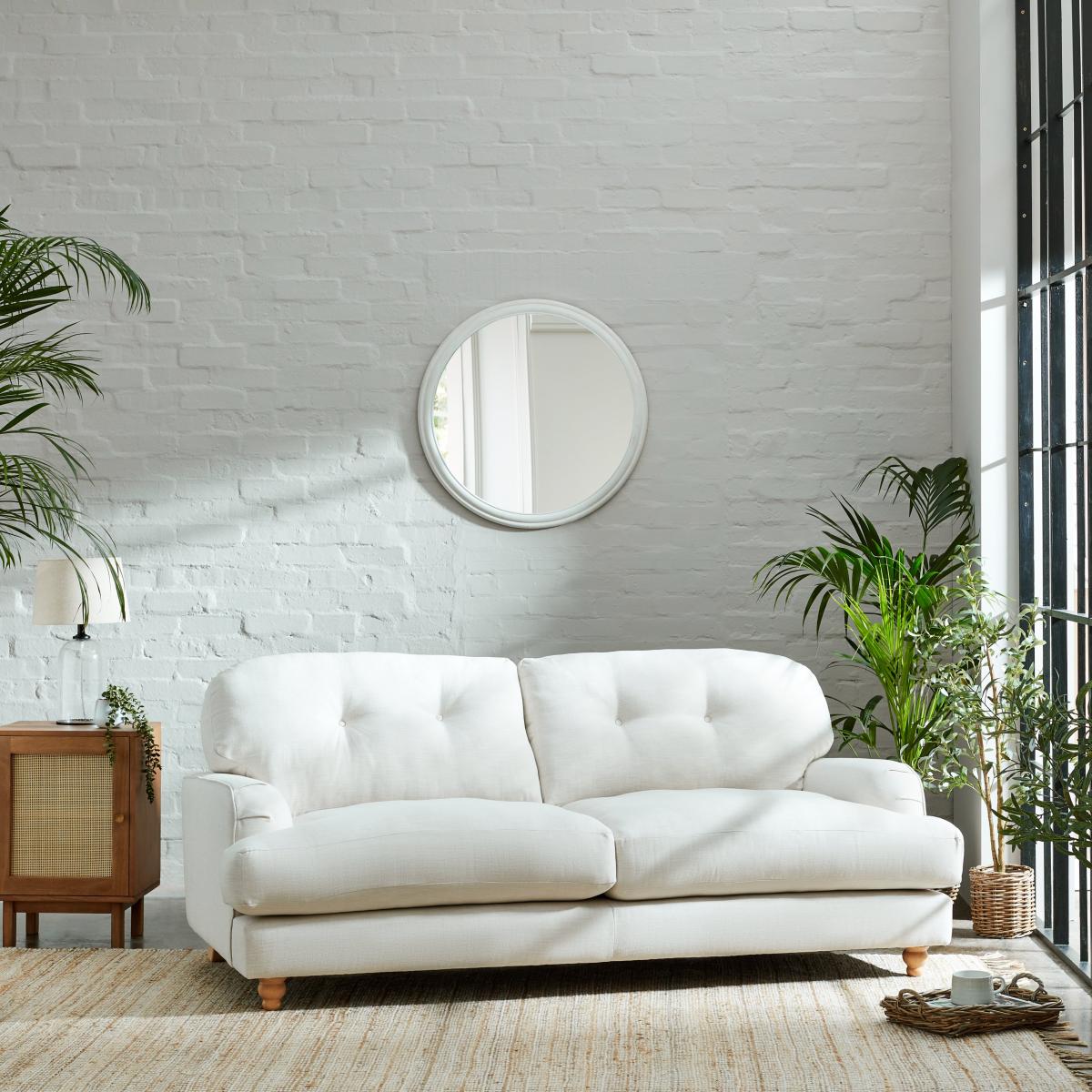 I love the Martha faux linen three-seater for its versatile, neutral tone, which makes it easy to blend into a variety of interiors-from modern minimalism to cosy, eclectic spaces. It works particularly well in light-filled living rooms or open-plan schemes where its simple yet elegant design can be showcased with colourful cushions and throws for added personality. Practical styling tips include pairing it with textured rugs and statement plants to create a layered, inviting look. The natural hue also allows for flexible accessorising, so you can switch up the colour palette seasonally or to suit different decorating trends without needing to replace the sofa.
