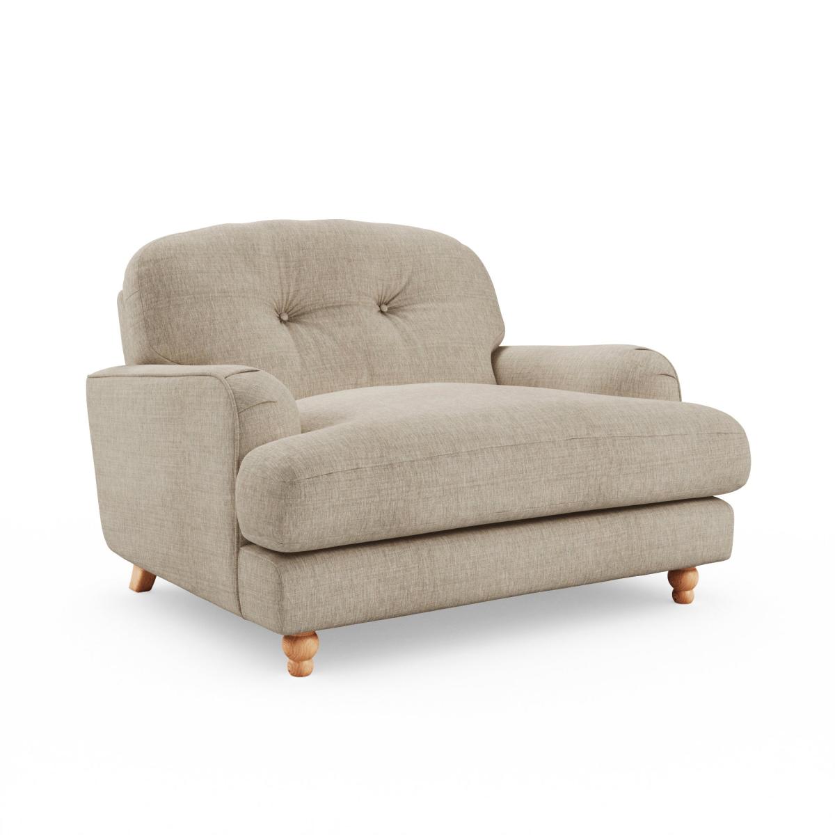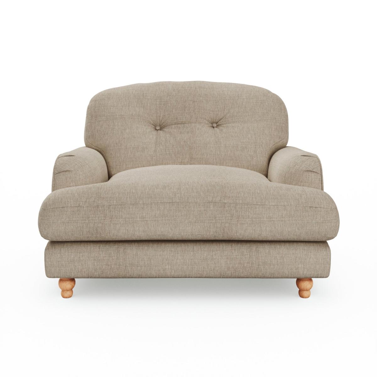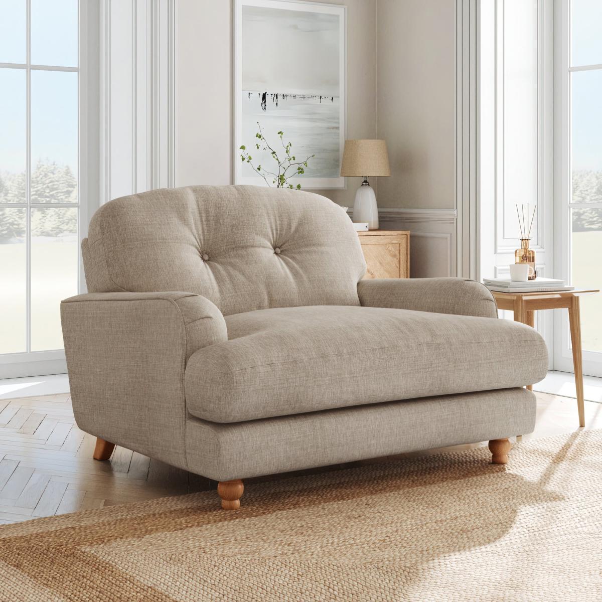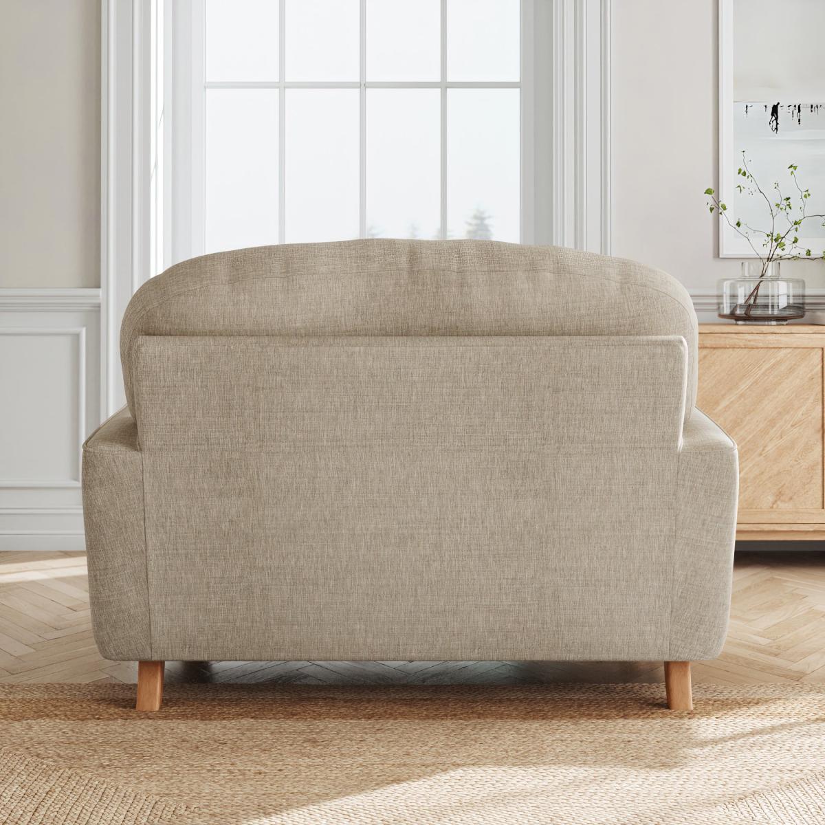 * Single Seater Sofa* Soft Faux Linen Upholstery* Matching family items available The Martha snuggle sofa is the epitome of comfort and sophistication. With its soft touch fabric, you'll experience a luxurious seating experience that invites relaxation. The generous, fibre-filled seating ensures hours of comfort, while the turned wooden legs add a touch of vintage charm. This snuggle sofa is the perfect spot to unwind and cosy up with your favourite book or loved one. This product has fibre filled seat cushions. This means they require vigorous plumped by shaking and redistributing the fibres daily. This will add air back into the fibres and preventing clumping, flattening and the seat dipping.