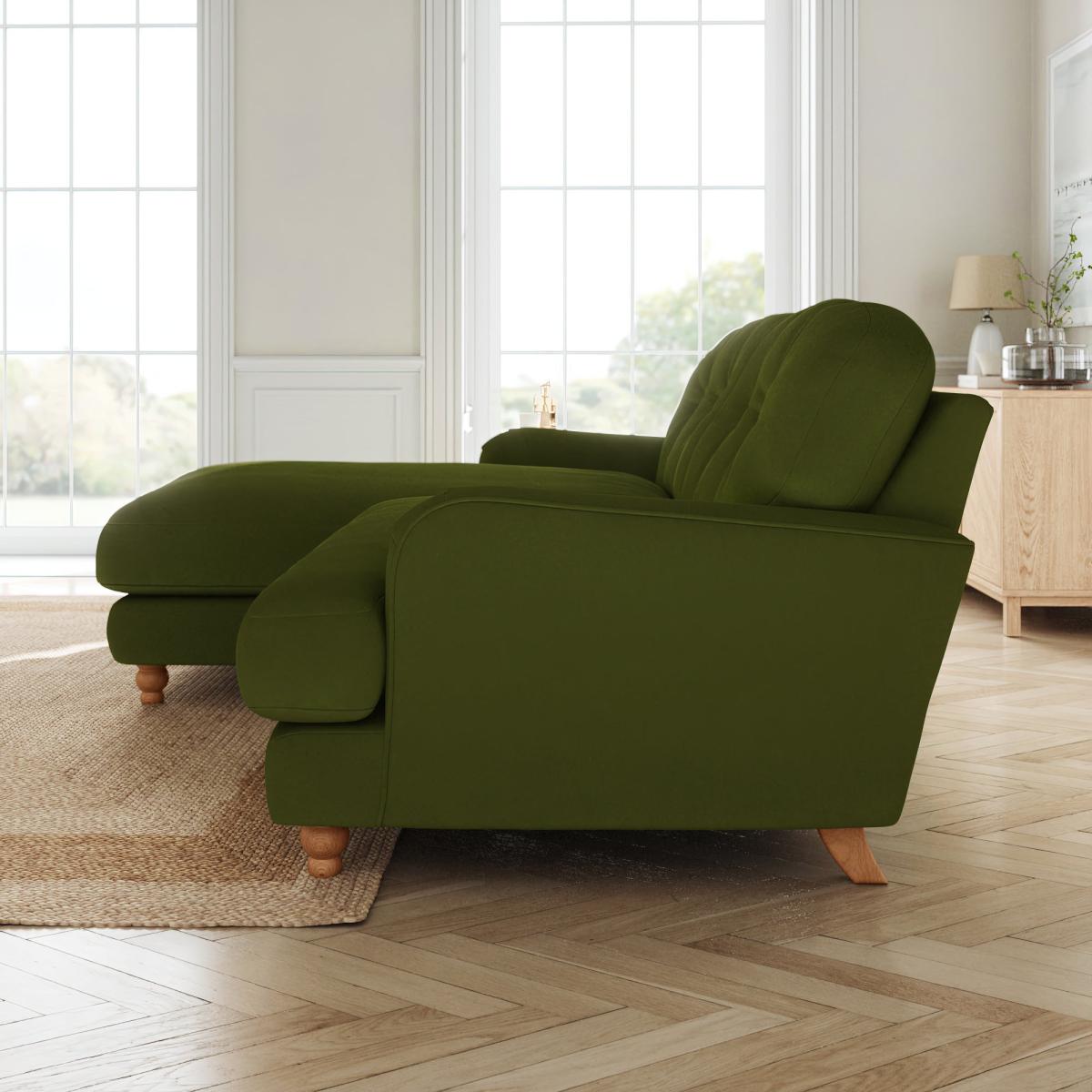 * Plush Velvet Upholstery* Cosy corner sofa* Timeless, turned, wooden legs* Comfortable fibre-filled seating Crafted to envelop you in comfort and style, this exquisite piece features a plush velvet exterior that radiates opulence from every angle. Whether you're stretching out on the chaise section or gathering with loved ones in the corner, the Martha Sofa offers ample space for relaxation and socialising alike. The matte finish adds a touch of understated elegance, seamlessly blending classic charm with contemporary flair. This product has fibre filled seat cushions. This means they require vigorous plumped by shaking and redistributing the fibres daily. This will add air back into the fibres and preventing clumping, flattening and the seat dipping.