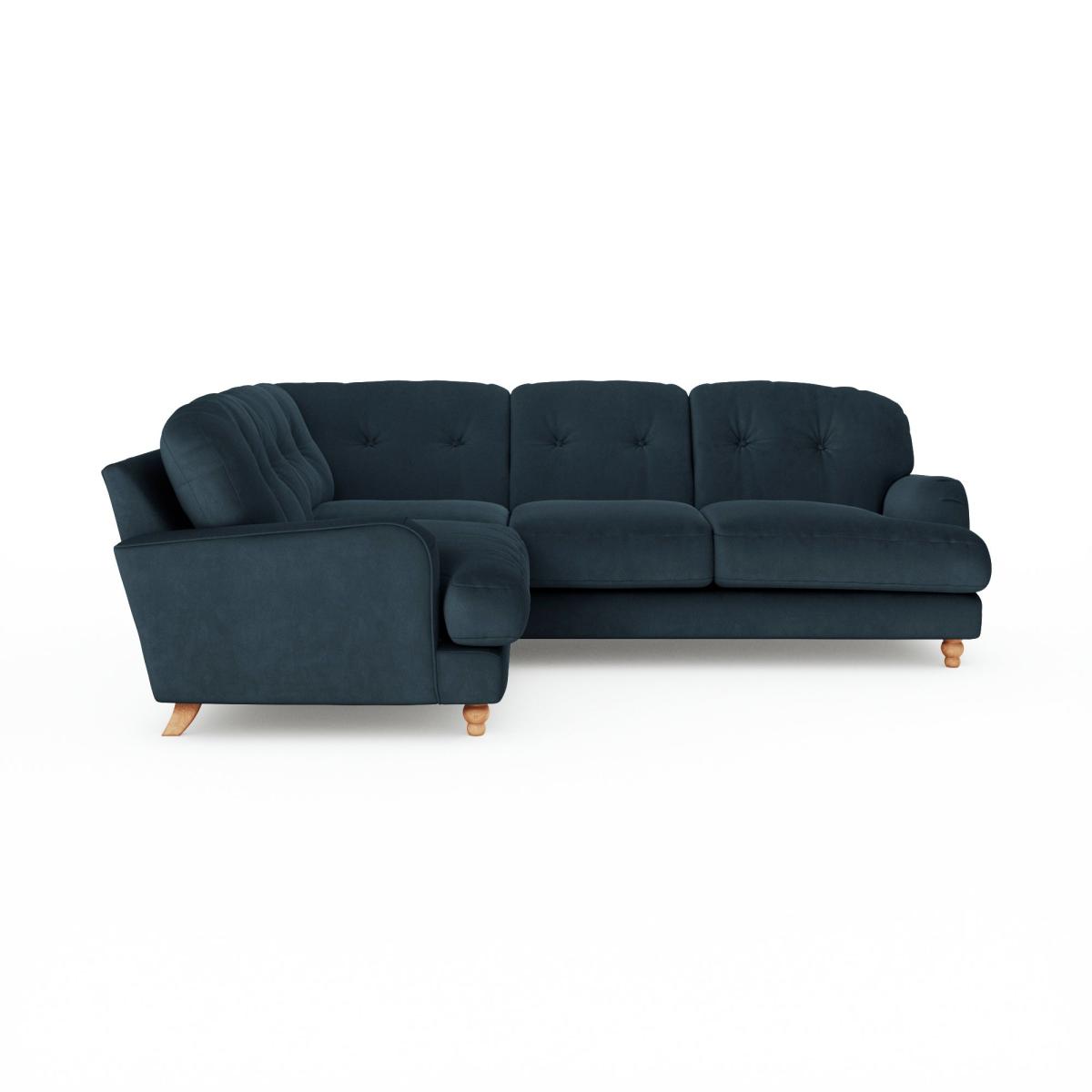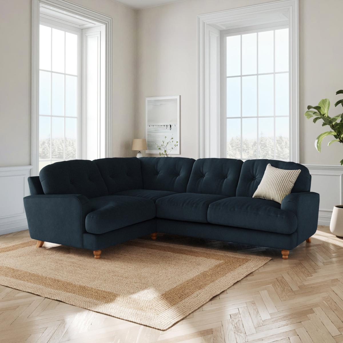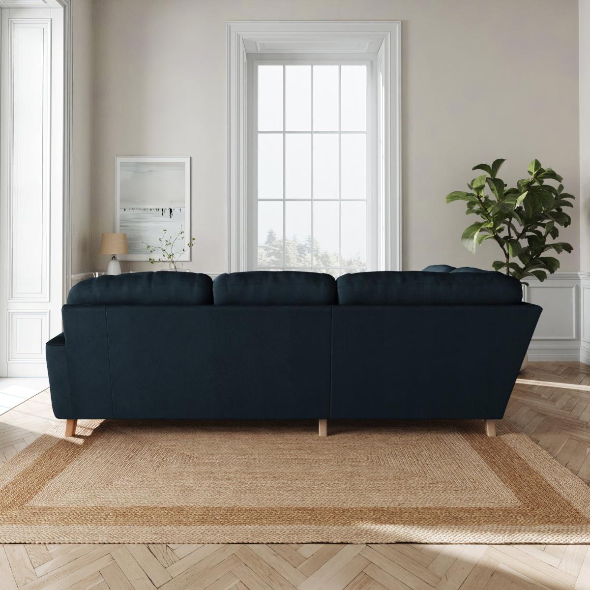 * Large Sofa* 4 Seater* Left or Right Hand facing options* Plush velvet upholstery This stunning piece is upholstered in sumptuous matte plush velvet, exuding opulence from every inch. Sink into its deep cushions and feel the worries of the day melt away as you relax in unparalleled luxury. With its full corner design, this sofa offers ample seating space, making it perfect for entertaining guests or enjoying quiet evenings in. The matte finish adds a touch of understated sophistication, elevating the aesthetic of any living room. This product has fibre filled seat cushions. This means they require vigorous plumped by shaking and redistributing the fibres daily. This will add air back into the fibres and preventing clumping, flattening and the seat dipping.