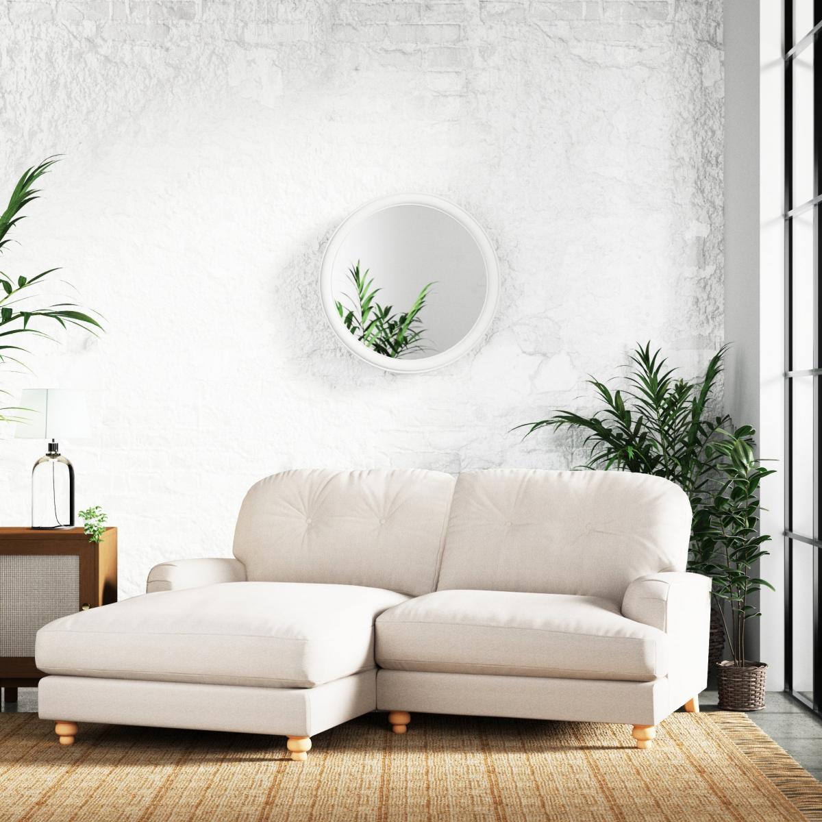 * Slub Faux Linen Upholstery* Compact, corner chaise sofa* Turned wooden legs* Comfortable fibre-filled seating When seeking the ideal finishing touch for your sitting area, the Martha Corner Chaise emerges as the perfect fit. The irresistible allure of this compact, vintage-effect sofa is undeniable. The turned wooden legs, coupled with the soft-touch faux linen upholstery, create a harmonious blend of sophistication and comfort. The inviting fibre-filled seating ensures a delightful lounging experience, making this corner chaise a genuine beauty that enhances the charm of any space. This product has fibre filled seat cushions. This means they require vigorous plumped by shaking and redistributing the fibres daily. This will add air back into the fibres and preventing clumping, flattening and the seat dipping.