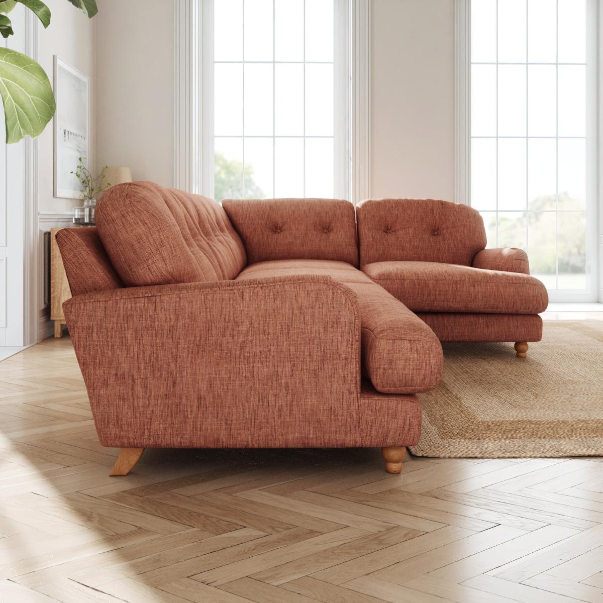 I love this corner sofa for its versatile style and comfortable design. The clay faux linen finish offers a warm, approachable look that works well in both contemporary and traditional interiors, especially in cosy living rooms. It’s perfect for creating an inviting space for family gatherings or entertaining guests. When styling, consider pairing it with neutral and textured cushions to add visual interest, and complement it with layered rugs to define the seating area. Its neutral tone makes it flexible for various colour schemes, and the slub fabric adds subtle texture that keeps the look relaxed yet polished. Overall, it’s a great choice for anyone wanting a practical, stylish sofa that adapts easily to your interior.