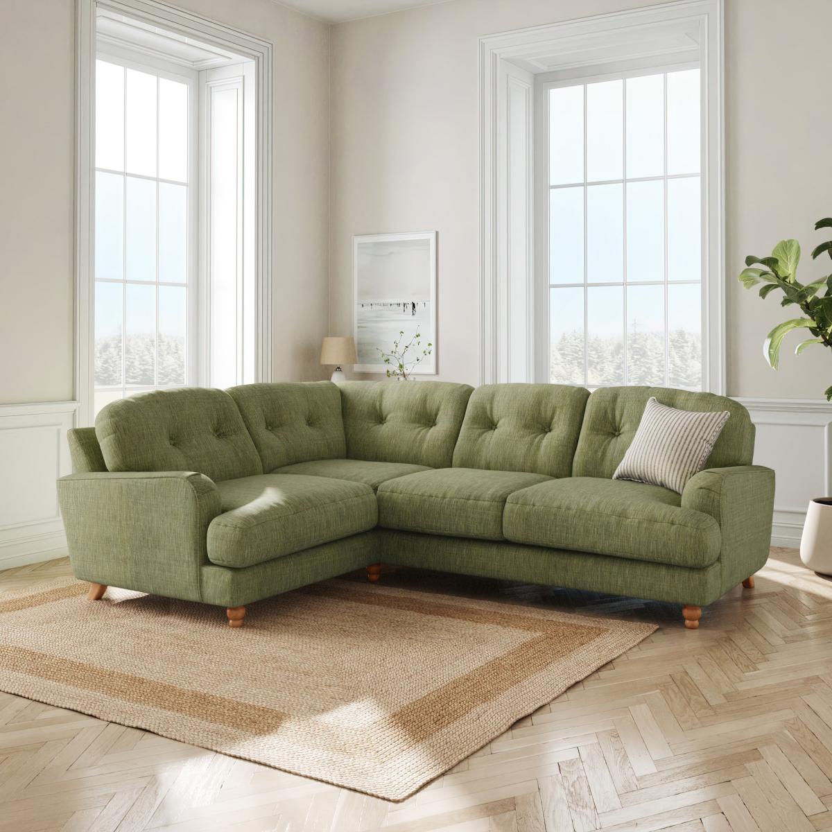 Martha Slub Faux Linen Full Corner Sofa Slub Faux Linen Green
