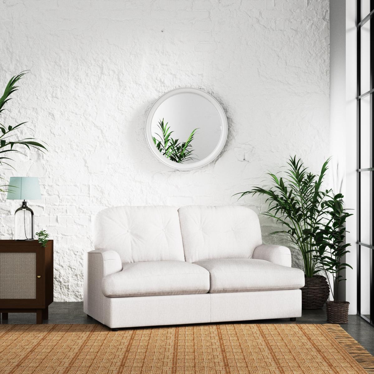 * Converts in to a double bed* Soft Linen Upholstery* Chesterfield style* Part of the Martha family Enveloped in soft faux linen upholstery, this sofa radiates sophistication and comfort. Its plush cushions offer unparalleled relaxation, serving as a stylish two-seater sofa for everyday lounging or effortlessly transforming into a cosy bed for overnight guests. Embracing the classic Chesterfield style with tufted detailing, rolled arms, and turned wooden legs, this piece reflects skilled craftsmanship, adding a touch of traditional charm to any living space. This product has fibre filled seat cushions. This means they require vigorous plumped by shaking and redistributing the fibres daily. This will add air back into the fibres and preventing clumping, flattening and the seat dipping.