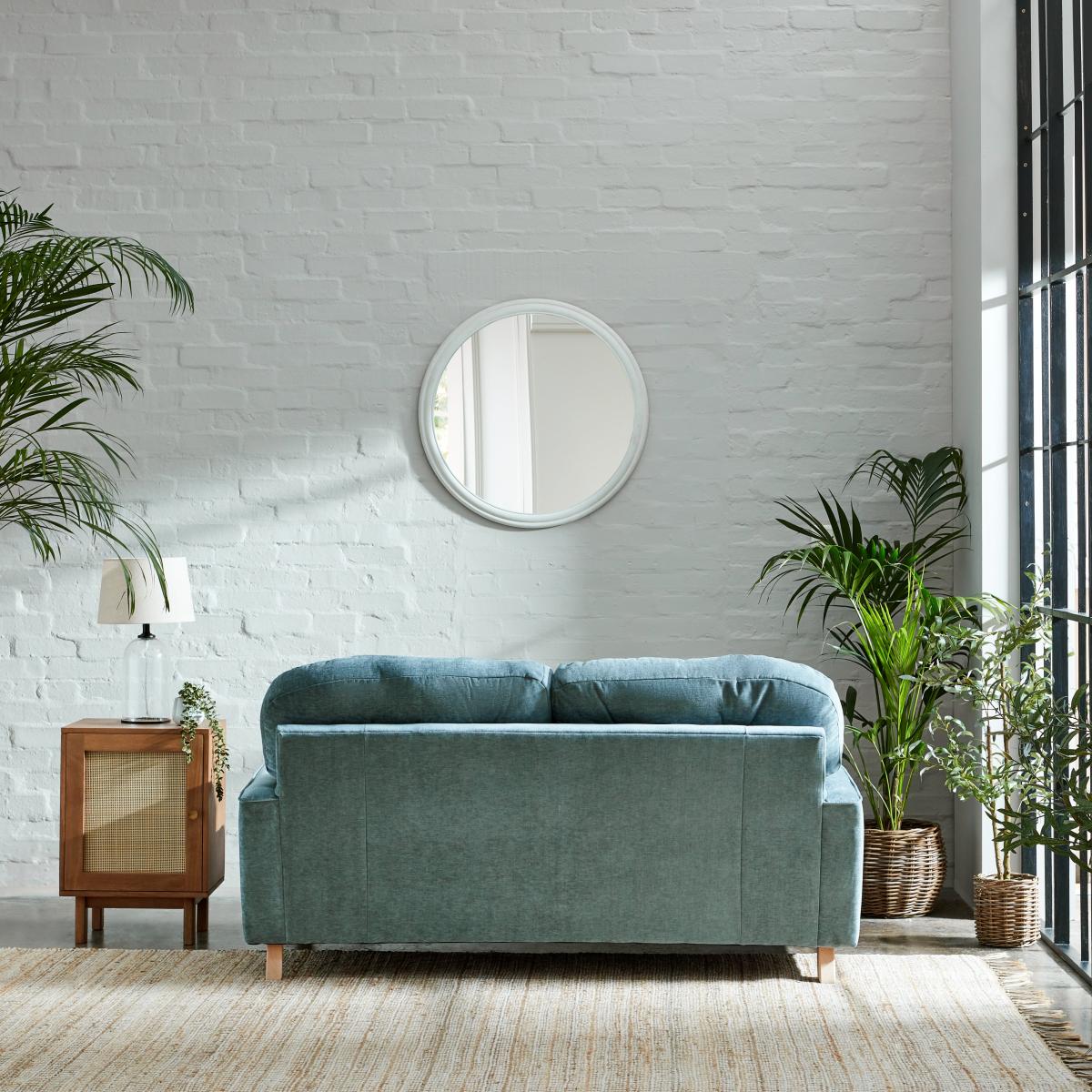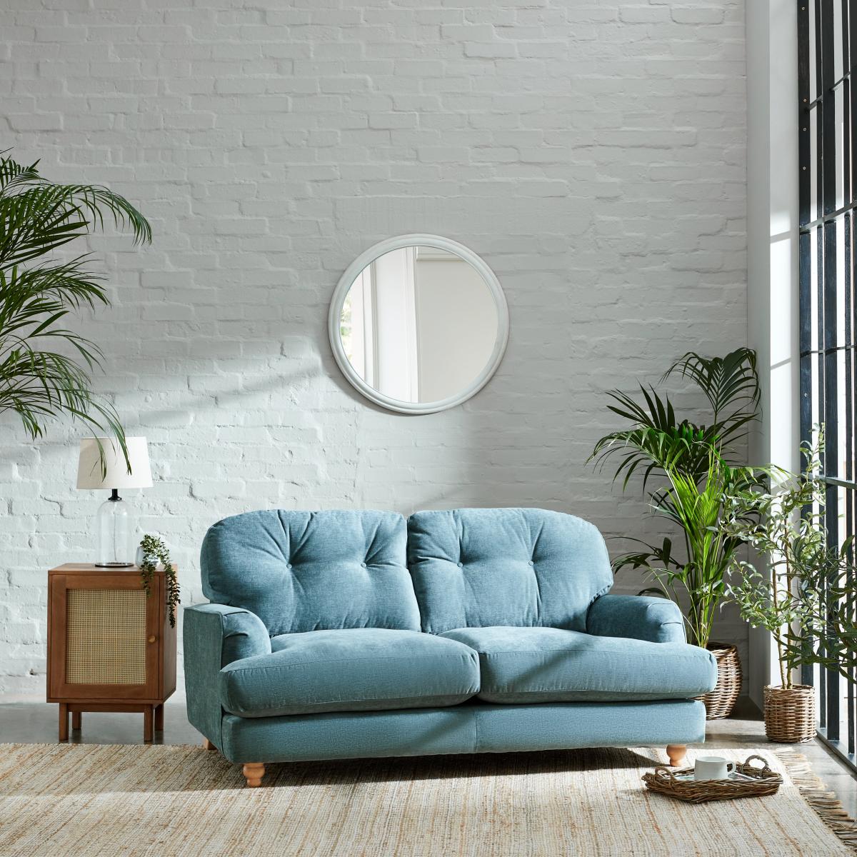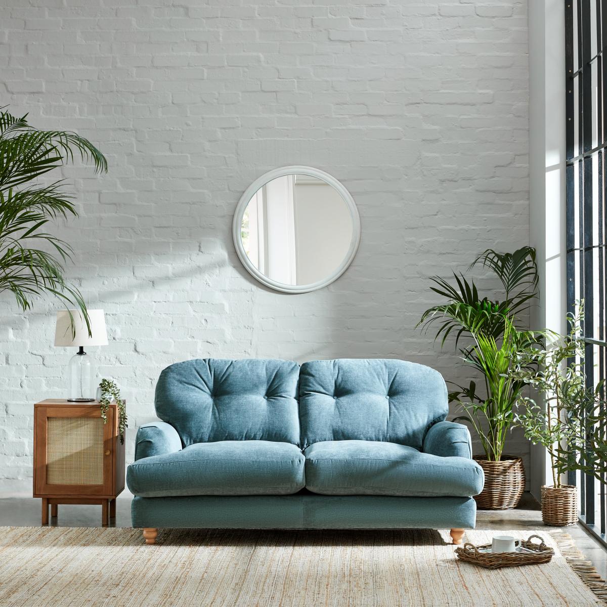 I love the Martha vintage chenille sofa because its vibrant aqua hue instantly brightens a space, making it perfect for contemporary or eclectic interiors that need a pop of colour. The plush chenille fabric adds tactile softness, making it inviting for everyday lounging. It works well in neutral schemes, where it can be a statement piece, or in more colourful, layered interiors complemented by warm woods and textured textiles. To keep the look polished, pair it with contrasting cushions or throws, and consider placing it against a light wall to fully showcase its colour. It’s versatile enough to sit alongside modern metallics or vintage-inspired accessories, creating a lively yet balanced aesthetic.