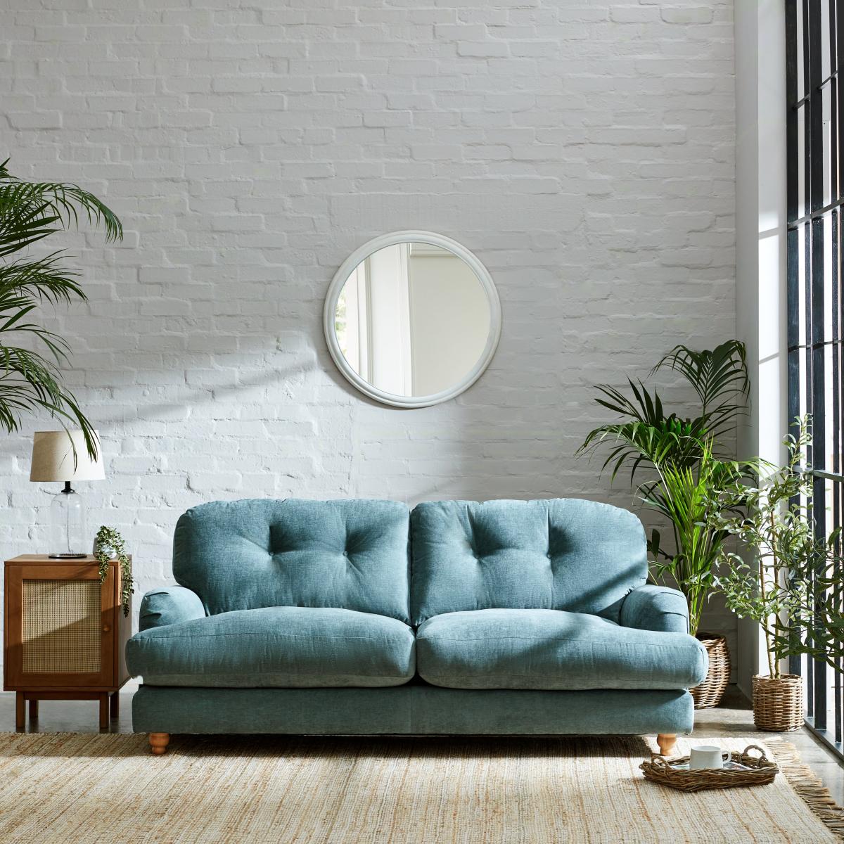 I love this vintage-style sofa for its charming character and inviting comfort. The aqua chenille fabric adds a relaxed yet sophisticated pop of colour, making it a versatile piece for both contemporary and retro-inspired interiors. It pairs beautifully with neutral tones for a calm and cosy vibe, or you can accessorise with bold cushions and throws for a more eclectic look. Practical styling tips include layering with textured textiles like rugs and throws to enhance its vintage appeal, and using it as a focal point in a living room with pared-back or mid-century furniture to highlight its timeless design. This piece works well in informal spaces where comfort is key, and its colour can really lift a room’s mood.