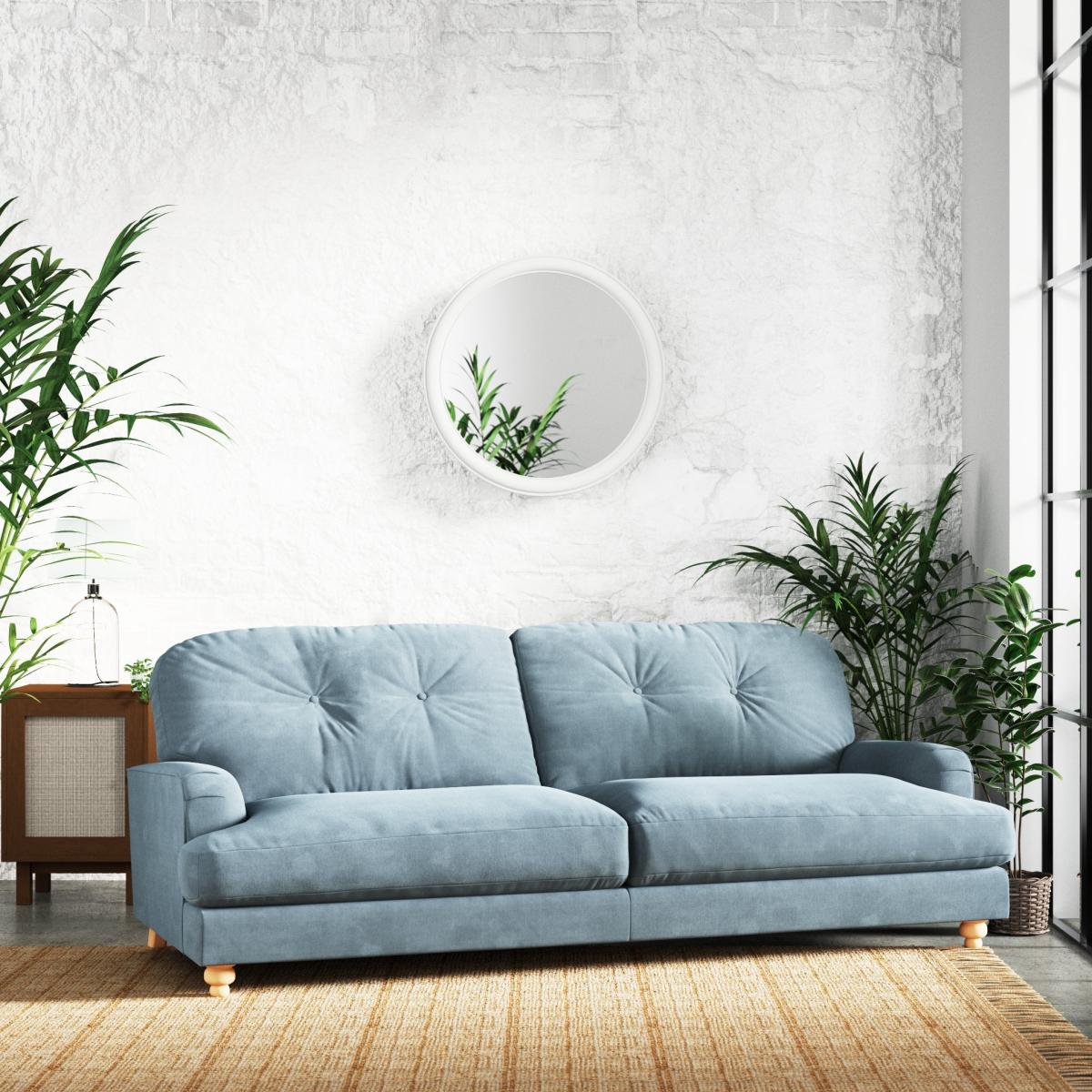 The Martha vintage chenille sofa in aqua offers a lovely pop of colour that works especially well in calm, neutral interiors or Scandi-inspired schemes. I love its soft, plush texture, which adds both comfort and a vintage charm. It’s versatile enough to be styled in contemporary, eclectic, or even retro settings, making it quite a flexible piece. For practical styling tips, consider pairing it with cosy textured cushions or adding a layered rug underneath to anchor the space. Its roomy 4-seater design makes it ideal for socialising, but it also lends itself well to relaxed weekends of lounging. Overall, it’s a statement piece with a good balance of colour and comfort, perfect for creating a welcoming vibe.