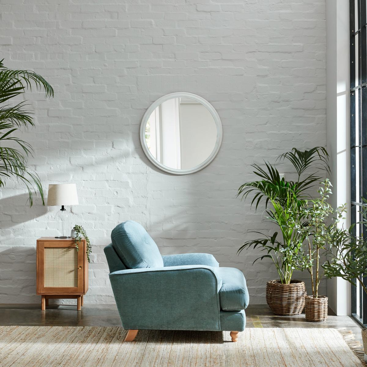 I love the Martha vintage chenille snuggle chair in aqua for its cosy, inviting feel and classic charm. It’s a versatile piece that works well in both modern and traditional interiors, especially those embracing a colour palette of soft pastels, muted tones, or coastal-inspired schemes. Its plush chenille fabric adds texture and comfort, making it perfect for relaxed living spaces. Practical styling tips include pairing it with warm-hued cushions or layers of textured throws to enhance its inviting vibe, and adding greenery nearby to complement its fresh colour. Because of its size and style, it can serve as a charming statement piece in a sitting room or corner nook, while maintaining a cosy, lived-in aesthetic.